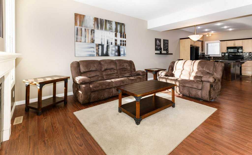 This well-kept 3 bedroom, 2.5 bathroom townhouse in the desirable community of Ironstone offers comfort, convenience, and a smart layout perfect for families or first-time buyers. Ideally located close to shopping, schools, parks, and transit, this home also features a heated attached single garage—an appreciated bonus during Alberta winters. The main floor welcomes you with a bright, functional kitchen offering abundant cabinetry, a large island, and easy flow into the spacious living room, where oversized windows bring in plenty of natural light and a cozy gas fireplace adds warmth and charm. A convenient 2-piece bathroom and a separate laundry room complete this level. Upstairs are two generous bedrooms, each with direct access to a shared 4-piece bathroom through handy cheater doors. The fully developed basement expands your living space with a large family room, an additional bedroom, and another full 4-piece bathroom—perfect for guests or teens. With its thoughtful layout and prime location, this Ironstone townhouse is a fantastic opportunity to enjoy comfortable, low-maintenance living.