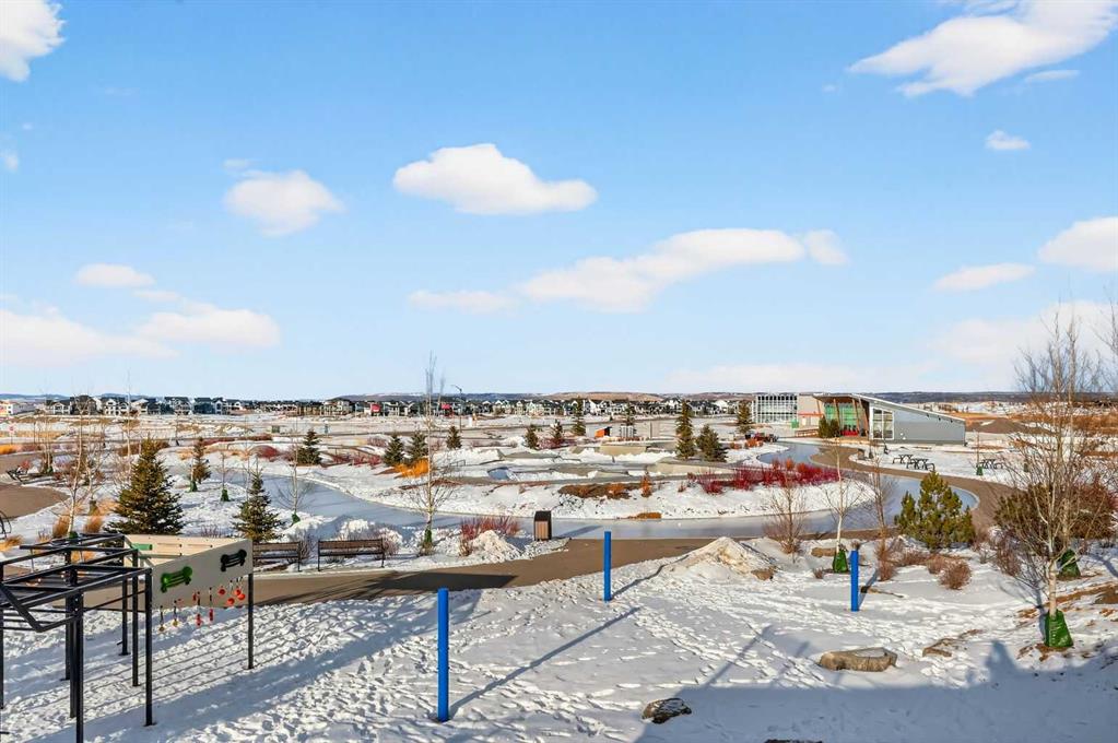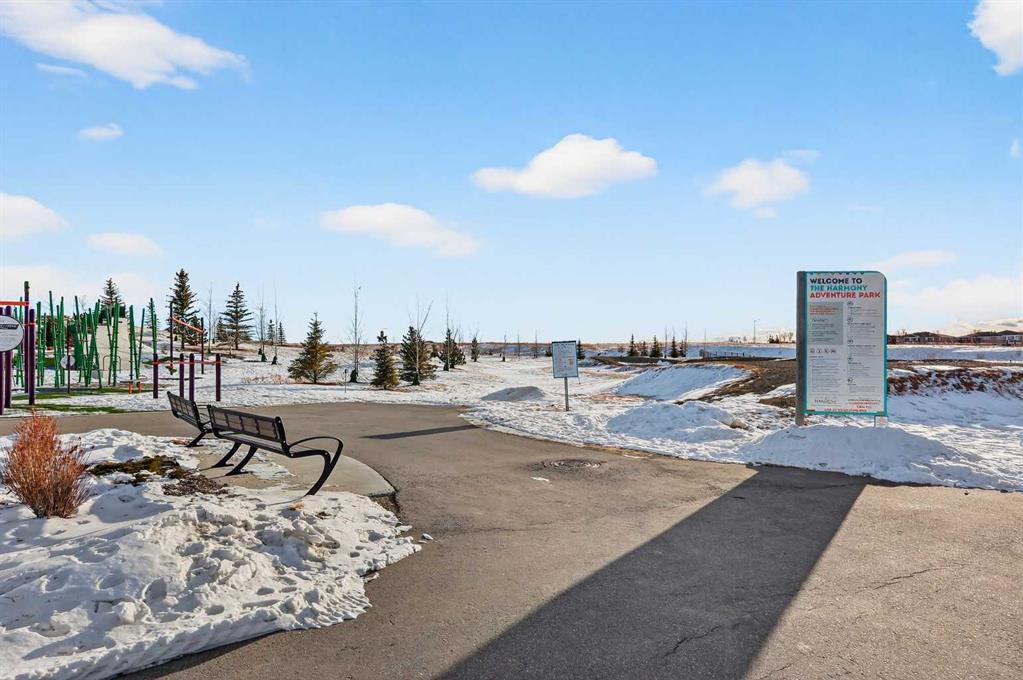 Personalization of Selections is still available for your new dream home in Harmony! (Subject to stage of construction) Experience the height of sophisticated living in this highly coveted luxury townhome, where a generous floor plan meets modern comfort and refined finishes. Proudly presented by StreetSide – this thoughtfully designed unit features 3 bedrooms, 2.5 bathrooms, and a front attached double car garage. The heart of the home is a spacious kitchen with a large central island, quartz countertops, modern slab style cabinets and drawers with soft close mechanisms, under cabinet lighting, and stainless-steel appliances. Luxury vinyl plank flooring throughout the main floor with tile options at the front and rear entrance, powder room, and laundry room. Plush carpet on the stairs, upper hallway, and bedrooms. The primary ensuite is a private sanctuary, complete with tile flooring, double sinks, a freestanding soaker tub, and an oversized tile-and-glass shower delivering spa-inspired comfort at home. The unfinished basement with roughed-in plumbing provides future potential for additional living space tailored to your needs. Professional landscaping and fencing complete your new home. Ideally located in the award-winning community of Harmony, residents enjoy Mickelson National Golf Course, private lake amenities, scenic walking and biking trails, and a wellness-focused lifestyle—just a shorty drive from Calgary city minutes and 45 minutes from the Rocky Mountains, where nature and convenience come together effortlessly.