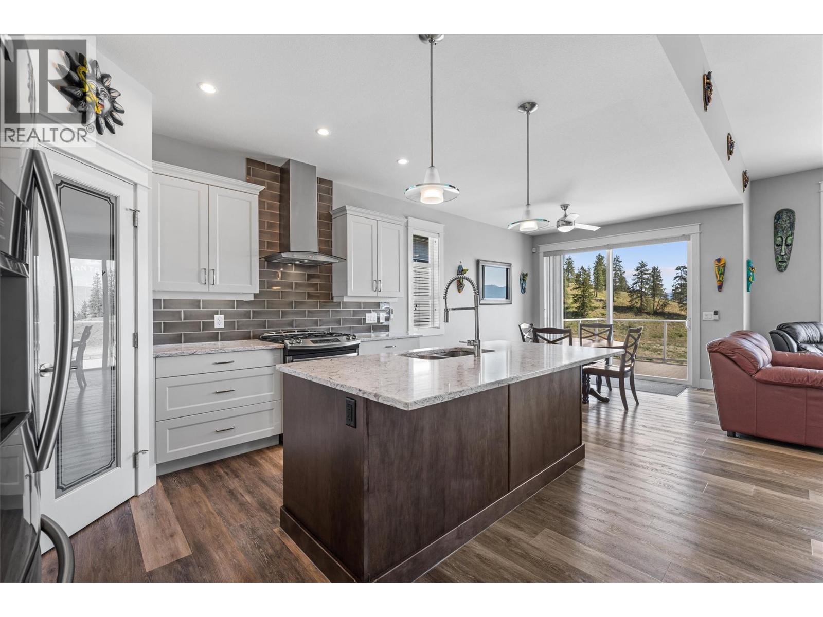 Perched above vineyards in one of West Kelowna’s most desirable neighborhoods, this thoughtfully designed home captures sweeping lake and mountain views. Expansive windows flood the open-concept main level with natural light, where vaulted ceilings and a gas fireplace enhance the warm, spacious feel. The kitchen is built for both function and style, featuring quartz countertops, a large island, gas range, stainless steel appliances, and a walk-in pantry. The dining area flows seamlessly to a covered patio wired for a hot tub, with low-maintenance landscaping and astrological-timed lighting adding evening ambiance. The primary suite overlooks the view and includes a private ensuite, while a self-contained one-bedroom suite on the lower level, with its own entrance and laundry, offers excellent flexibility for extended family, guests, or rental income. The oversized heated garage fits a full-size truck and includes a workbench and storage. There is a dedicated spot to park your RV and the home has a built-in vacuum and a BreathRite fresh air exchange. Just minutes from golf courses, wineries, hiking trails, and shopping, this well maintained home blends peaceful living with thoughtful design.