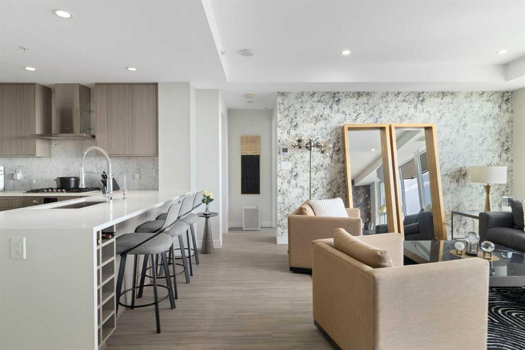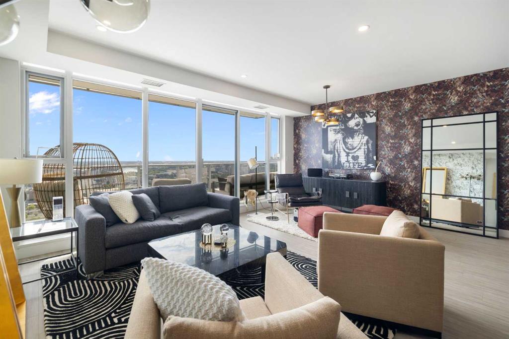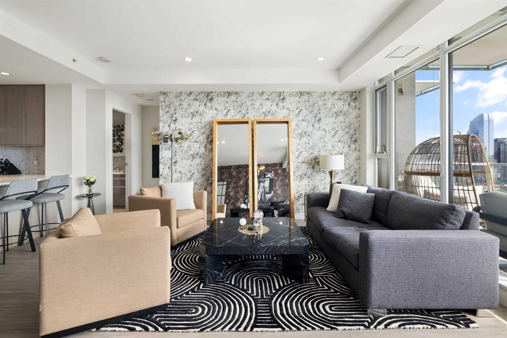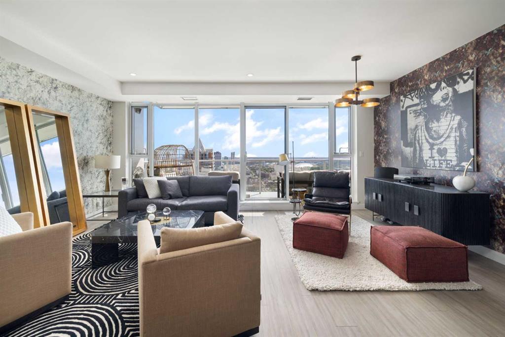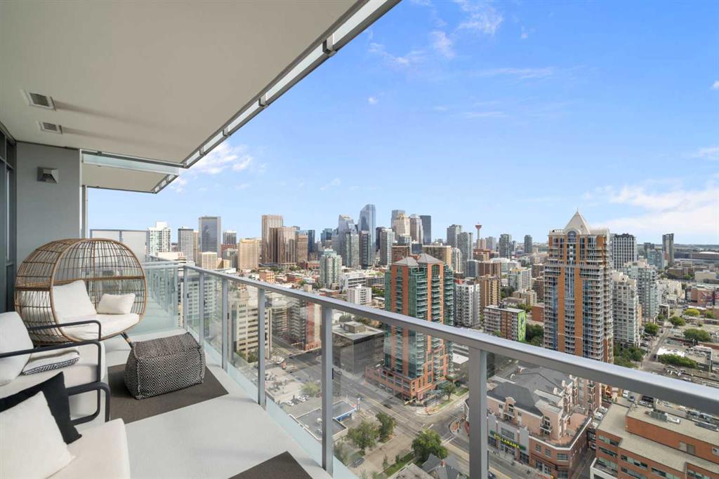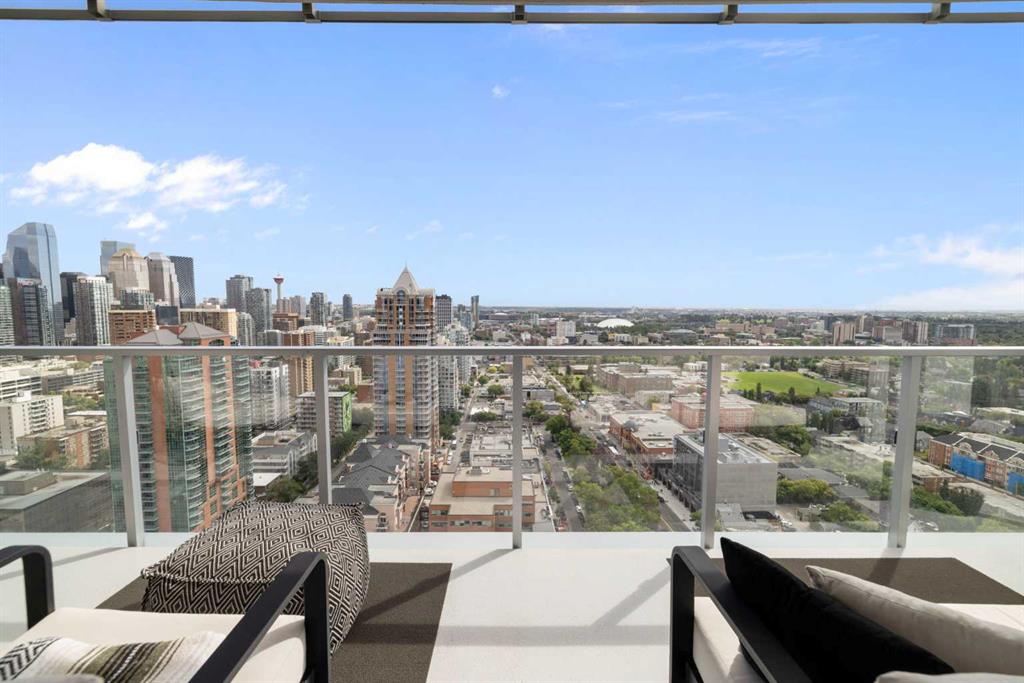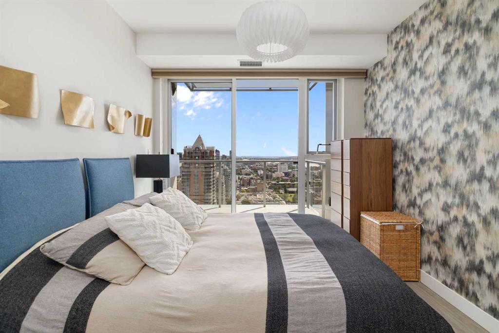 --- CHECK OUT VIDEO TOUR --- Live Royal! Unique and unparalleled, this Sky-Suite presents style and finishings that dreams are made of. 24-hour security/concierge and three high-speed elevators provide safe, seamless access day and night. As you enter you are greeted by a bright, open-concept design with floor-to-ceiling windows that showcase stunning city views and the warmth of the morning sun. The gourmet kitchen is a true highlight, featuring Bosch appliances, quartz countertops, full-height cabinets, under sink Reverse Osmosis water filter with additional remineralization filter for premium water, and a spacious breakfast bar perfect for entertaining. The adjacent dining and living areas are flooded with natural light and offer direct access to a large balcony, ideal for morning coffee or evening gatherings against the breathtaking backdrop. The spacious primary bedroom also boasts fantastic views from a second private patio, creating a serene retreat. Fully custom power blinds allow you to shut down the city for full relaxation. The stylish bathroom includes a deep soaker tub, double vanity, and heated flooring for extra comfort during those cool mornings. Additional features like in-suite laundry, underground parking, and a separate storage locker are included for added convenience. The building offers a wealth of amenities, including a 10,000 sq. ft. "Club Royal" with an elevated garden terrace, BBQs, steam room, sauna, gym, squash court, owner’s lounge, chef's kitchen, and private dining area. With a walk score of just under 90, The Royal building’s location is perfect for anyone looking to enjoy the countless parks, amenities, and transit options to enjoy downtown Calgary’s vibrant and trendy lifestyle. Don’t wait, come be a part of the Royal family!