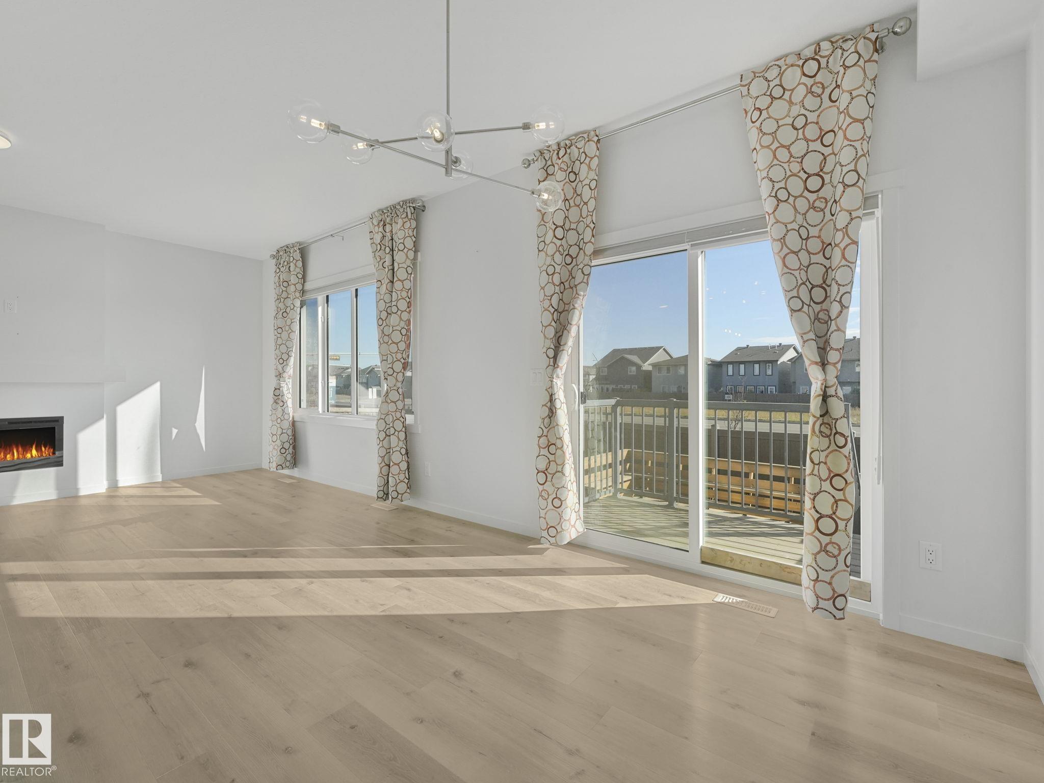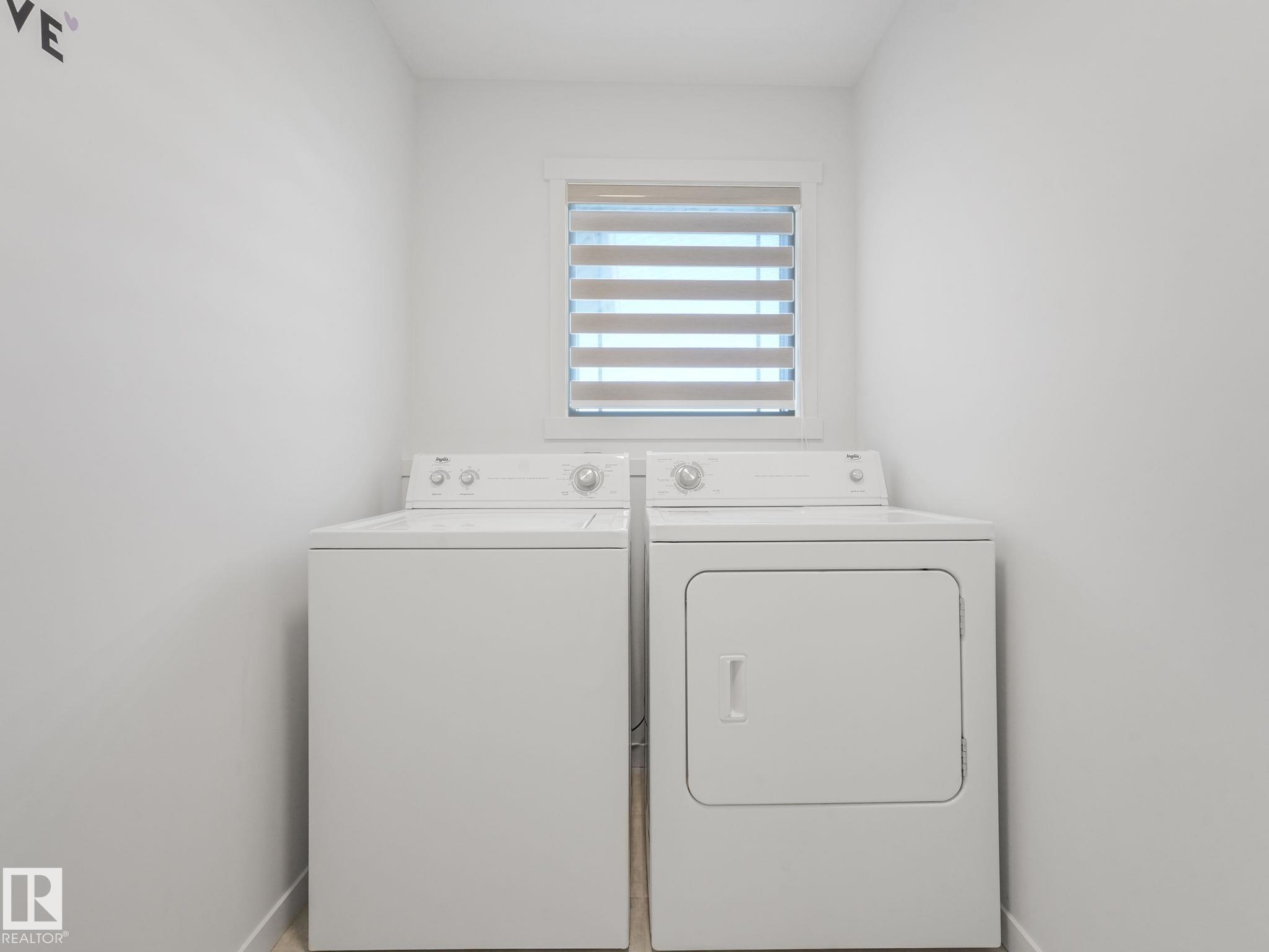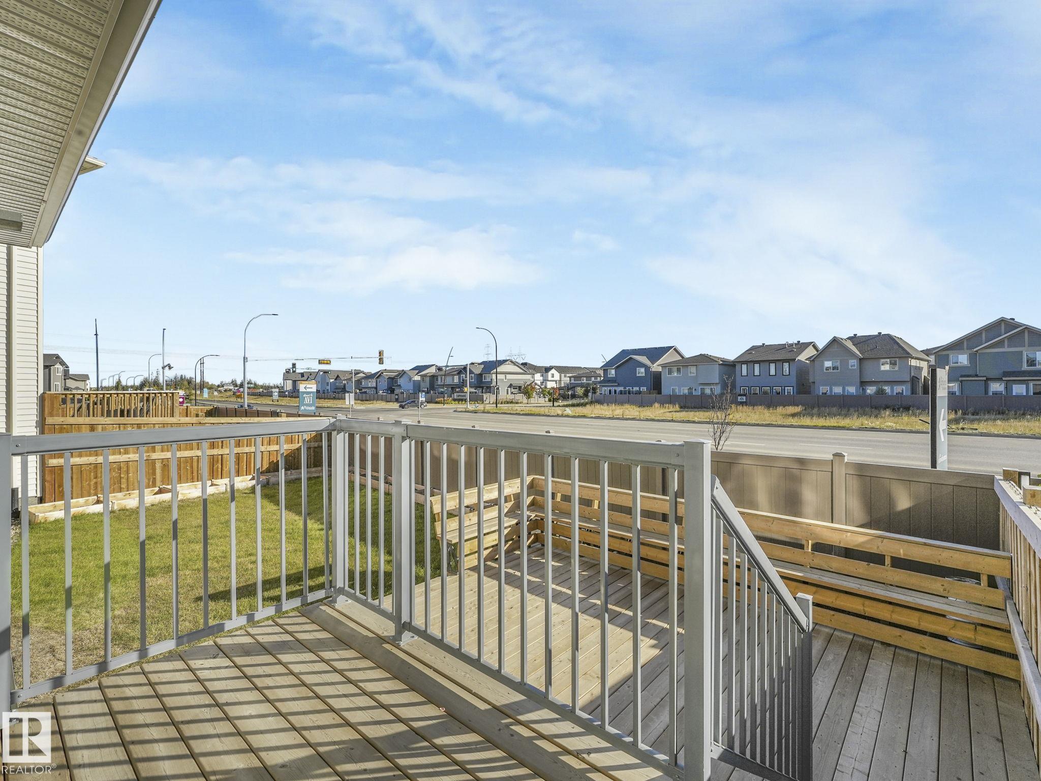 Welcome to the Uplands, the up and coming, booming community of SW Edmonton. This stunning and very well-maintained home boasts a very cozy open area concept floor plan, 3-beds and 2 and a half baths. Styled with contemporary, classic and timeless colours makes this home very lovely and aesthetically pleasing. The kitchen comes with polished quartz countertops, elegant back splash and customized white and wood cabinetry with pull-out racks. Stainless-steel appliances completes the kitchen. The huge backyard and extended deck with built in storage and seating is perfect for hosting and offers a perfect balance to indoor-outdoor living. Upstairs, you will find the spacious family room that has its own solar-tube that emits natural light all day which helps to save on your energy bill! The 2 ample sized bedrooms and primary bedroom and the laundry room can be found upstairs too. This home is perfect for starting families that would love to be in a quiet and calm neighbourhood. Come and be wowed by this home.