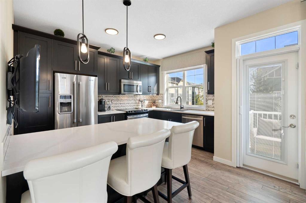Welcome to 263 Mahogany Way SE, a beautifully designed corner-unit, three-storey townhome offering 1,822 sq ft of thoughtfully planned living space in the sought-after Ebony Townhomes in Mahogany, Calgary’s premier lake community. With 3 bedrooms, 2.5 bathrooms, a double detached garage, central A/C, and a private balcony, this home perfectly blends modern comfort, functional design, and an unbeatable location. As a corner unit, this home benefits from additional natural light, enhanced privacy, and an open feel throughout. The entrance level features a spacious office or flex room conveniently located just adjacent to the garage, creating the perfect setup for a home office, gym space, hobby room, or additional living area. The open-concept main living level is designed for both everyday living and entertaining. Large windows fill the space with natural light, while the thoughtfully designed layout allows the kitchen, dining, and living areas to flow seamlessly together. The kitchen is the heart of the home and showcases quartz countertops, sleek cabinetry, upgraded appliances, under-cabinet lighting, and a convenient garburator, offering both style and functionality for daily living. Upstairs, you’ll find three well-sized bedrooms, including a spacious primary retreat complete with its own private ensuite and generous closet space. Two additional bedrooms provide flexibility for family members, guests, or a home office. The home also features central air conditioning for year-round comfort along with an upgraded blind and drapery package that adds a polished, move-in-ready finish throughout. One of the standout features of this property is the private balcony, offering open views and the perfect space to relax, BBQ, or enjoy sunny afternoons. Completing the property is a double attached garage, providing secure parking and additional storage. Living in Mahogany means enjoying one of Calgary’s most desirable lake communities. Residents enjoy exclusive access to Mahogany Lake, Calgary’s largest freshwater lake, offering year-round recreation including swimming, paddleboarding, kayaking, beach days, skating, and hockey in the winter months. The neighborhood also features beautiful wetlands, extensive walking and biking pathways, parks, playgrounds, and vibrant local amenities, including restaurants, cafés, and shops at Mahogany Village Market and nearby Westman Village. With schools, shopping, South Health Campus, and major roadways just minutes away, this exceptional townhome offers the perfect combination of lifestyle, convenience, and modern living.