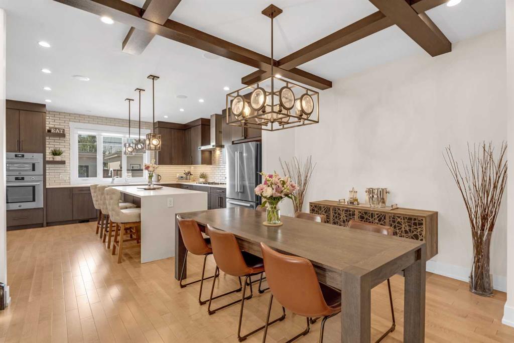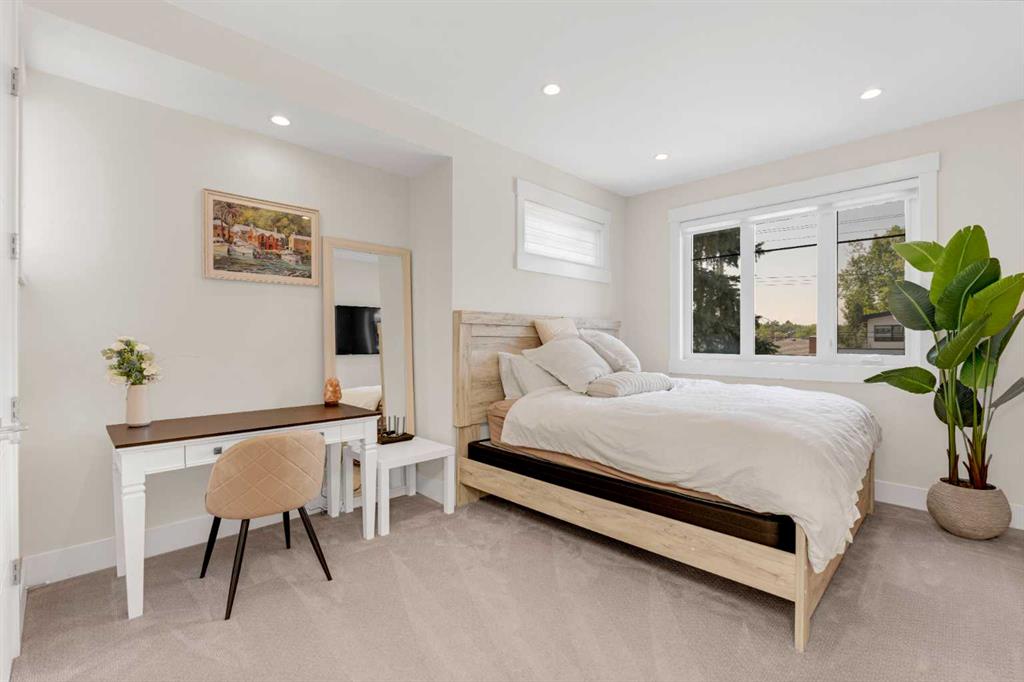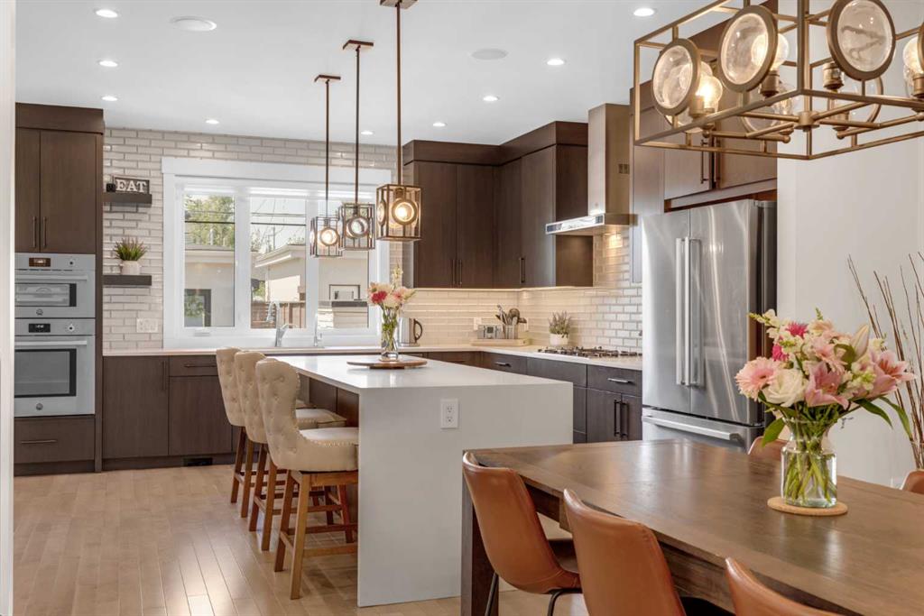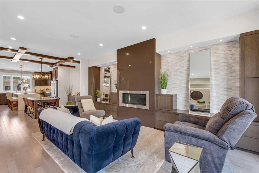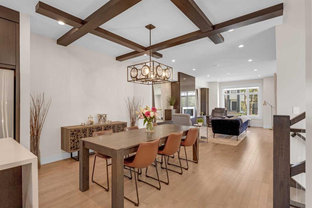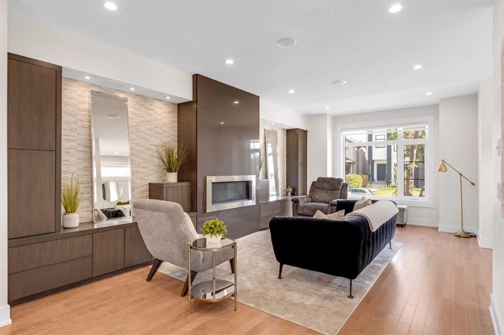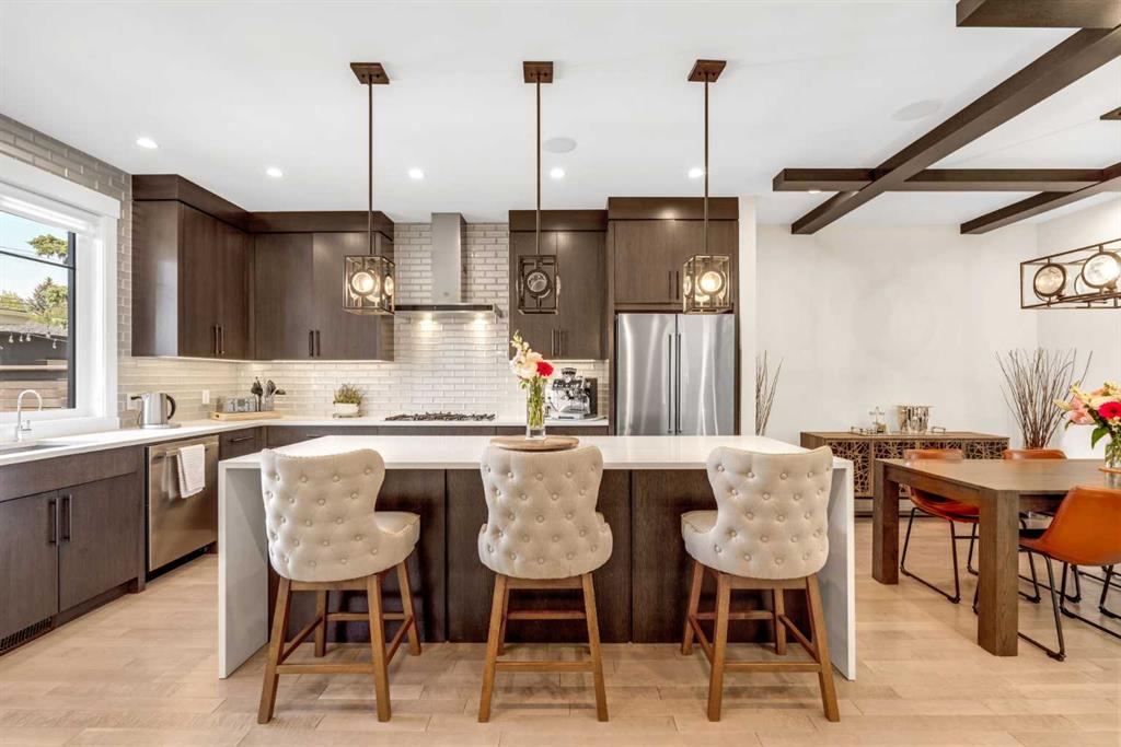 Welcome to 2635 29 Street SW. This exquisite custom home, spanning over 2,600 square feet of meticulously designed high-end living space, stands as a true masterpiece. A sprawling backyard and an expansive 3-CAR GARAGE elevate its uniqueness within its price range. As you step into the foyer, an aura of warmth and opulence envelops you, setting the tone for the grandeur that unfolds. The chef's dream designer kitchen boasts custom tile work, stainless steel appliances, ceiling-height cabinetry, and a charming breakfast nook, redefining culinary experiences. The living room boasts a captivating fireplace nestled amidst thoughtfully crafted built-ins, creating an inviting ambiance. Adding to the allure, the dining area boasts elegantly crafted ceiling beams that epitomize refined taste. Ascending to the upper level, you'll discover three generously sized bedrooms, each offering a haven of comfort and style. The primary suite redefines indulgence with its substantial walk-in closet and a spa-inspired ensuite, adorned with a double-sided fireplace for the ultimate relaxation. Venturing to the lower level, an entertainer's paradise awaits. An impeccable built-in bar, an inviting entertainment room, and a tastefully designed wine room combine seamlessly to cater to your hosting needs. An additional bedroom on this level, complete with its own bathroom, ensures privacy and comfort for guests. The immersive sound experience is woven throughout the home, courtesy of strategically placed built-in speakers. The vast yard extends an invitation to outdoor gatherings, featuring an enchanting fireplace and a deck that creates an idyllic setting for al fresco entertainment. In summary, this beautiful home has many carefully curated features, an expansive layout, air conditioning, a gas heater in the garage, and impeccable attention to detail combined to offer an unparalleled living experience that exceeds expectations.