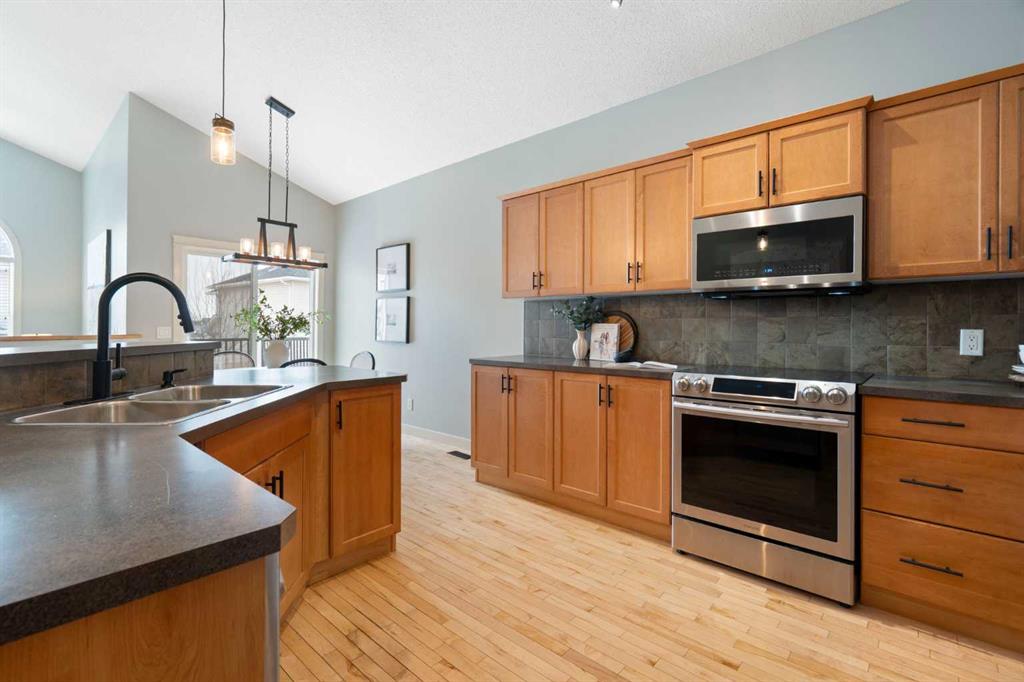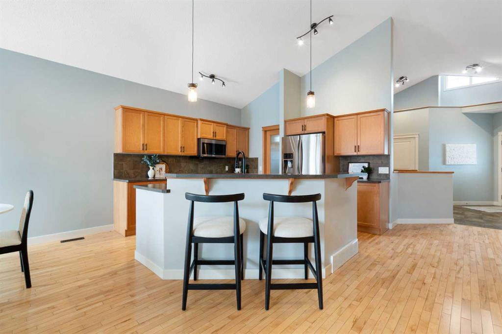 Hello, Gorgeous! Welcome to 264 Windermere Drive in the desirable lake community of Chestermere. This fully developed walkout bungalow offers 1,500 sq ft above grade plus an additional 1,435 sq ft in the finished basement, providing over 2,900 sq ft of total living space. The main floor features vaulted ceilings, a bright living room with gas fireplace, and a kitchen updated with brand new stainless steel appliances. The spacious primary bedroom includes a 5-piece ensuite and walk-in closet. A second bedroom, full bathroom, and main-floor laundry complete this level. The walkout basement offers two additional bedrooms, a full bathroom, a large recreation room, a separate family room, and a second gas fireplace with direct access to the lower patio. Recent updates include fresh interior paint, new stainless steel kitchen appliances, and a new garage door spring in 2024. The landscaped backyard includes a removable shed for additional storage. Located within walking distance to Chestermere Lake, schools, parks, shopping, and transit, this home offers an excellent opportunity in one of Chestermere’s most sought-after neighbourhoods.