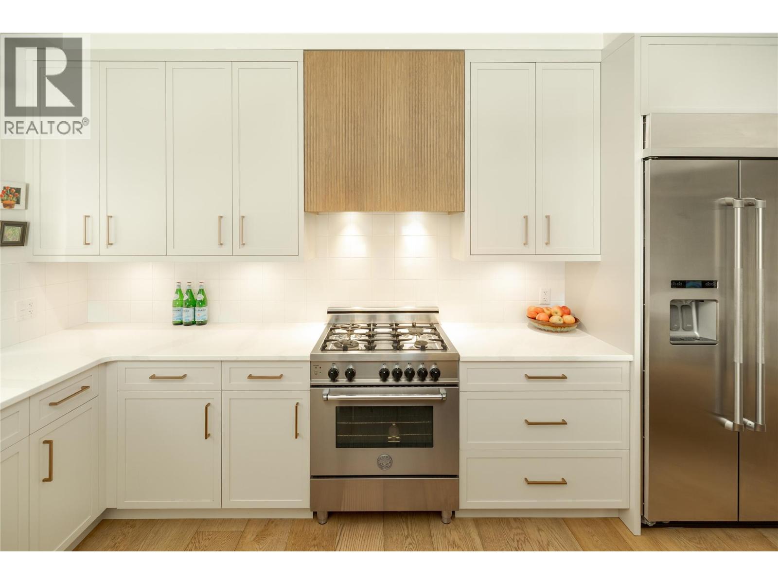 Life here unfolds effortlessly. An evening walk to the lake becomes part of your routine, morning coffee from your favourite cafe is just down the street. Dinner reservations, boutiques, everyday essentials — all within a few steps of home. Set in the heart of Pandosy Village, this is where urban energy meets relaxed Okanagan living. The timeless brick exterior offers presence & charm, while beyond the gate a private, fenced patio with louvered pergola creates an inviting outdoor retreat- ideal for summer dinners, quiet mornings, or gathering with friends. Inside, wide plank wood flooring carries throughout the main level, grounding the open-concept design. The living room, anchored by a striking fireplace, invites conversation & comfort. Custom millwork & thoughtfully designed built-ins add both function & architectural interest. Patio doors extend the living space outdoors, blurring the line between inside & out. The dining area easily hosts family dinners & celebrations, flowing seamlessly into a beautiful kitchen designed to impress & perform. A generous island becomes the natural gathering point, complemented by a Bertazzoni gas range, Fisher & Paykel dual dishwasher, custom hood vent, built-in wine fridge, & two-tone cabinetry. A discreet powder room and oversized single garage with abundant storage complete the main level. Upstairs, a versatile loft offers flexibility for a home office, reading nook, or creative space. The primary suite delivers a sense of retreat, featuring a spa-inspired ensuite with soaker tub, seamless glass shower, dual vanity, & heated floors. The second bedroom adapts beautifully with its integrated Murphy bed, while a full bathroom & well-designed laundry room complete the upper level. This is refined, low-maintenance living in one of Kelowna’s most walkable & sought-after neighbourhoods — designed for those who value style, connection, & a lifestyle where everything is within reach.