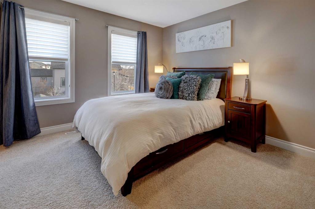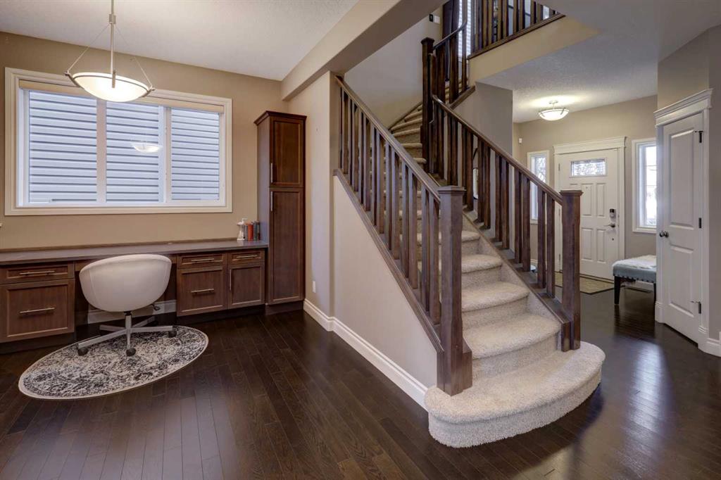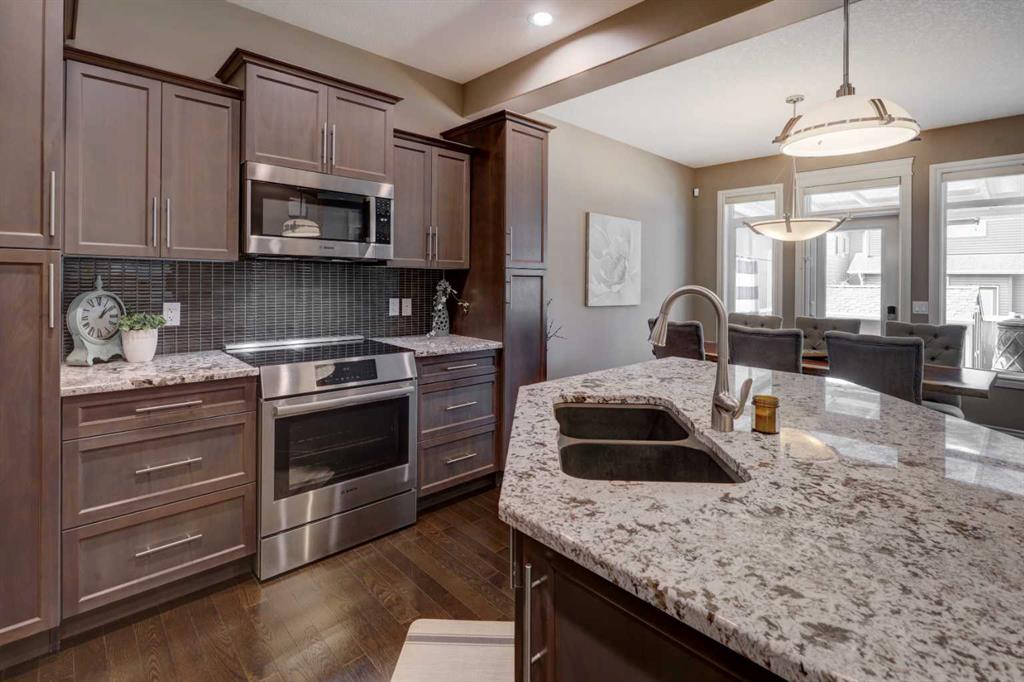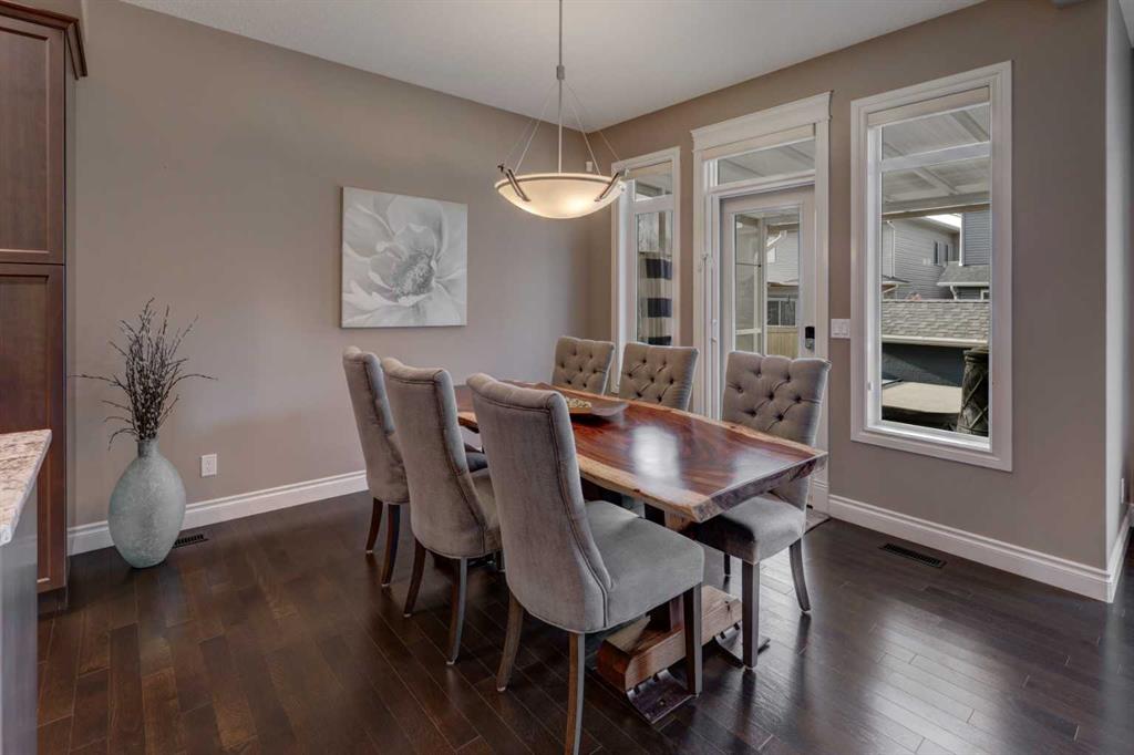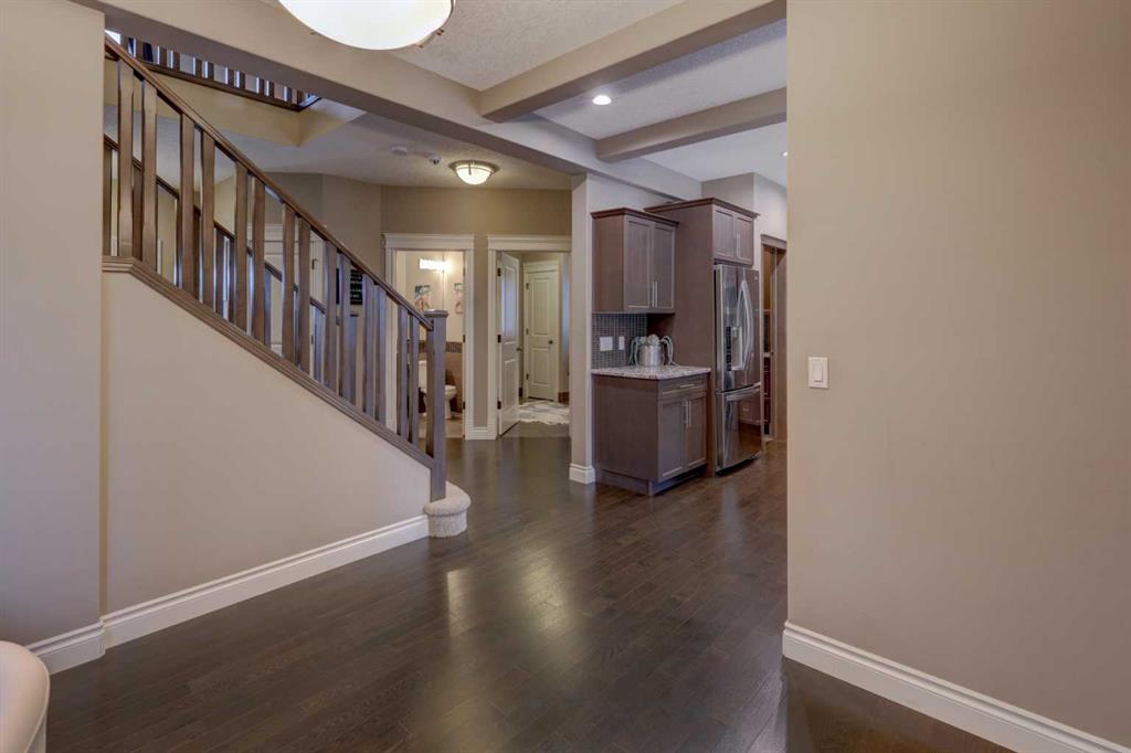 ****OPEN HOUSE SAT NOV. 22 FROM 2-4**** Welcome to your new home in Ravenswood - where luxury & fine details combine with location & pride of ownership. This home is completely move in ready & all of the upgraded features of this former MCKEE SHOWHOME showcase timeless elegance and modern comfort. As you enter the quaint front porch note all of the room you have for seasonal decorating or a cute coffee space if desired. The extremely generous FOYER leads either to the OPEN CONCEPT main floor or down to the lower level - would be very easy to wall off the entryway & create a sep entrance for a private basement living if desired. As you continue onto the main floor note the gleaming REAL HARDWOOD FLOORS - immaculately maintained & cared for - as well as the BEAMED CEILINGS - a highly upgraded feature rarely found in homes today. The 2 pc bath is tucked away next to the mudroom space. Enter the main hall and note the HOME OFFICE SPACE w/BUILT IN CABINETRY & desk. The highly upgraded kitchen boasts granite counters, BUTLER'S PANTRY, SS BOSCH APPLIANCES, touchless MOEN FAUCET (lifetime warranty) & a massive dining space. All of this leads to the very generous living room w/ gas fireplace & WEST FACING light. The majority of the windows on the west side of the home (both main and upper floors) have been upgraded to TRIPLE PANE. Head upstairs noting the classic WOOD RAILINGS & curved PLATFORMS on the stairs & enter the BONUS ROOM SPACE w/VAULTED CEILING & lots of natural light. The PRIMARY is host to a spa-like ensuite - sep corner SOAKER TUB, large tiled shower, 2 sinks & recessed water closet - all w/granite & upgraded finishings matching the rest of the house. The primary bedroom itself is adorned w/COVE CEILINGS, POT LIGHTS & built in speakers controlled from a receiver in the basement (all equipment included). These speakers are in other areas of the house as well, including the garage! Note the beautiful ambiance when you arrive for your viewing. The upper level is completed by 2 very large secondary bedrooms, fully upgraded 4 pc main bath & laundry room w/FRONT LOAD washer/dryer (included) & a nice window. The FINISHED BASEMENT adds flexible living space with a full bath and storage. The original MCKEE plans showed this basement dev w/2 more bedrooms (pls see plan in the photos as well as in the supplements). This plan could be completed by the new owners of this home making this a 5 bedroom property - perfect for a growing family or possibly as an illegal suite. Lastly, experience year-round relaxation on the covered deck w/hot tub, surrounded by low-maintenance landscaping in the back yard & zero scape in the front. Other upgrades include A/C, ON-DEMAND HOT WATER & DELTA FAUCETS. Steps to parks, schools (including Airdrie’s only FRANCOPHONE SCHOOL), green space, ponds & outdoor rink, this home combines luxury, comfort, and community. Come and see why Ravenswood is a great choice for family living.