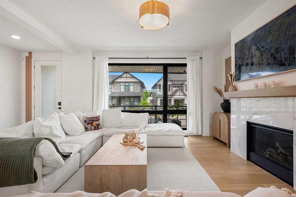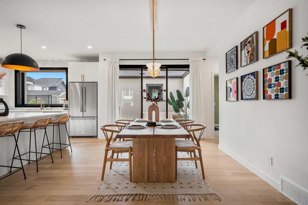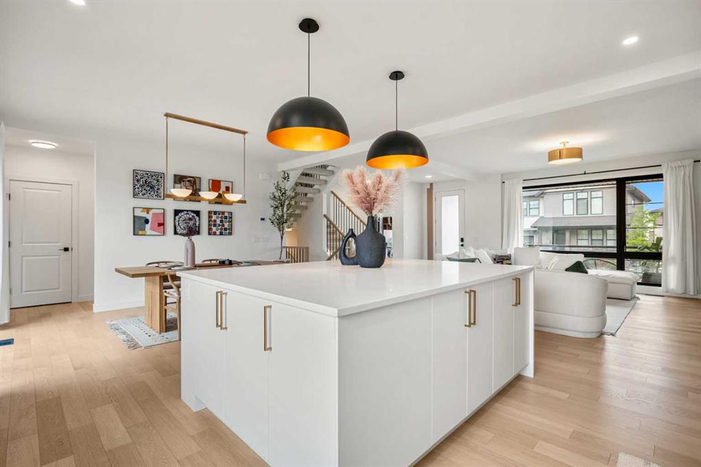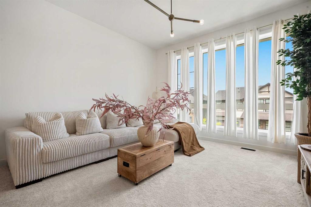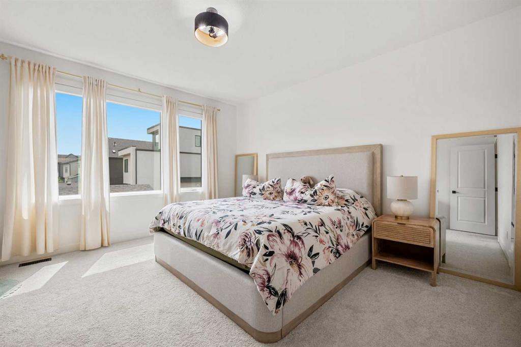 Welcome to 27 Bluerock Avenue SW, a beautifully designed and meticulously maintained CALBRIDGE BUILT residence in the vibrant community of Alpine Park. This modern two-storey home OFFERS OVER 2300 SQUARE FEET of thoughtfully developed living space, combining comfort, contemporary style, and everyday practicality—perfect for families or anyone seeking a refined yet relaxed lifestyle. From the moment you enter, a warm and inviting foyer leads you into an open-concept main floor filled with natural light. Large windows highlight the rich hardwood floors, creating a bright and cohesive atmosphere throughout. At the front of the home, a private office provides an ideal setting for remote work, studying, or creative projects. The main living area is spacious yet welcoming, centered around a large picture window that connects seamlessly with the dining space—an excellent setting for both casual meals and special gatherings. The kitchen blends beauty and functionality with sleek cabinetry, quartz countertops, a striking waterfall-edge island, and a full suite of stainless steel appliances. A window above the sink overlooks the backyard, and the adjacent dining area opens onto a large deck with a built-in BBQ gas line, perfect for outdoor entertaining. Upstairs, a generous family room offers a versatile space for relaxing, watching movies, or spending quiet evenings together. The upper level features three well-sized bedrooms, including a serene primary suite with a custom walk-in closet and a luxurious five-piece ensuite. The ensuite includes a standalone tub, a glass and tile shower, and dual vanities, creating a peaceful private retreat. Two additional bedrooms share a beautifully appointed five-piece bathroom, while waterproof carpeting throughout the level provides both durability and comfort. The lower level remains unfinished, offering endless possibilities to tailor the space to your lifestyle—whether you envision a home gym, playroom, or media room. Outside, the backyard provides a calm setting for relaxation or entertaining. The double attached garage includes electric vehicle plug-ins for added convenience. Located in Alpine Park, one of Calgary’s most thoughtfully planned and dynamic communities, this home offers easy access to Stoney Trail and is just minutes from parks, schools, shopping, dining, and scenic walking paths. Experience modern living in a welcoming community—schedule your private showing today and discover everything this exceptional home has to offer.
