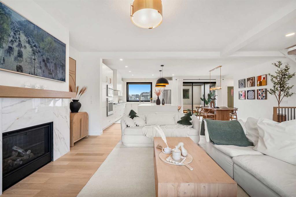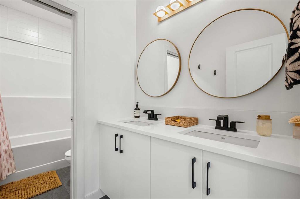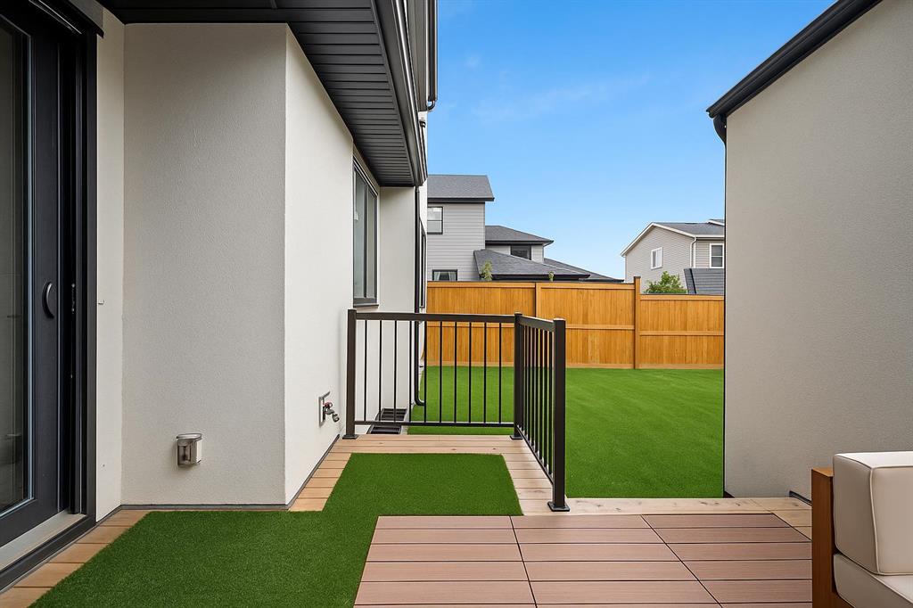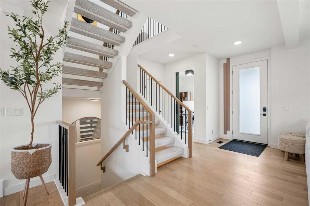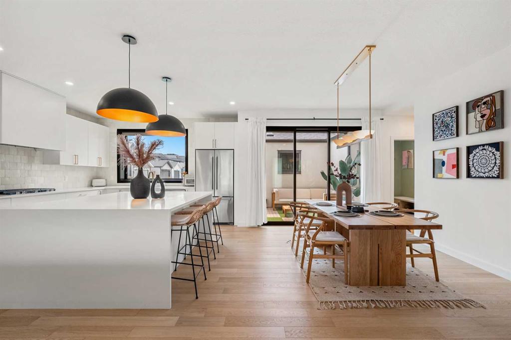Welcome to 27 Bluerock Avenue SW, a beautifully designed and meticulously maintained CALBRIDGE BUILT residence in the vibrant community of Alpine Park. This modern two-storey home OFFERS OVER 2300 SQUARE FEET of thoughtfully developed living space, combining comfort, contemporary style, and everyday practicality—perfect for families or anyone seeking a refined yet relaxed lifestyle. From the moment you enter, a warm and inviting foyer leads you into an open-concept main floor filled with natural light. Large windows highlight the rich hardwood floors, creating a bright and cohesive atmosphere throughout. At the front of the home, a private office provides an ideal setting for remote work, studying, or creative projects. The main living area is spacious yet welcoming, centered around a large picture window that connects seamlessly with the dining space—an excellent setting for both casual meals and special gatherings. The kitchen blends beauty and functionality with sleek cabinetry, quartz countertops, a striking waterfall-edge island, and a full suite of stainless steel appliances. A window above the sink overlooks the backyard, and the adjacent dining area opens onto a large deck with a built-in BBQ gas line, perfect for outdoor entertaining. Upstairs, a generous family room offers a versatile space for relaxing, watching movies, or spending quiet evenings together. The upper level features three well-sized bedrooms, including a serene primary suite with a custom walk-in closet and a luxurious five-piece ensuite. The ensuite includes a standalone tub, a glass and tile shower, and dual vanities, creating a peaceful private retreat. Two additional bedrooms share a beautifully appointed five-piece bathroom, while waterproof carpeting throughout the level provides both durability and comfort. The lower level remains unfinished, offering endless possibilities to tailor the space to your lifestyle—whether you envision a home gym, playroom, or media room. Outside, the backyard provides a calm setting for relaxation or entertaining. The double attached garage includes electric vehicle plug-ins for added convenience. Located in Alpine Park, one of Calgary’s most thoughtfully planned and dynamic communities, this home offers easy access to Stoney Trail and is just minutes from parks, schools, shopping, dining, and scenic walking paths. Experience modern living in a welcoming community—schedule your private showing today and discover everything this exceptional home has to offer.