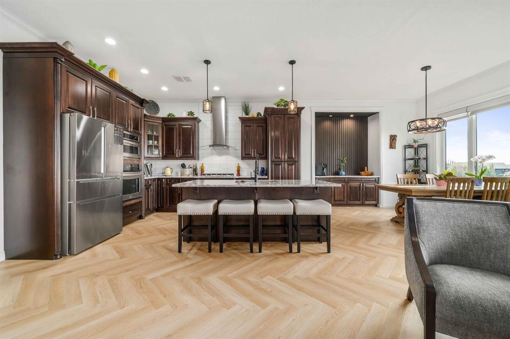 27 Desert Blume Gate — overlooking the 11th hole 1957 sq. ft. (plus fully developed basement) 4 Bedrooms + Den | 3 Bathrooms | 3 Car Garage This newly renovated home combines timeless luxury with modern comfort — and the views will take your breath away. Features you’ll love: • Stunning herringbone vinyl floors (with original hardwood beneath) • Custom fluted wall accents & granite throughout • Gorgeous primary suite & spa-like bathroom • 2 bedrooms + den upstairs, 2 bedrooms down (one oversized with Jack & Jill bath) • Cement tile roof + resurfaced driveway • Fireplaces up & down (main floor is a two-way) • Full speaker system throughout • New 97% energy-efficient furnace • Underground, self-draining sprinkler system • Upper & lower decks with a PHENOMENAL golf course view • Landscaped yard + large dog run This home is made for entertaining, relaxing, and enjoying one of the most sought-after communities in Desert Blume.