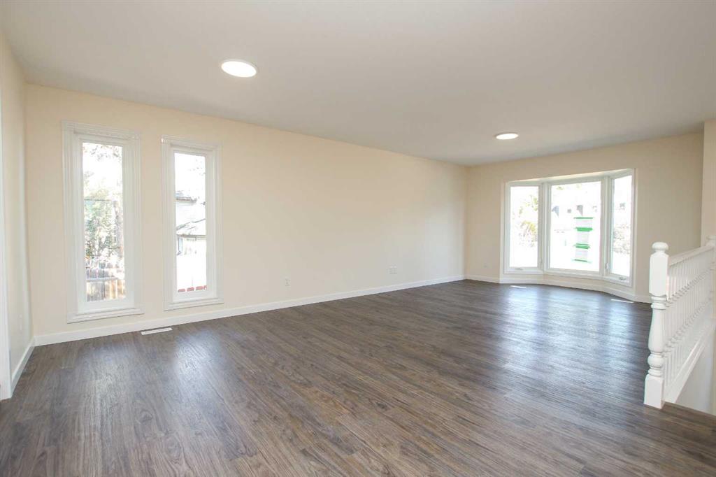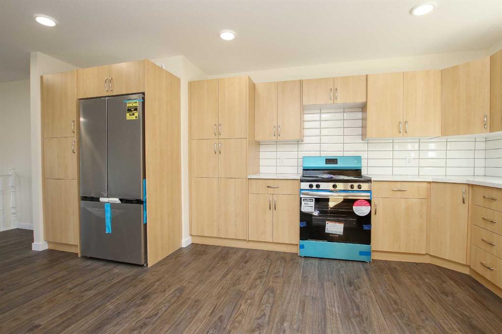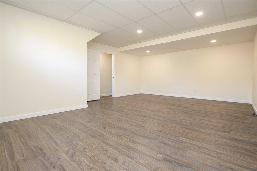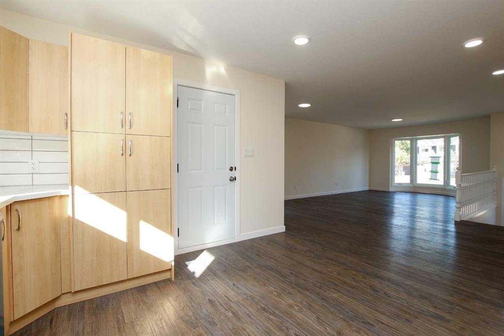 IMMEDIATE POSSESSION AVAILABLE ~ FULLY RE-BUILT HOME ~ 4 BEDROOM, 3 BATHROOM BI-LEVEL WITH OVER 1300 SQ. FT. ABOVE GRADE ~ WALK-UP BASEMENT W/SEPARATE ENTRY ~ BACKING ONTO MATURE TREES & SIDES ON TO A WALKING TRAIL ~ Sun filled entry welcomes you to this brand new, move in ready home ~ The open concept layout is complemented by vinyl plank flooring to create a feeling of spaciousness ~ Floor to ceiling bay windows in the expansive living room overlook the front yard and allow for natural light to fill the space ~ Easily host large gatherings in the dining room floor to ceiling windows offering more natural light ~ The spacious kitchen offers an abundance of soft close cabinets with oversized drawers and built in pantry, tons of counter space, full tile backsplash, window above the sink overlooking the deck and backyard, plus brand new stainless steel appliances ~ Separate entry from the kitchen leads to a wrap around deck that overlooks the backyard and has enclosed storage below ~ The primary bedroom can easily accommodate a king size bed plus multiple pieces of furniture, has dual closets, a 4 piece ensuite, and sliding patio doors to the deck ~ 2 additional main floor bedrooms are both a generous size and are conveniently located across from the 4 piece main bathroom ~ The fully finished basement with high ceilings offers a spacious family room, 4th bedroom, 4 piece bathroom, laundry (with new front load laundry pair), and a separate entry with walk up access to the backyard ~ Double attached garage is insulated and finished with painted drywall ~ The fully fenced backyard has enclosed storage below the deck plus a garden shed, fire pit, plenty of grassy yard space and mature trees offering shade and privacy ~ Beside and backing on to a walking trail and treed green space that connects to more trails, green space, parks, playgrounds and outdoor fitness area ~ Easy access to multiple schools, rec centres, transit and tons of shopping with all amenities ~ Home was rebuilt in 2023 with work completed by DKI - Central Alberta and includes the balance of the Alberta New Home Warranty Program.