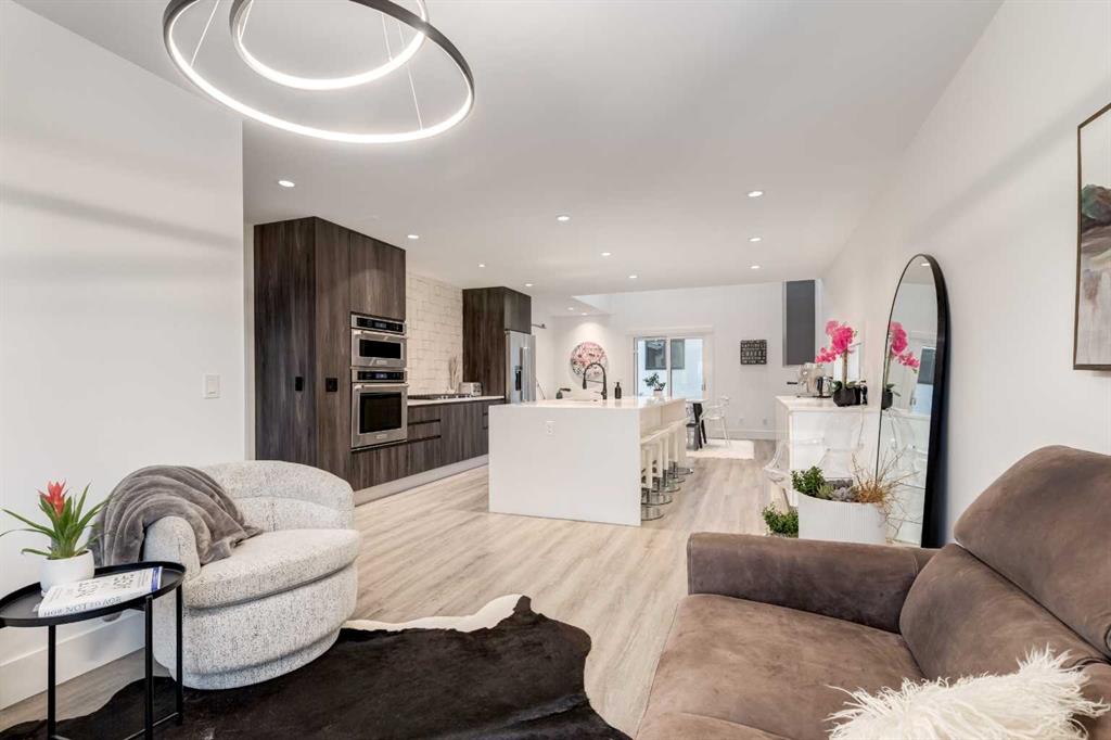 The home with the yellow door... yes, that one. Now is your chance to own this striking modern residence tucked into the sought-after community of Highwood. Situated on an extra-wide lot, this thoughtfully designed home offers over 2,900 sq ft of living space across three levels, plus a fully developed basement, all created to maximize light, volume, and livability. Clean architectural lines, a soft neutral palette, and expansive windows set a calm, airy tone throughout. Soaring ceilings, sleek finishes, and two dramatic open-to-below spaces are flooded with natural light from four skylights, creating a sense of space that feels both intentional and inviting. The kitchen balances form and function beautifully, featuring stainless steel appliances, a gas range, custom soft-close Italian cabinetry, and white quartz countertops with a waterfall island, designed for both everyday living and entertaining. The main living area is anchored by a distinctive BioFlame fireplace and opens seamlessly to a 600 sq ft deck and professionally landscaped, west-facing backyard, ideal for sunset evenings. The second level offers three bedrooms, including one with a private ensuite and heated floors, while custom built-ins throughout the home ensure effortless organization. The third-floor primary retreat feels like a private spa, complete with in-floor heating, an oversized shower, and serene finishes. Step onto your private balcony and take in downtown views- perfect for enjoying fireworks from the comfort of home. The legal one-bedroom basement suite is equally polished, with a private side entrance, custom Italian kitchen, radiant floor heating, soundproofed construction, oversized shower, and generous storage. With long-term tenants eager to stay, it’s an ideal income opportunity or multi-generational solution. Additional highlights include an oversized 22’ x 24’ insulated garage with 220V EV charging, custom window coverings, USB outlets throughout, high-efficiency furnace and hot water tank, roughed-in A/C, and a quiet cul-de-sac location with an east-facing front overlooking a lush park. Surrounded by mature trees and excellent schools—including public, Catholic, French, Spanish, Mandarin, and Foundations for the Future, Highwood is a true hidden gem. With Confederation Park, outdoor rinks, golf, pools, playgrounds, bike paths, transit, and the future Green Line LRT all nearby, this home offers the perfect balance of design-forward living and everyday convenience. A rare opportunity where modern minimalism, refined craftsmanship, and inner-city lifestyle come together seamlessly.
