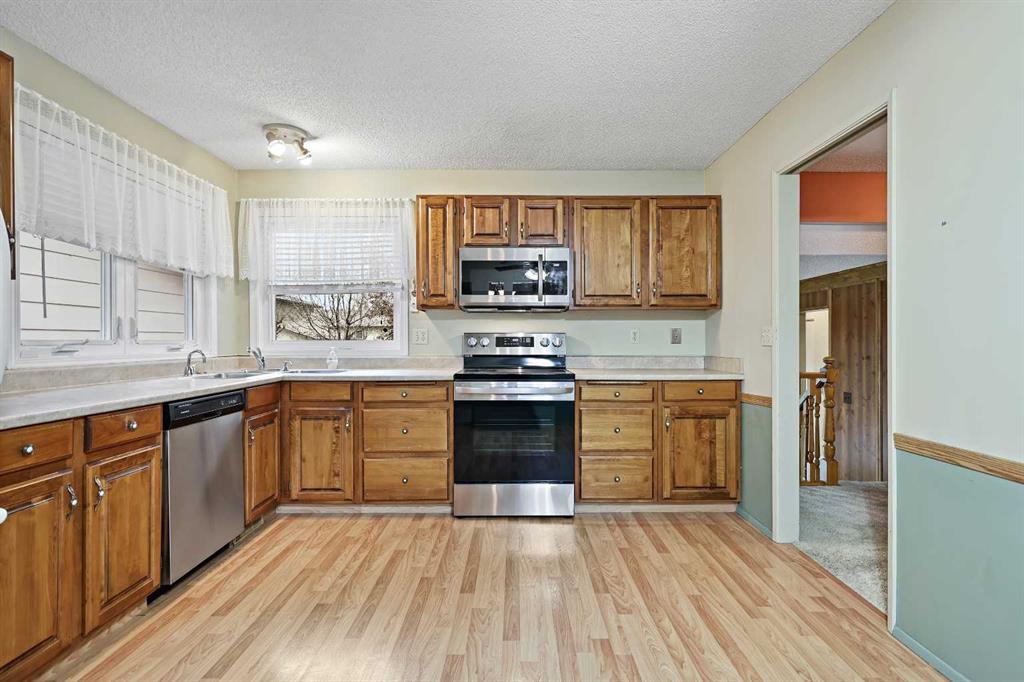 Nestled on a quiet tree lined street on the ridge side of Lake Sundance, this two-storey split property is ready for a new family to call it their own. With over 1800 square feet, four bedrooms and two and half bathrooms and an unfinished basement there is plenty of room here to utilize. You are welcomed into the home with a spacious entrance and your eyes are drawn to the stunning vaulted wood ceilings and large windows to the front street with the living and dining area. A spacious eat-in kitchen overlooks the south facing backyard. A sunken family room with a wood burning log lighter fireplace and patio doors to the yard is where much of your time will be spent. The main floor continues to the fourth bedroom/office, a laundry room and a two-piece bathroom in addition to a side entrance. Upstairs you have three additional bedrooms including the spacious primary with full three-piece ensuite bath and his and hers closets. The basement is unfinished but offers about 600 square feet of future development space complete with two windows in addition to a large utility and storage area. The back yard has a large deck, patios and gardens as well as a 22’x24’ detached garage accessed by a paved laneway. Sundance is a fantastic community with the Community Lake Recreation facility in addition to the access to Fish Creek Park and its miles and miles of recreation opportunities right at the end of your street. All public schools right through high school are contained within the neighborhood. Every amenity you can imagine is close-by. The train line is very close by and there is access to major roadways for great in and out access. This one has so much to offer and is ready for you now. Come and see for yourself today!
