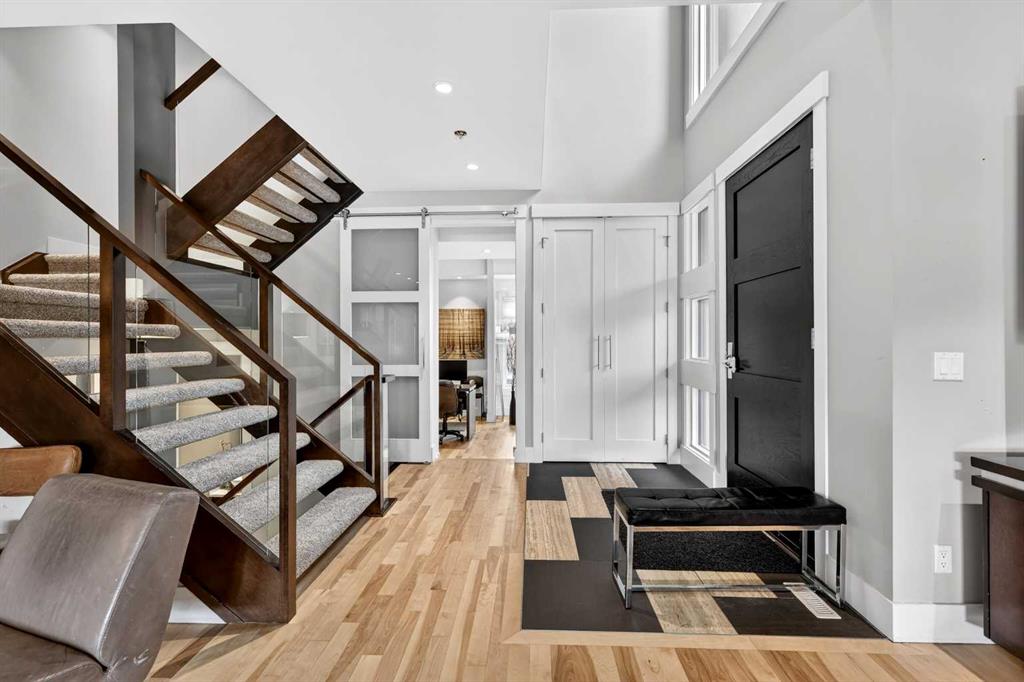 Nestled on a corner lot in the heart of the established inner city community of South Calgary, this meticulously maintained and move-in-ready 3-bedroom home offers nearly 3,300 sq ft of luxury living space. Extensively renovated with high-end upgrades throughout, this home ensures a modern, premium experience for families who value both comfort and connection. The bright, open concept main floor is ideal for everyday living and entertaining, featuring beautifully refinished hardwood floors, high ceilings, and large windows that fill the home with natural light. The spacious living room is anchored by a cozy floor-to-ceiling fireplace with built ins perfect for family movie nights. The chef inspired kitchen is both stylish and functional, complete with quartz countertops, a generous island, and easy access to the deck for effortless summer BBQs. A standout feature on this level is the dedicated professional office space, providing the ultimate environment for working from home or private consultations, while two convenient powder rooms complete the main level. Upstairs, a unique split staircase leads to a well planned layout featuring new high end carpet throughout. The primary suite provides a peaceful retreat with a double sided fireplace, walk in closet, and a 5 piece ensuite with heated floors and a soaker tub. A third bedroom offers added privacy with its own ensuite and access to a private balcony perfect for older kids, guests, or extended family. An additional versatile workspace on the upper levels offers flexibility for a second home office or homework station. The top level is a true bonus space the whole family will love, with a large media/family room and wet bar ideal for game nights, movie marathons, or entertaining friends. Step out onto the rooftop patio and take in the city views while the kids play or unwind at the end of the day. The fully developed basement adds even more space with a recreation room, laundry area, and direct access to the double attached underdrive garage making busy family life that much easier. Additional features include central air conditioning and built in speakers. Outside, enjoy a private, professionally landscaped yard featuring a beautiful outdoor living space perfect for summer evenings and a secure area for children and pets to play. Located just steps from parks, excellent schools, and all the amenities of Marda Loop, with quick access to downtown via 14th Street, this home offers the perfect balance of inner city convenience and family friendly luxury.
