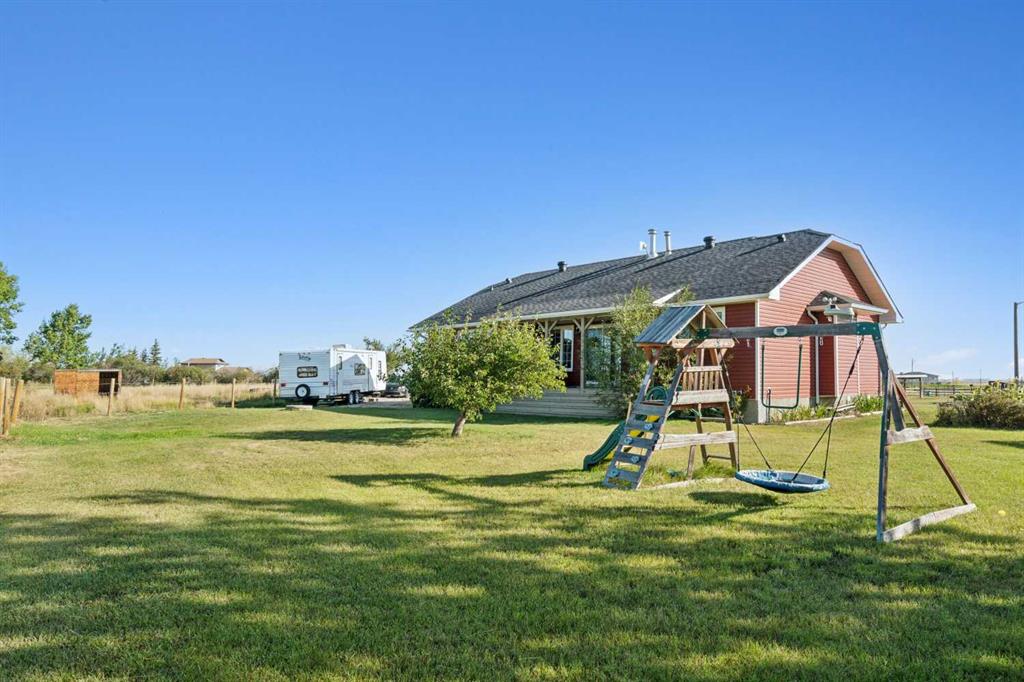 ****OPEN HOUSE SATURDAY JANUARY 31 FROM 11:00-3:00**** WELCOME to your own slice of country living with city conveniences close by. Situated on approximately 10 acres, this exceptional property offers the space, comfort, and functionality your family needs to live, grow, and thrive. As you arrive, you’ll immediately appreciate the thoughtful layout of this beautifully positioned bungalow, featuring both east- and west-facing decks—perfect for enjoying morning coffee or unwinding with sunset views and a glass of wine. Inside, the main level offers three bedrooms, including a spacious primary suite with double closets and a 3-piece ensuite. The open-concept kitchen boasts ample cabinetry, generous counter space, and a large pantry, flowing seamlessly into the dining area—ideal for family meals and entertaining. A huge living room provides plenty of space for gathering, highlighted by a two-sided gas fireplace shared with the kitchen for added warmth and ambiance. Patio doors lead to the back deck, offering easy access to the yard and a perfect spot to watch the kids play. Downstairs, you’ll find a versatile recreation/play area, an additional 3-piece bathroom, a generous guest space with wall-to-wall closets, a large office or flex room, convenient laundry, and an oversized storage room to keep everything organized. The double attached garage is heated and insulated, complete with a workbench, extensive shelving, and a sink, plus plenty of additional parking outside. For the outdoor enthusiast or equestrian, this property truly shines. The impressive 47’ x 43’ barn features five stalls, a tack room/office, hay storage, and drive-through access. Outside, you’ll find four horse paddocks, pasture space, garden, many recently replaced fences, and a fully equipped outdoor riding arena with night lighting. Two automatic waterers add convenience and functionality. Major updates include new siding, new roof and eaves on both the home and barn (2022), new windows (2011), new well pump (2023) and a brand-new septic field (2024) with a completed Septic Feasibility Report—offering peace of mind for years to come. Located just 5 minutes from Langdon, you’ll enjoy easy access to shops, restaurants, cafes, and everyday services. Calgary is only 15 minutes away, downtown Calgary just 30 minutes, and Strathmore and Chestermere are each a quick 15-minute drive. Nothing to do but move in and enjoy. This is the lifestyle you’ve been waiting for—don’t miss it! CLICK THIS LINK TO SEE the amazing AERIAL VIDEO of this property at this link: https://youtu.be/fjUYYL55fkQ.