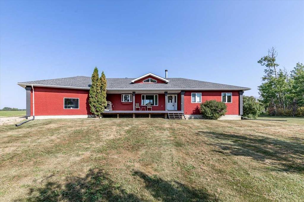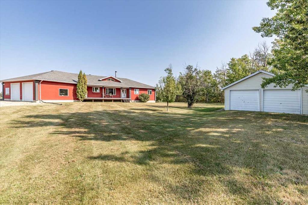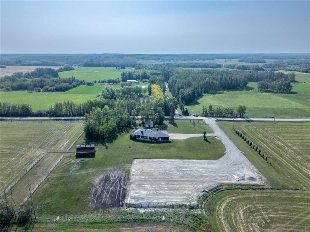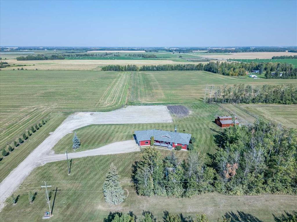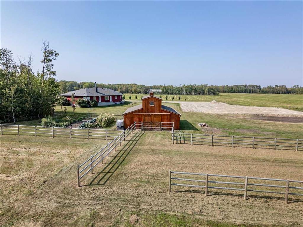 This Beautiful Home with an Oversized Double Attached Garage, Barn, and Double Detached Garage is situated on 55 Acres. Inside the home are 3 Bedrooms Including the Primary with a walk-in closet. The Primary also hosts a 5 piece Ensuite Bathroom, and a Double Sided Fireplace shared with the Living Room. The Den could be used as another Bedroom if needed. The Laundry Room has its own sink and extra storage. The Kitchen has an island with a second sink and is open to the Dining Room, and Living Room with Vaulted Ceilings. A 4 Piece Bathroom, and 2 Piece Bathroom are also on the Main floor with access to the Attached Heated Garage. The Basement is unfinished but open and ready to take in any direction. The Barn has 4 Box Stalls, a Tie Stall, a Loft in the center, and sliding doors on both ends. Rail Fencing off the back of the Barn makes it Great for animals. The Detached Garage has Power and a Concrete Floor. A prepared pad is in place for a future shop. This Gorgeous Property also has 2 Drilled Wells.