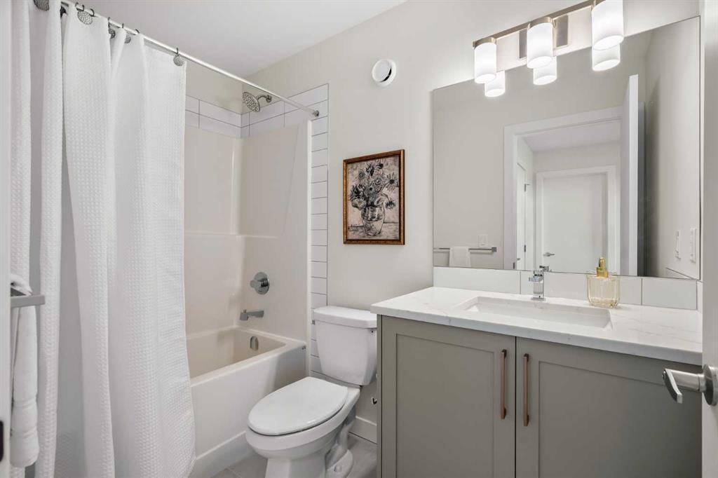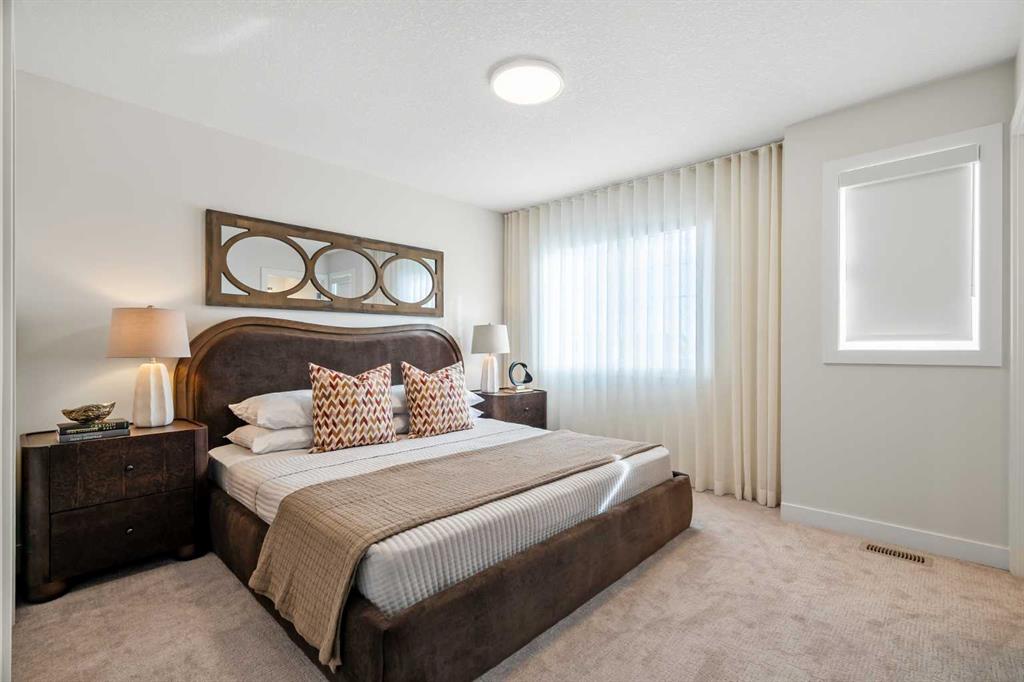Welcome to the Sophie by Partners Homes in Keystone Creek, a brand new pre-construction duplex in NE Calgary offering a well designed open floor plan with 3 bedrooms, 2.5 bathrooms, and a side entrance. This home is thoughtfully designed to provide functional living, modern finishes, and everyday comfort in one of North Calgary’s growing communities. The main floor features 9 foot ceilings, knockdown ceiling texture, and a bright open concept layout centered around a spacious kitchen. Finished with full height cabinetry, quartz countertops, a tiled backsplash, and a large central island, the kitchen also includes a stainless steel appliance package and a chimney hood fan with built-in microwave. A gas line to the range adds flexibility for future upgrades. The dining and living areas flow seamlessly together, creating a comfortable space for both everyday living and entertaining. Upstairs, the primary bedroom offers a walk-in closet and a private ensuite featuring a tiled walk-in shower. Two additional bedrooms and a full bathroom complete the upper level, along with convenient upper floor laundry including washer and dryer. The basement features 9 foot ceilings and a side entrance, providing additional flexibility for future use. At the rear of the home, a 20’ x 21’ gravel parking pad with alley access offers off street parking and future garage potential. Front landscaping is included, allowing for a finished exterior once complete. Finished in a craftsman elevation, this home offers timeless curb appeal in Keystone Creek, a growing NE Calgary community with access to pathways, green spaces, and convenient routes to Stoney Trail, Deerfoot Trail, CrossIron Mills, and Calgary International Airport. A well designed pre-construction home offering a practical layout, upgraded features, and strong value in North Calgary.