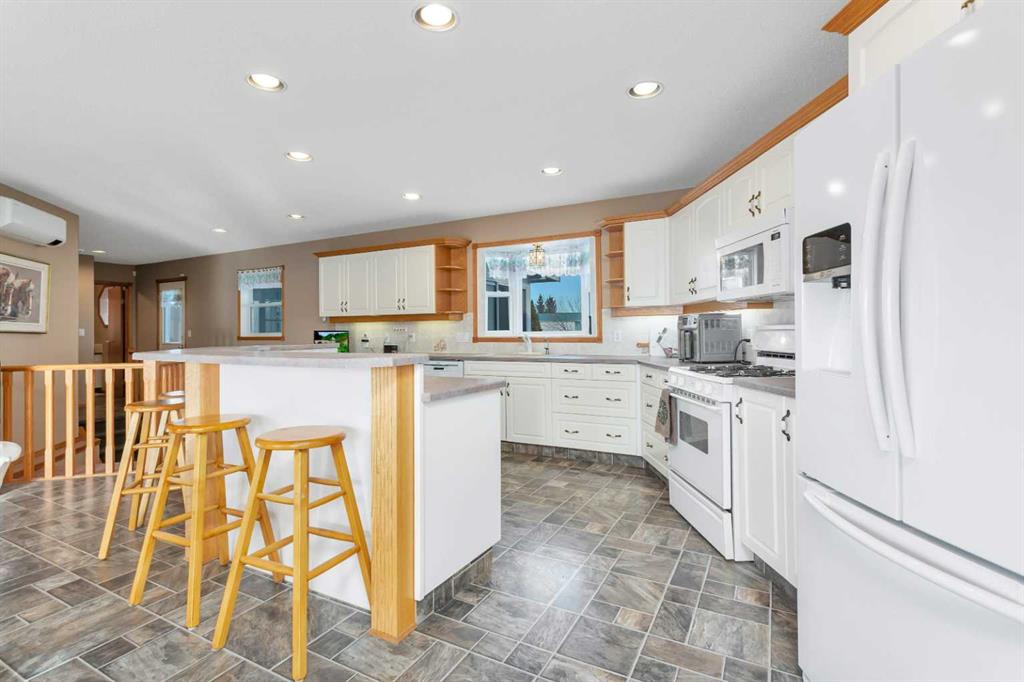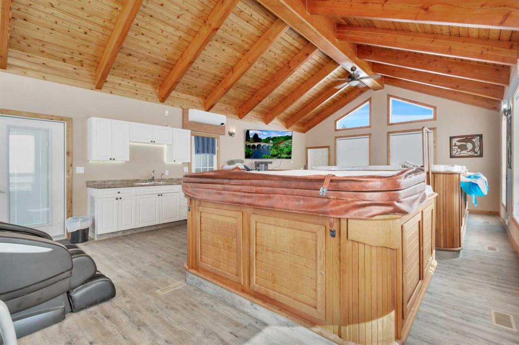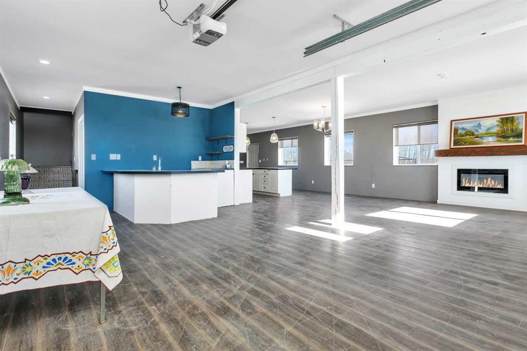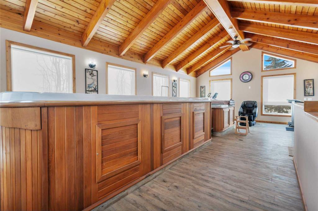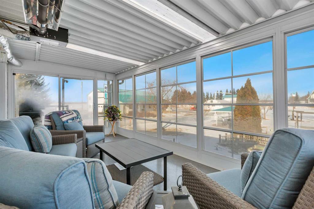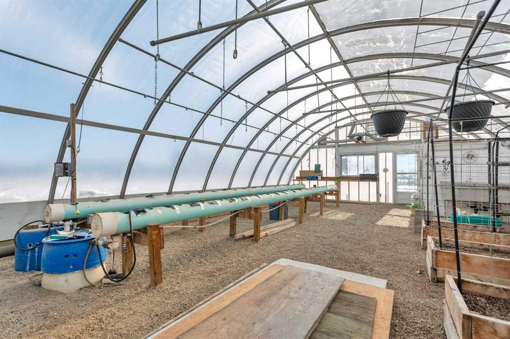 Discover ultimate versatility on 6.37-acre estate, perfectly situated for effortless highway and airport access and exceptional visibility from Highway 2A. This meticulously maintained property features a 4-bedroom, 4-bathroom main residence that was extensively updated in 2024 with the removal of all Poly B piping, drywall repair, and new paint. The main floor offers a bright, open kitchen with a central island and plenty of natural light from the south-facing windows and a stunning four-season sunroom equipped with infrared heating. The primary suite is a private retreat, featuring dual closets and a 3-piece ensuite that connects to a spectacular vaulted cedar spa and gym room, complete with a hot tub and swim spa along with a coffee bar and stainles steel sink. Two additional rooms can be found upstairs, one designed for an at-home office but provides an option for an additional bedroom. The main floor laundry room with a sink adds convenience. The walkout basement with two bedrooms and a four-piece bathroom adds flexibility with a kitchenette, an additional potential bedroom used as a playroom, and a functional layout. Comfort is prioritized throughout with boiler-powered heated floors in the home, garage, and all outbuildings, complemented by two heat pumps with reverse cooling and four mini-split units.The property also includes a fully self-contained secondary dwelling with 2 bedrooms, 2 bathrooms, a private laundry space, and a covered balcony. Professional-grade infrastructure includes two massive heated shops: a 40x64 shop with 16.4ft ceilings, a 14ft overhead door, plenty of storage, an office and a mezzanine with an additional office and storage. The 27x 64 shop addition features two dedicated office spaces, along with a kitchen and bathroom. The addition features extra space and storage solutions, including a storage garage with an overhead door. The second shop measures at 48x30 with 13.9ft ceilings and a 12ft overhead door. Outdoor amenities are equally impressive, featuring a 40x27 greenhouse with perimeter ducted heat loop off of the furnace (Double plastic thermal) and a 48" fan with two rainwater totes from roof drainage. A stocked koi pond with a winter heater, a gazebo with a fire pit, and a large playground area with playground equipment and a playhouse. Perfect for families and generations to come! The garden offers Evan’s cherry trees and raspberries, while the rest of the yard features landscaping with minimal upkeep. All of this is protected by a comprehensive security camera system. With a high-yield well, an iron filter, and thoughtful accessibility features like a brick-paved wheelchair ramp, this estate is a rare find for those seeking a live-work-play sanctuary. *GST May Apply*
