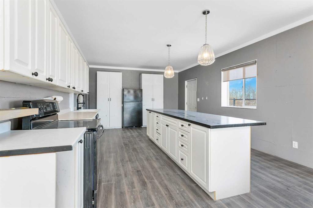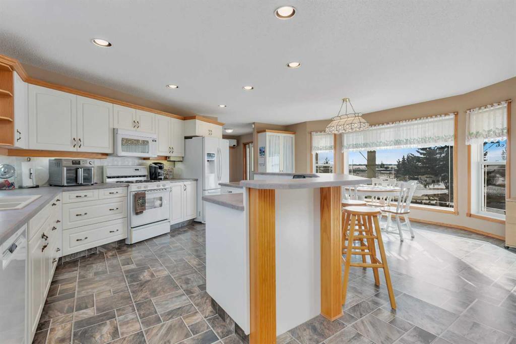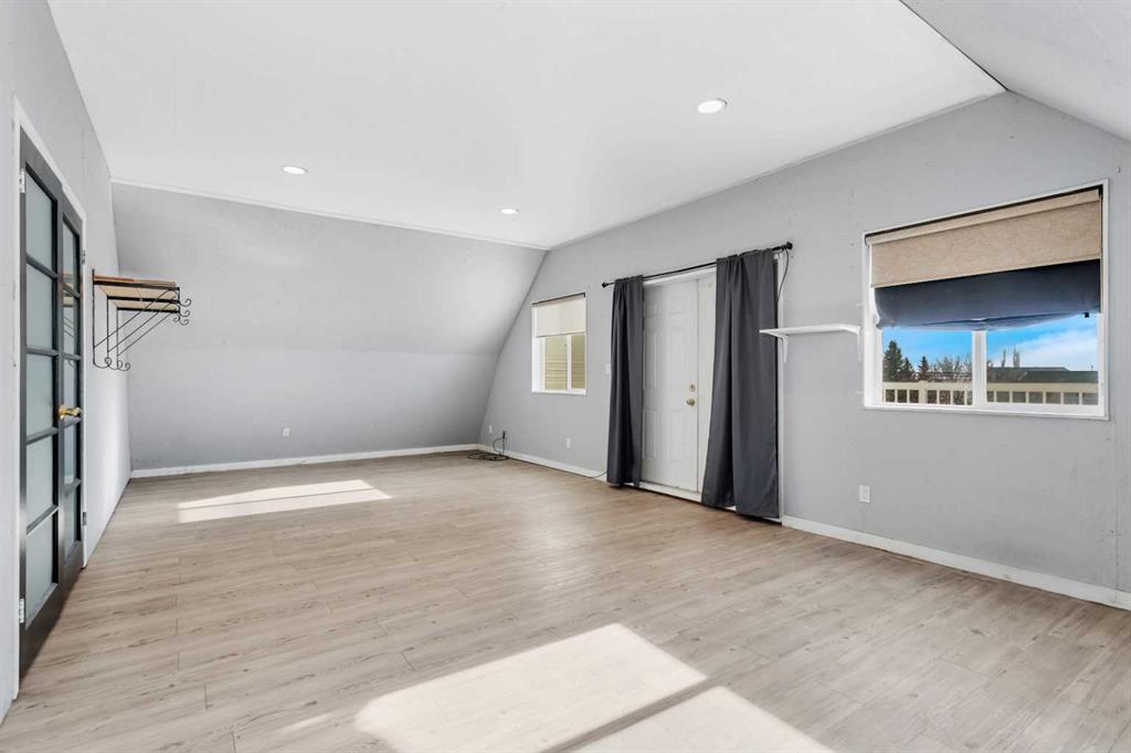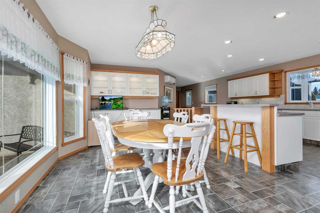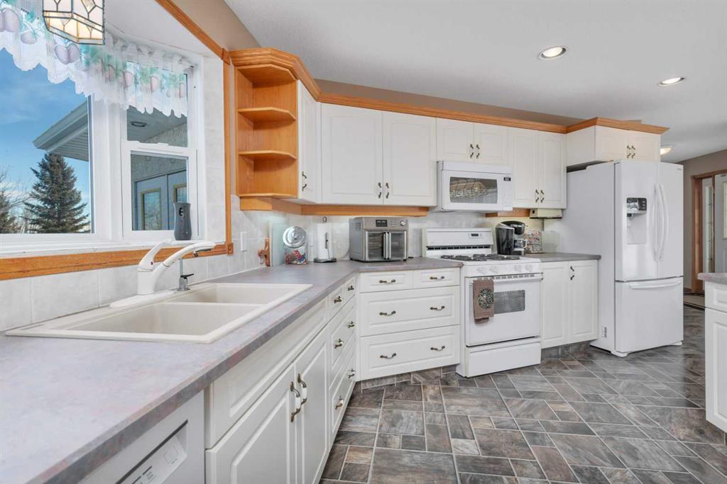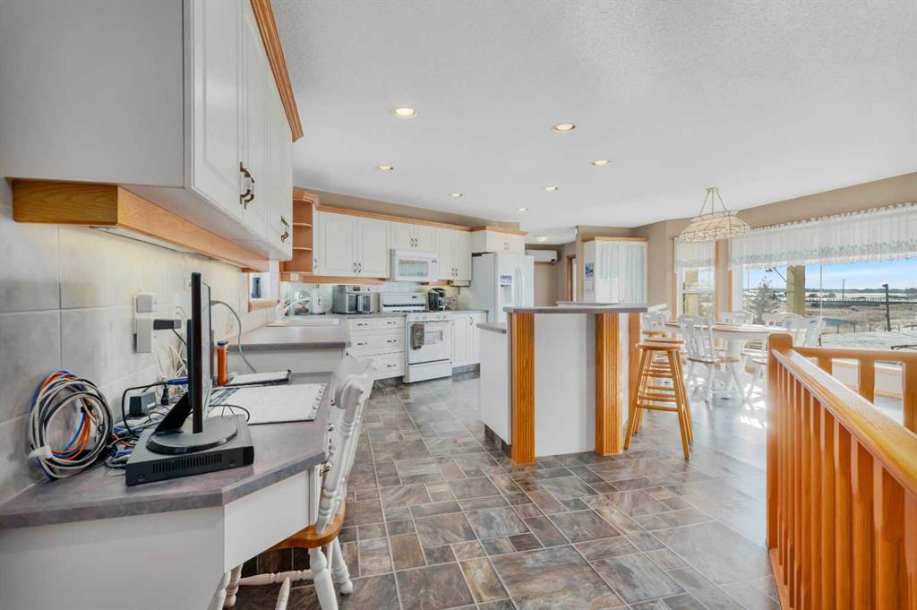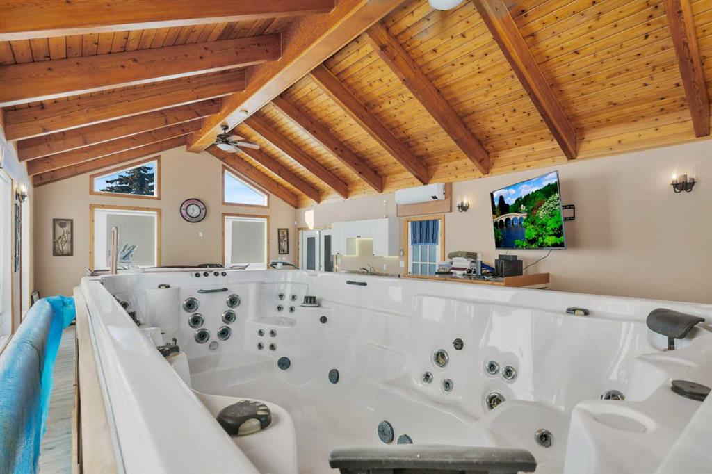 Discover ultimate versatility on 6.37-acre estate, perfectly situated for effortless highway and airport access and exceptional visibility from Highway 2A. This meticulously maintained property features a 4-bedroom, 4-bathroom main residence that was extensively updated in 2024 with the removal of all Poly B piping, drywall repair, and new paint. The main floor offers a bright, open kitchen with a central island and plenty of natural light from the south-facing windows and a stunning four-season sunroom equipped with infrared heating. The primary suite is a private retreat, featuring dual closets and a 3-piece ensuite that connects to a spectacular vaulted cedar spa and gym room, complete with a hot tub and swim spa along with a coffee bar and stainles steel sink. Two additional rooms can be found upstairs, one designed for an at-home office but provides an option for an additional bedroom. The main floor laundry room with a sink adds convenience. The walkout basement with two bedrooms and a four-piece bathroom adds flexibility with a kitchenette, an additional potential bedroom used as a playroom, and a functional layout. Comfort is prioritized throughout with boiler-powered heated floors in the home, garage, and all outbuildings, complemented by two heat pumps with reverse cooling and four mini-split units.The property also includes a fully self-contained secondary dwelling with 2 bedrooms, 2 bathrooms, a private laundry space, and a covered balcony. Professional-grade infrastructure includes two massive heated shops: a 40x64 shop with 16.4ft ceilings, a 14ft overhead door, plenty of storage, an office and a mezzanine with an additional office and storage. The 27x 64 shop addition features two dedicated office spaces, along with a kitchen and bathroom. The addition features extra space and storage solutions, including a storage garage with an overhead door. The second shop measures at 48x30 with 13.9ft ceilings and a 12ft overhead door. Outdoor amenities are equally impressive, featuring a 40x27 greenhouse with perimeter ducted heat loop off of the furnace (Double plastic thermal) and a 48" fan with two rainwater totes from roof drainage. A stocked koi pond with a winter heater, a gazebo with a fire pit, and a large playground area with playground equipment and a playhouse. Perfect for families and generations to come! The garden offers Evan’s cherry trees and raspberries, while the rest of the yard features landscaping with minimal upkeep. All of this is protected by a comprehensive security camera system. With a high-yield well, an iron filter, and thoughtful accessibility features like a brick-paved wheelchair ramp, this estate is a rare find for those seeking a live-work-play sanctuary. *GST May Apply*