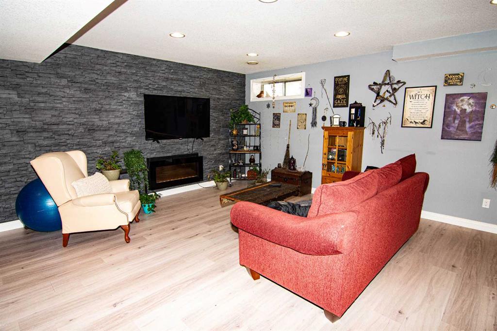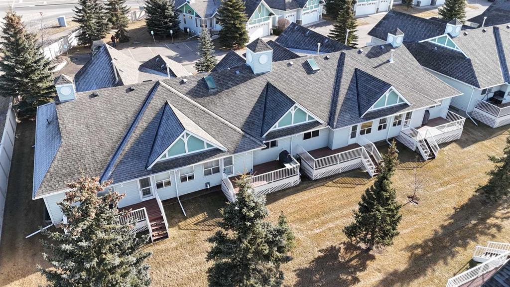 Sunny West-Facing Bungalow in Desirable "Greens at Woodside"! Air Conditioned! Open plan concept with vaulted ceilings! Upgraded kitchen with "Black Stainless Steel" appliances, Quartz Counters, white cabinetry with grey lower cabinets! The master suite is spacious and bright, with easy access to the main 4 piece bathroom. The second bedroom also is adjacent to bathroom and main level laundry. The basement has all permits for the development. It has a kitchen, feature wall with fireplace, heated floors in the bathroom, separate laundry. Double attached garage and rear deck with sunny west exposure. Bareland condo.