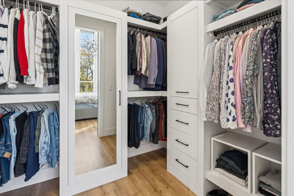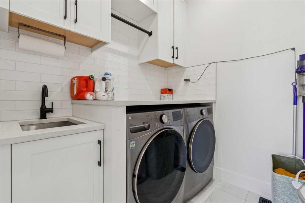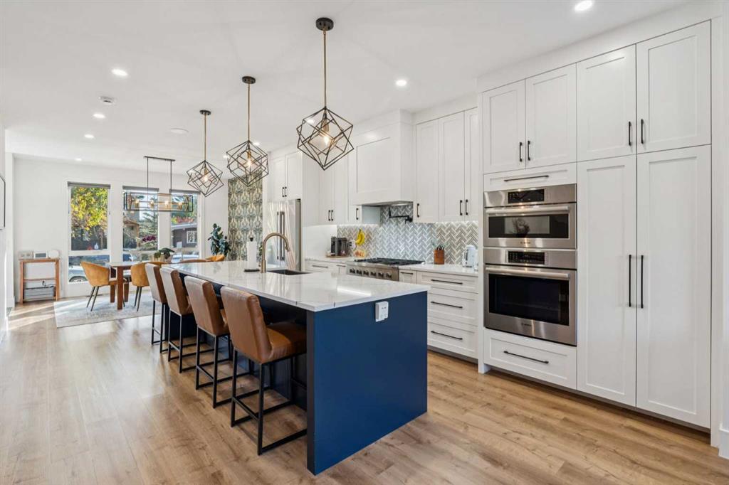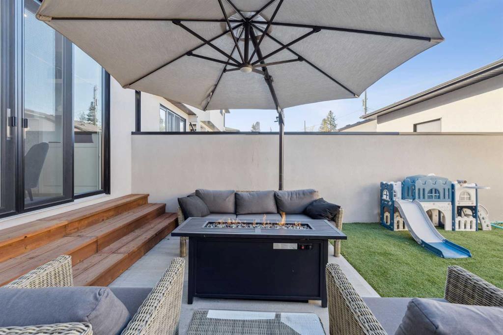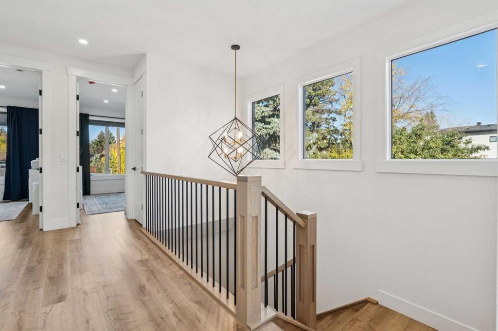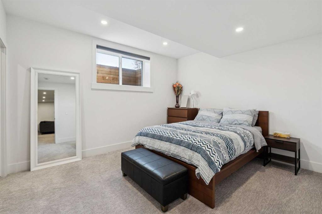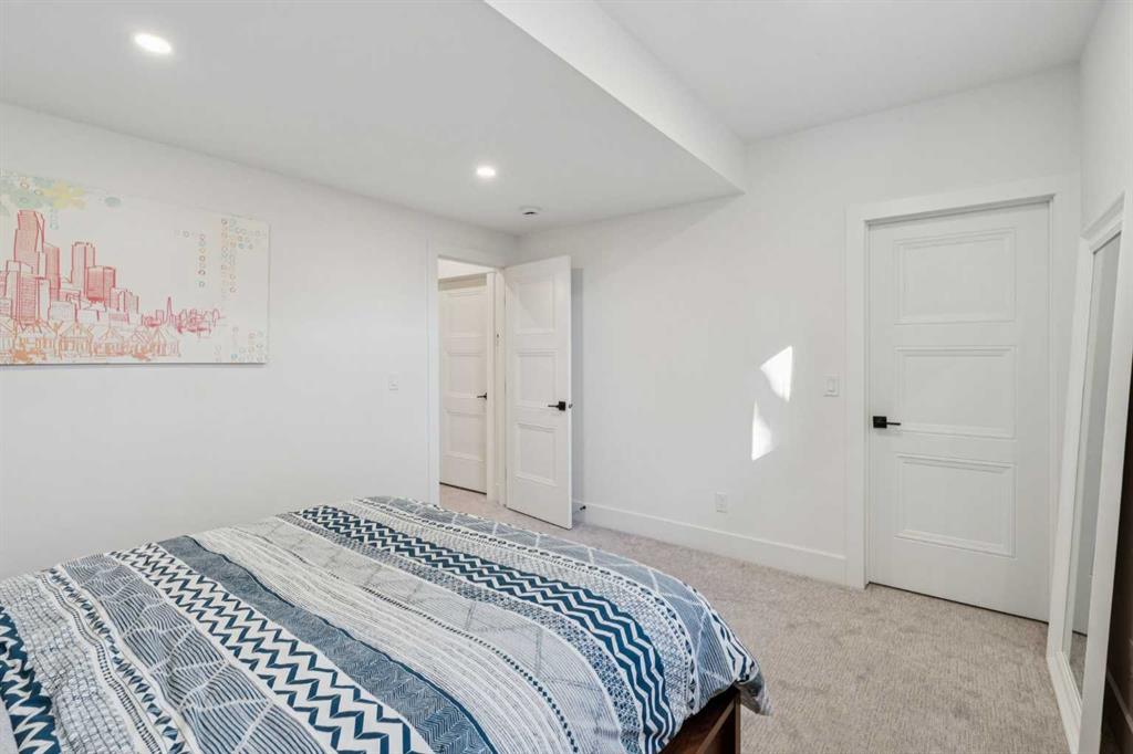 Welcome to 2801 43 Street SW, a pristine 2021 custom build by Royal Model Homes. Set on a quiet, family-friendly street around the corner from a park and playground, this home showcases thoughtful upgrades. The main floor is designed for easy living and entertaining with 9-ft ceilings, premium 20-mil ceramic-finish LVP, Bosch 800 Series appliances, and Hunter Douglas window coverings. The open plan flows from dining to kitchen to living room and out to a low-maintenance west backyard with concrete patio and turf—perfect for sunny afternoons and relaxed evenings. Upstairs, the primary retreat is vaulted to roughly 16 ft with a spa ensuite featuring in-floor heat, steam shower, and an air-jetted two-person tub, plus a walk-in closet. Secondary bedrooms are well sized with custom MDF closet built-ins; there’s an additional 4-pc bath and convenient upper laundry. The developed lower level adds a sleek bar wall with fridge, rec area, 4th bedroom, 4-pc bath, and in-slab hydronic heat. Extras: ceiling speakers on all three levels, sound-insulated rec ceiling and powder room, heated garage, central A/C, 90-U.S.-gal hot water tank, water softener, and under-stairs storage. Move-in ready, stylish, and low maintenance in a prime southwest location.