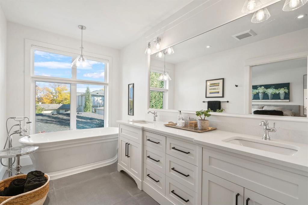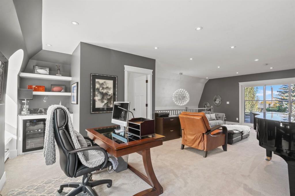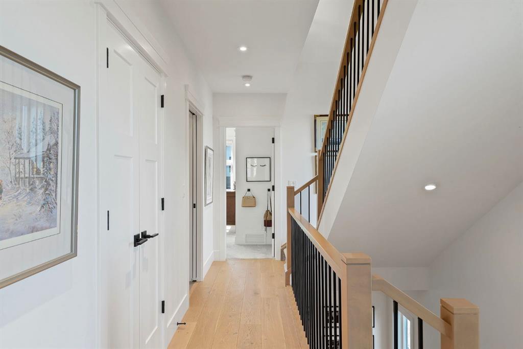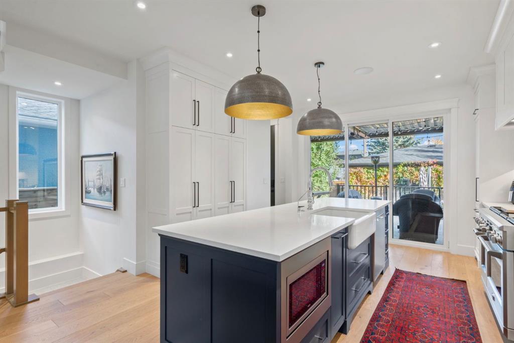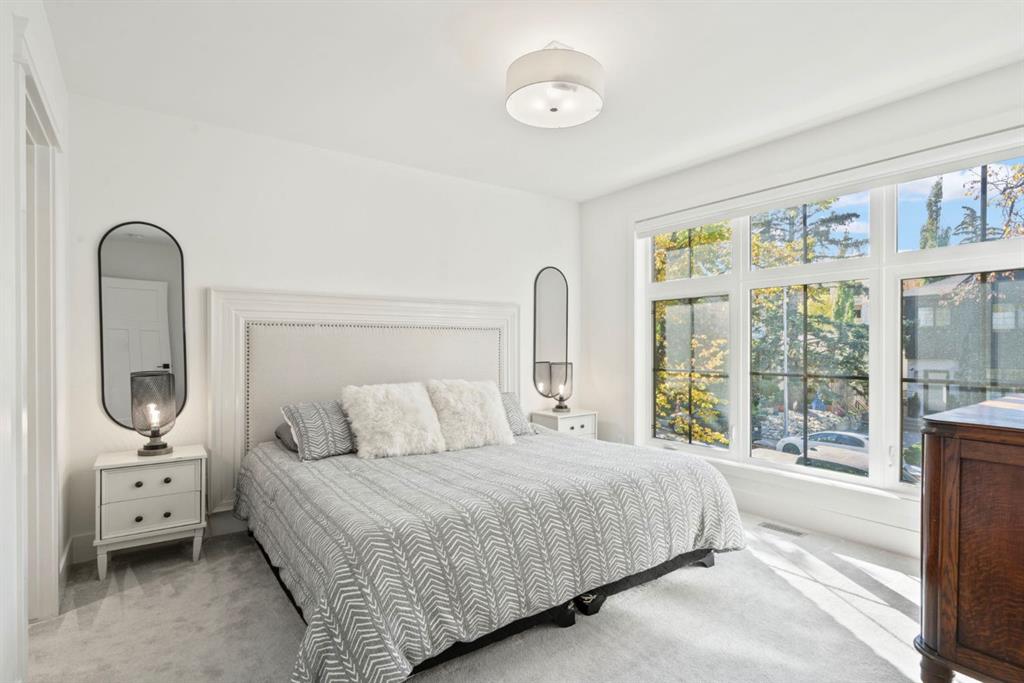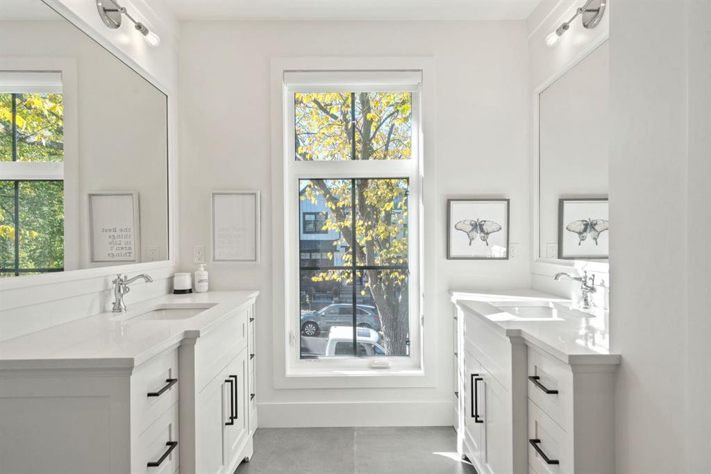 This one is SPECIAL by design. Custom-built by respected Braemyn Homes & designed by Dean Thomas, this rare SW Calgary semi-detached home offers true SINGLE-family living. Intentionally designed WITHOUT a legal suite, allowing the layout, light & finishes to serve the homeowner - not a rental configuration. The result = larger living spaces, better flow & a more cohesive design throughout. Set on a quiet elm tree–lined street, the timeless brownstone exterior features full-size BRICK, concrete lintels & striking Gemstone lighting that creates a beautiful presence at night. Walk up your extra wide concrete walkaway, while you appreciate the beautiful, low maintenance landscaping out front. Inside, light flows East to West across white oak hardwood floors, high ceilings and an open-concept layout ideal for both entertaining and everyday living. Amazing dining space for every day meals or special occasions. Entertain family or enjoy cozy nights at home in front of gas fireplace. The chef’s kitchen showcases Monogram appliances, a 48” gas/electric range with pot filler, oversized quartz island & exceptional storage. Designed at the back of the home, it connects seamlessly to the outdoor living space for year-round enjoyment. The outdoor space truly defines this home. Designed as a private, European-style courtyard, it offers approximately 550 sq ft of premium deck space plus a 300 sq ft stone patio surrounded by mature trees, vines & greenery. A brick gas fireplace anchors the space, while a motorized Suncoast louvered pergola with heater provides sun, warmth & rain protection. With motorized wind screens & thoughtful design, this is a 3 season outdoor living space that delivers privacy, comfort & year-round enjoyment! Custom lighting options & window treatments throughout. Lovely designer 2 piece bath & mud room complete this floor. Head up your HW stairs to second level & find TWO amazing suites - both w/large bedroom areas, beautiful ensuites & closet spaces! One stands out w/heated ensuite floors, dual sinks, stand alone tub & HUGE shower. Laundry w/sink & direct hamper access to walk-in closet! Third level provides flexible space for relaxing, working or entertaining - easily convertible to THIRD bedroom or full-floor primary retreat - plus a LARGE private balcony with city views & future hot tub rough-in. A fully finished basement adds another bedroom, fifth bathroom, flex space, wine room & abundant storage. Additional highlights include a double finished, insulated garage w/epoxy floors, low-maintenance landscaping & a school at the end of the block! Steps to Marda Loop, LRT, Westhills & the revitalized 37th Street corridor w/bike paths to North Glenmore Park & downtown. Get downtown or out of town quickly. A thoughtfully designed lifestyle home - that truly stands apart from others. It's impossible to describe this incredible home to its full potential - book your showing today to view it in person! List of upgrades in photo carousel.