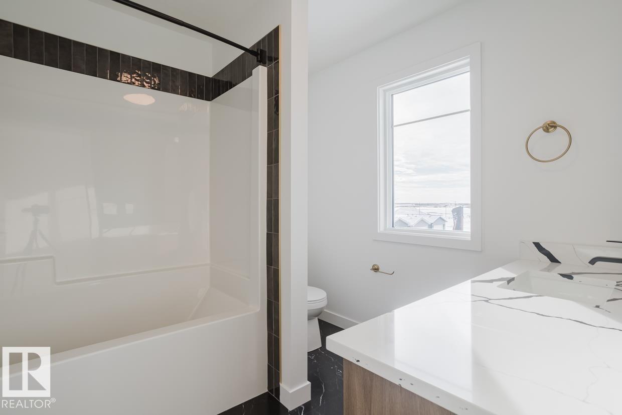Nestled in a tranquil community surrounded by nature and trails, this stunning 3-bedroom, 2.5-bathroom duplex seamlessly blends style and functionality. The main floor boasts 9' ceilings and a convenient half bath, perfect for guests. The beautifully designed kitchen is a highlight, featuring 39" upgraded cabinets, quartz countertops, and a waterline to the fridge. Upstairs features a convenient laundry room, full 4-piece bathroom, and 3 generously sized bedrooms. The luxurious primary suite offers a walk-in closet and ensuite. The separate side entrance and legal suite rough-ins offer flexibility for additional income or extended family. Other features include FULL LANDSCAPING, a double attached garage, $3k appliance allowance, unfinished basement with painted floors, high-efficiency furnace, and triple-pane windows. Buy with confidence. Built by Rohit. UNDER CONSTRUCTION! Photos may differ from actual property. Appliances NOT included.
