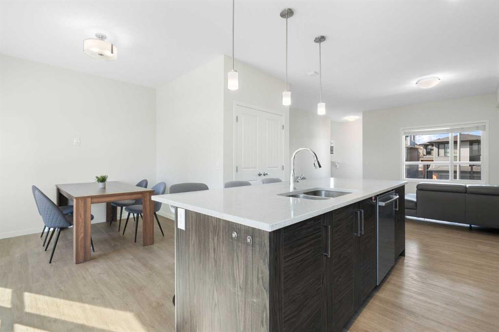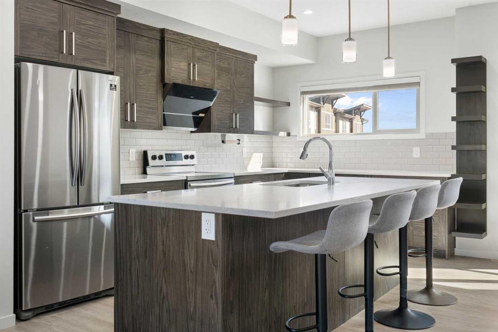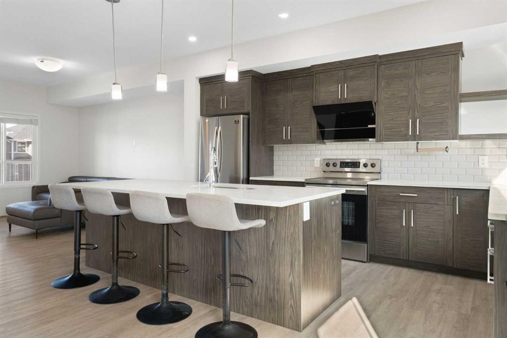 Secure this premium, move-in-ready 3-bedroom townhome in the heart of Harvest Hills! Built by multi-year “Builder of Choice” winner Cedarglen Living, this well maintained 1,700 sq. ft. home offers the perfect blend of award-winning design and modern upgrades. Step into a spacious foyer featuring a double attached side-by-side garage and a versatile flex room—complete with a stylish barn door—making it the ideal private gym or home office. The main level boasts 9-foot ceilings and durable luxury vinyl plank flooring throughout a seamless open-concept layout. The chef’s kitchen is built for hosting, fully equipped with full-height cabinetry, quartz countertops, a central island, and stainless steel appliances. While many townhomes struggle with summer heat, you will enjoy year-round comfort with full central air conditioning. The upper level offers a primary suite with a walk-in closet and a double-vanity ensuite, alongside two additional bedrooms and a dedicated laundry area with side-by-side machines for maximum utility. Located minutes from Deerfoot Trail, YYC Airport, schools, and parks, this no-carpet, premium-spec home won’t last. Contact your favorite Realtor to book a showing today!