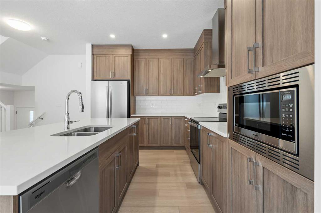 NEW BUILD DETACHED 5-LEVEL SPLIT | DOUBLE ATTACHED GARAGE | 3 BED / 2.5 BATH / 2075 SQ FT ABOVE GRADE | WEST-FACING BACKYARD | IMMEDIATE POSSESSION – Welcome to this beautifully designed detached home by Minto Communities, an award-winning Canadian builder with over 70 years of experience, located in Wildflower, proudly voted Best New Community in Canada (2025). This vibrant, master-planned community in Airdrie is designed with lifestyle and connection in mind, offering an exciting mix of home styles in a neighbourhood built to grow with you. Finished with modern details throughout, this impressive 5-level split offers a unique and functional layout ideal for growing families and those who love to entertain. The main living level features a beautiful kitchen complete with a large central island, stainless steel appliances, and abundant cabinetry for storage. Positioned at the back of the home, the dining room provides direct access to the west-facing backyard—perfect for enjoying sunny afternoons and evening gatherings. Just beside the dining room is the comfortable living room, creating a seamless and open space for everyday living and entertaining. A convenient half bathroom completes this level. One level up is your private primary retreat, featuring a spacious bedroom with a large walk-in closet and a well-appointed 4-piece ensuite bathroom. The next level offers a generous bonus room or loft area, providing a flexible space ideal for relaxing, working from home, or creating a family entertainment zone. This level also includes two well-sized bedrooms, a full 4-piece bathroom, and a conveniently located dedicated laundry room. On the lower level, the welcoming foyer provides access to the front porch and direct entry into the spacious double attached garage, offering everyday convenience and additional storage options. The undeveloped basement is expansive and provides even more opportunity to customize and expand your living space to suit your needs. Residents of Wildflower enjoy exclusive access to The Hillside Hub, a standout amenity centre featuring Airdrie’s first outdoor pool, a hot tub, an open-air sports court, and a variety of shared indoor and outdoor spaces designed for gathering, recreation, or quiet retreat. With nearby parks, pathways, amenities, and easy access to major routes, Wildflower delivers a truly well-rounded lifestyle. Combining award-winning community planning, modern design, and immediate possession, this is an outstanding opportunity to own a stylish new home in one of Canada’s most celebrated communities. Don’t miss your chance to make Wildflower home. Book your visit today!