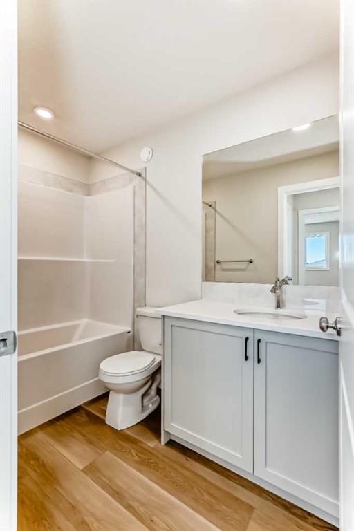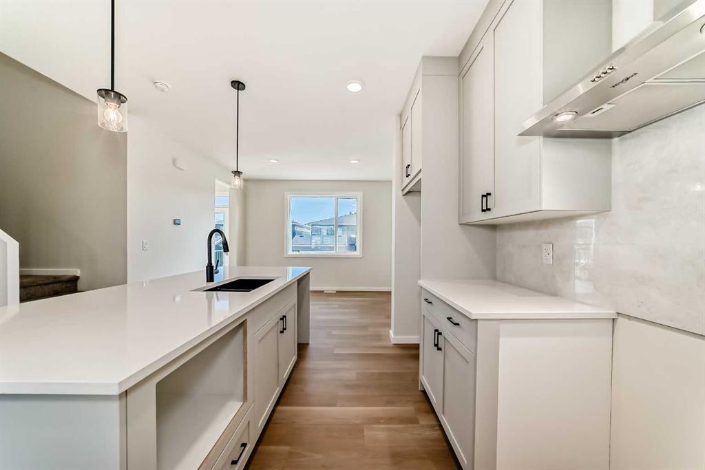 THE BEST PART OF MOVING INTO A BRAND-NEW COMMUNITY ISN’T THE “NEW.” IT’S THE BLANK SPACE. Rangeview Springs is still early in its story, which means you get the rare combination of a finished home and a neighbourhood that’s actively taking shape around you—PATHWAYS, PONDS, FUTURE PARKS, and a plan designed around connected streetscapes rather than cookie-cutter grids. You’re stepping into the growth curve at exactly the right time. Inside, the main floor sets a confident tone with WIDE-PLANK LVP in a warm brown tone, soft grey cabinetry, matte black hardware, and crisp White Rock quartz. The kitchen feels intentionally grounded: full-height tile backsplash, 42" uppers, BUILT-IN MICROWAVE, CHIMNEY HOODFAN, and an eating area that has room to breathe. The living room centres around a clean ELECTRIC FIREPLACE with a raised ledge—giving the room a focal point without overwhelming the space. Natural light moves well through the main floor thanks to the open sightlines and the way the plan keeps circulation routes logical rather than forced. Upstairs, the layout is refreshingly normal in the best possible way: three bedrooms, laundry where it belongs, and two well-finished bathrooms. The master gets a BRIGHT WALK-IN CLOSET with its own window, plus a streamlined 3-piece ensuite with a 60" SHOWER and classic wall tile. The secondary bedrooms are easy to furnish—no strange jogs, angles, or unusable corners. The lower level is a major value piece here. You get 9' FOUNDATION WALLS, a separate side entry, bathroom rough-in, BAR-SINK ROUGH-IN, LAUNDRY ROUGH-IN, and future-ready utilities that most new builds don’t include at this price point: an UPGRADED 80-GALLON HOT WATER TANK, 200-AMP ELECTRICAL PANEL, and a solar conduit already in place. It’s a basement designed for options, not limitations. If you want a new build that’s finished, thoughtfully designed, and positioned in a community that’s only getting better from here, THIS ONE IS ABSOLUTELY WORTH SEEING IN PERSON. • PLEASE NOTE: Photos are of a DIFFERENT Spec Home of the same model – fit and finish may differ. Interior selections and floorplans shown in photos.