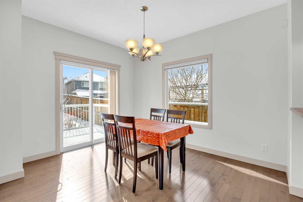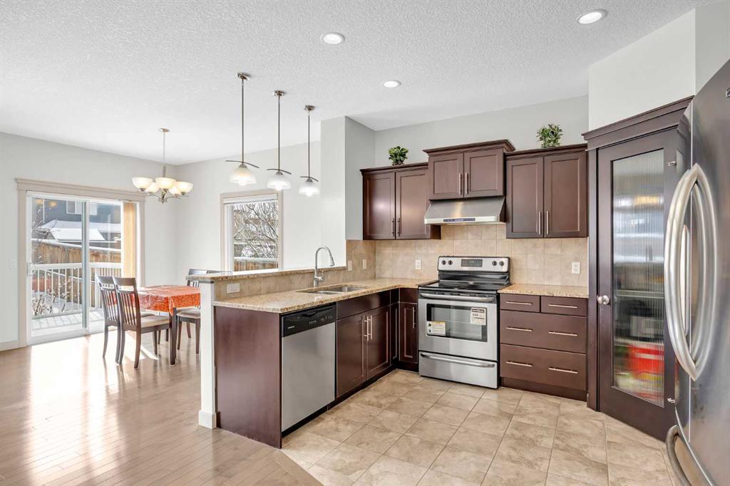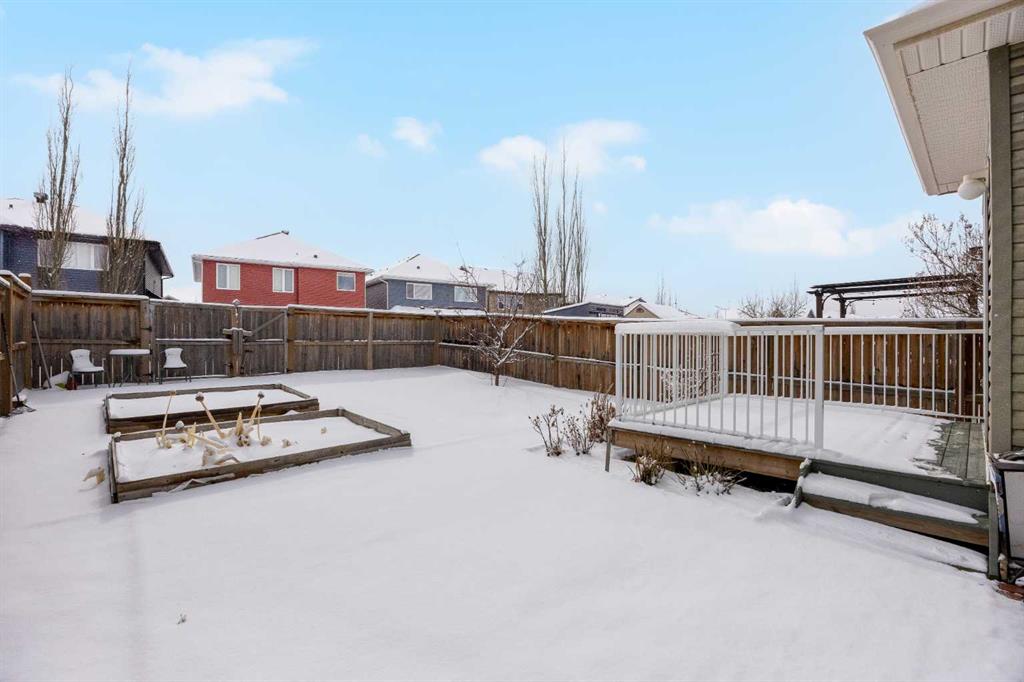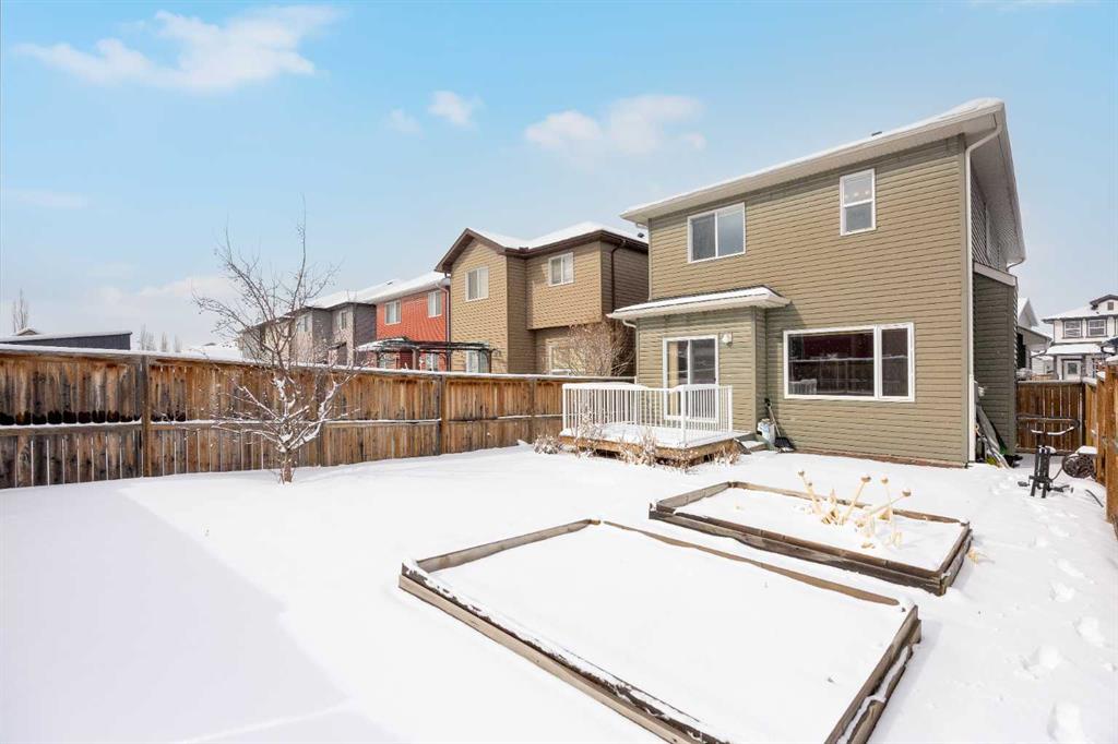 Don’t miss out on this like NEW, incredibly well taken care of 3 bedroom, 2.5 bath home in Evanston. Offering just under 1,700 square feet of comfortable and family friendly living space. Featuring 9 foot ceilings throughout the main floor, basement, and upstairs bonus room, the home feels bright, open, and spacious! The main level has hardwood flooring throughout with ceramic tile in the kitchen, laundry and entrance. The south facing dining area and living room are filled with natural light, the open living room has a cozy gas fireplace, perfect for relaxing on the colder nights. The kitchen is complete with stainless steel appliances, dark wood cabinetry, and granite countertops. The perfect size for cooking with plenty of storage for groceries, and cookware. Upstairs, the primary bedroom offers a walk in closet and private ensuite. The second bedroom is spacious and has it's own walk in closet and the third bedroom is bright lit with a standard closet. The two bedrooms share a full bathroom situated between the two, making the layout perfect for parents with kids or working adults that need an extra space for an office. The home is equipped with air conditioning to keep you nice and cool throughout the summer. Outside is a large south facing backyard featuring a deck, brick patio, garden bed, and open space. Additional highlights include an attached double garage with high 11 foot ceilings, recent upgrades including a new roof, gutters, and siding on two exterior walls (completed in 2025). Located in a vibrant, family friendly community with green spaces, walking paths, and playgrounds, this home is just 5 minutes from major amenities including Costco, T&T, Walmart, H-Mart, Home Depot, Canadian Tire, Superstore, restaurants, and shops. The new Evanston Heights School is set to open in 2026, adding even more convenience to families for this fantastic location.