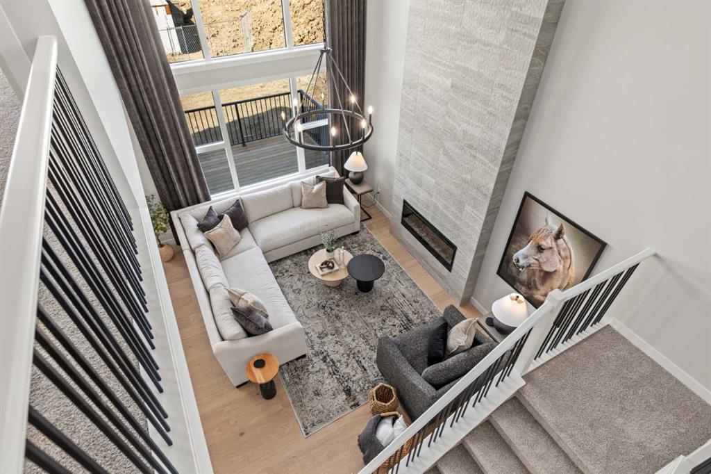 Backing onto the pathway in Rivercrest — welcome to the Cambridge 26 by Trico Homes. Set on a corner lot, this home offers extra space and privacy behind you, along with a natural spot for evening walks or bike rides right outside your door. Inside, the layout is designed for everyday living. A flexible main-floor room works well as a home office, playroom, or quiet space to reset during the day. The main living area opens up beautifully, with a kitchen that offers plenty of storage and a large island that naturally becomes the place everyone gathers — from quick breakfasts to catching up at the end of the day. The great room feels bright and open with its soaring open-to-below ceiling, large windows, and an electric fireplace that adds warmth. From the dining area, step out onto the back deck — an easy extension of your living space for summer BBQs, morning coffee, or keeping an eye on the kids playing outside. Upstairs, a central bonus room creates that second living space every family uses — for movie nights, homework, or winding down. Three bedrooms are tucked around it, including a primary suite with a 5-piece ensuite, soaker tub, glass and tile shower, and walk-in closet. A full laundry room on this level keeps daily routines simple. The 9’ foundation gives you a basement that’s ready when you are, whether for future development or extra storage. Living in Rivercrest offers that quieter, boutique feel while still being minutes from schools, shopping, and everything Cochrane has to offer, with easy access into Calgary when needed. Photos are representative from a showhome. Reach out for details on this home. Call your Realtor and book your showing today! *Photos are representative of a showhome with a similar layout. Selections for this home will be different. Please inquire for more details.*