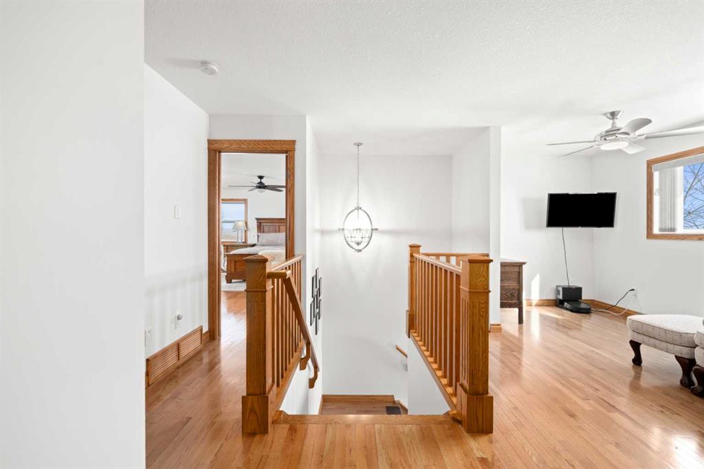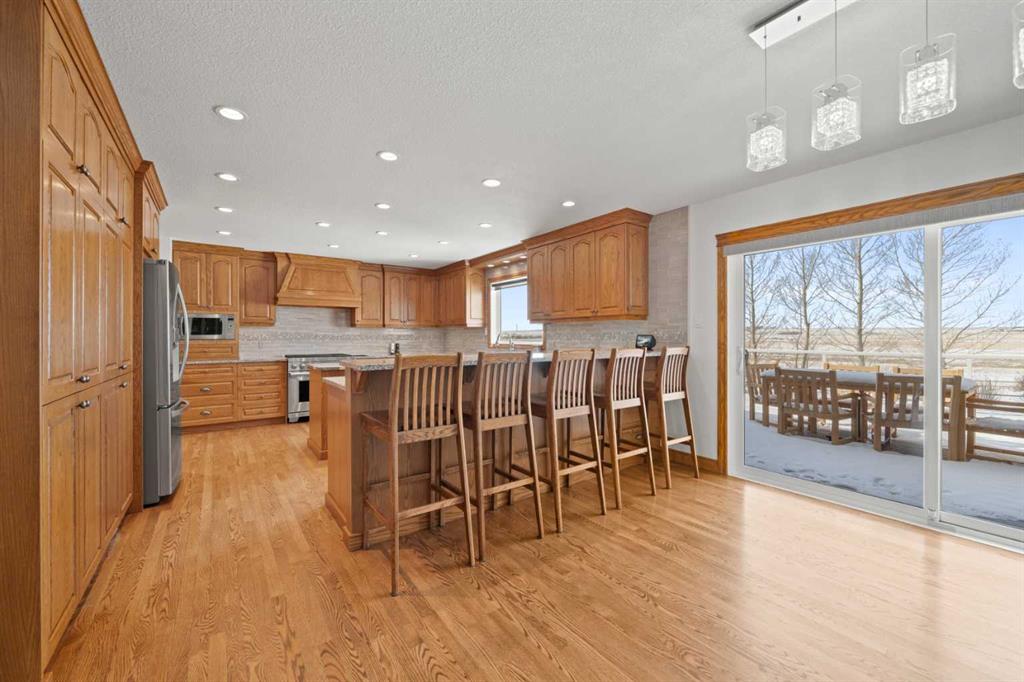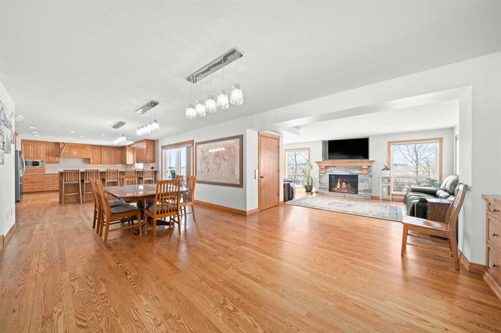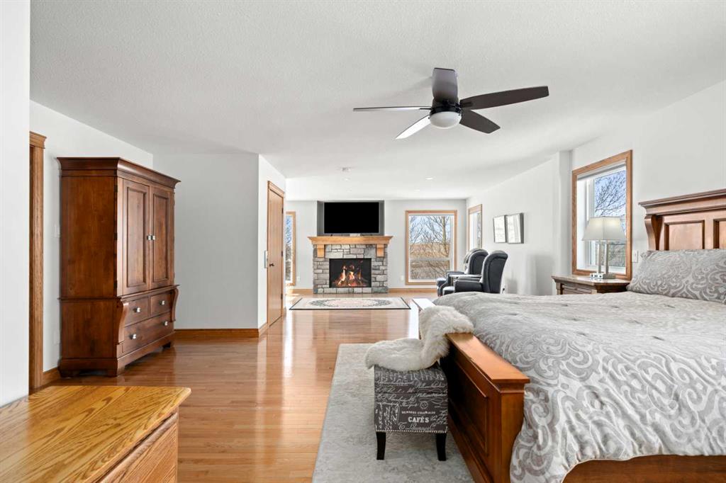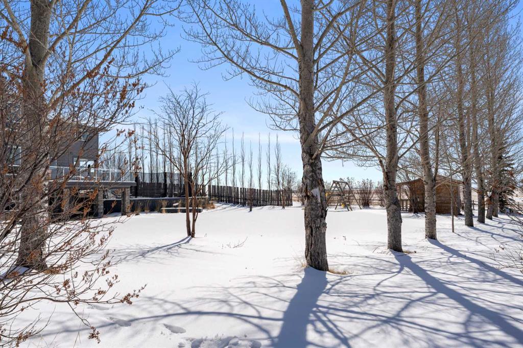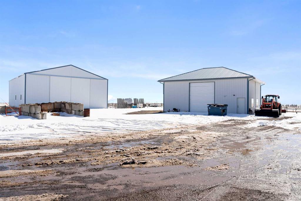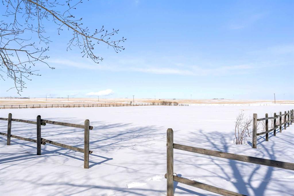 Excellent opportunity to own this well developed 150 acre rural property located in the heart of Central Alberta. The 19 acre yard site consists of a 5,520 sq ft residence, outbuildings and pasture and the remaining 131 acres is hay land. This property is full equipped for rural living and/or business use. A controlled gate provides access to the lane that leads to the residence. You will be impressed by the size of the home along with its two sets of triple car garages (one attached and one detached). This home offers space and comfort for everyone and beautiful views from almost every window. The functional main level offers a mudroom, ½ bath and laundry room off the upgraded kitchen that features premium appliances with a Wolf 36” gas stove with electric oven, a full wall pantry, granite countertops. Access to the sunroom, an open dining area, living room with fireplace, flex room, office and elevator to upper and lower levels complete the main floor. Upstairs, you will find the primary retreat that you will never want to leave. The ensuite has a steam shower and the bedroom includes a sitting area with fireplace and windows looking out over the countryside. There is another 4 bedrooms, a full bathroom and loft area on the upper level as well. The lower level is a fully developed walkout with a living room area with fireplace, multi-purpose room, 1-bedroom, full bathroom, a gym area, a cold room, storage, in-floor heating, 2 high-efficiency furnaces, and an RO water system. The entire home can be controlled by your phone. Thoughtful design has gone into the outside area around the home; large cement pad at the front of the house that leads to front verandah, two back decks with composite decking, paving stones around custom fire pit, wind screens, covered barbeque area, storage shed, large garden space. Outbuildings include a 42’ X 60’ pole shed, 40’ X 30’ shop, 2 van sheds, livestock waterers, septic tank and field just west of shop (never used). Reliable well water services the property. Many quality extras have gone into the home and outbuildings. Call for further information and details. Located 5 kms east of Crossfield, amenities and access to the QE2 highway are only 5 minutes away. The Calgary International Airport and Downtown Calgary are approximately 25 minutes. If you are looking for country living with extensive indoor and outdoor space, wanting to expand your existing farm operations or to own Alberta property with lots of potential, this is the one to see.