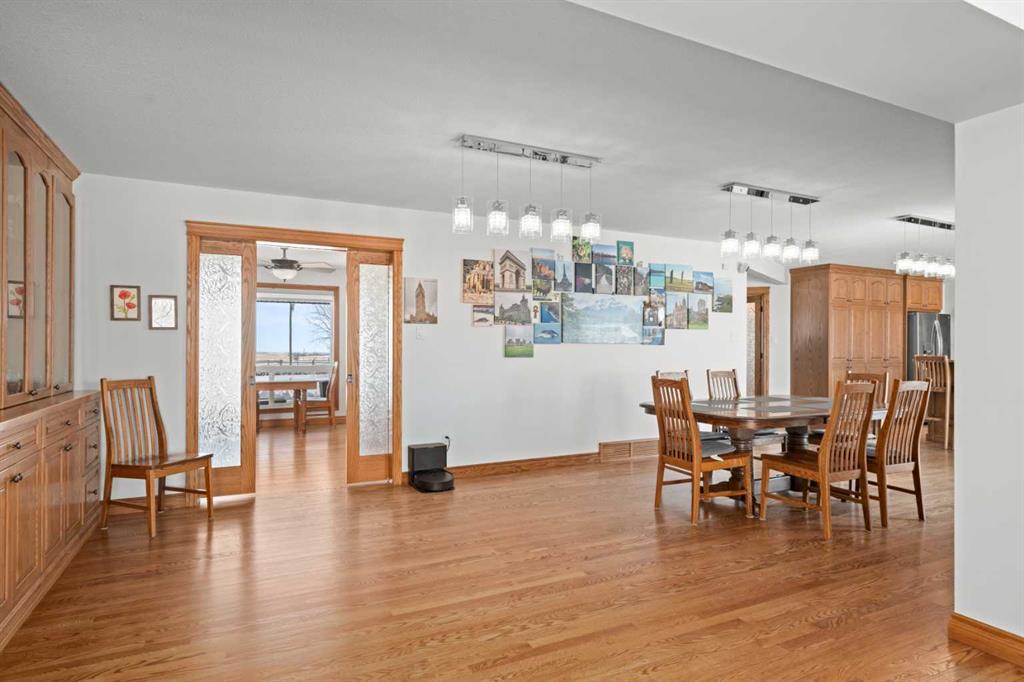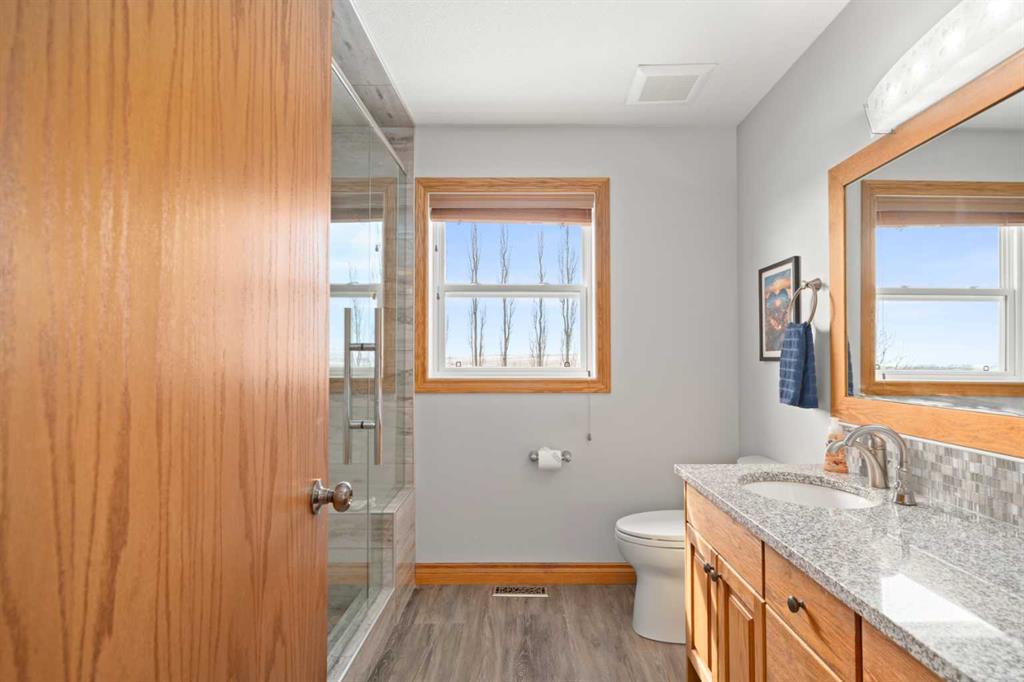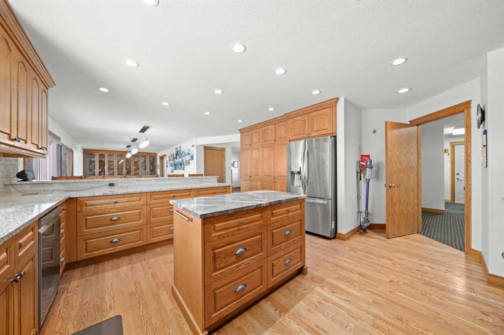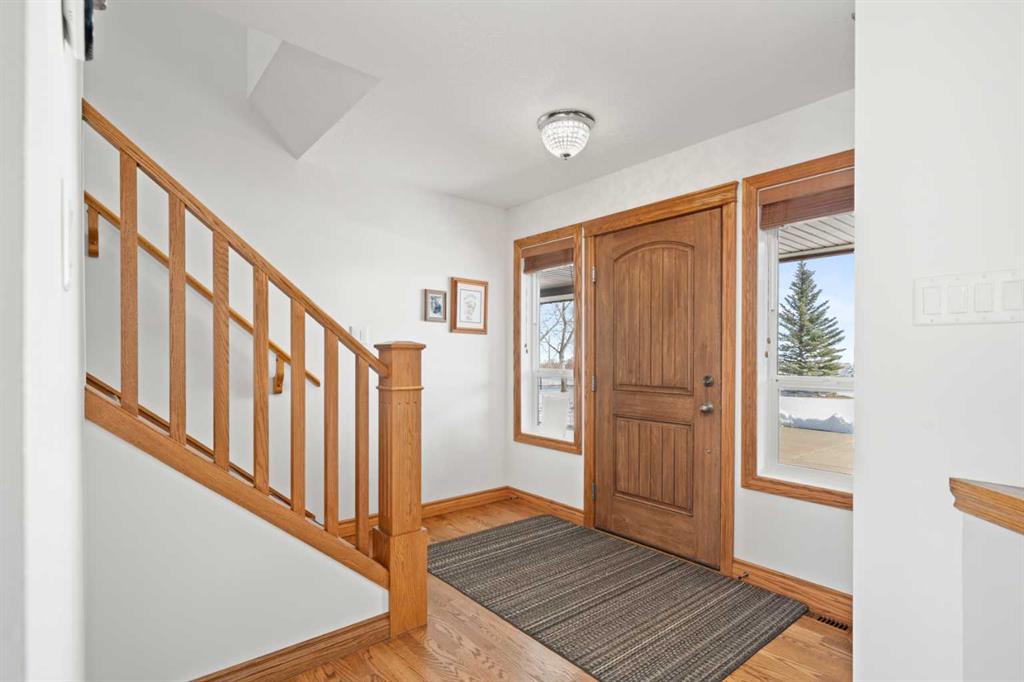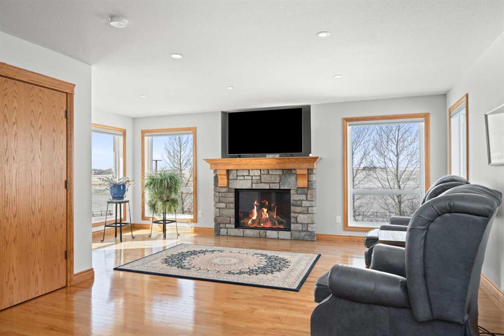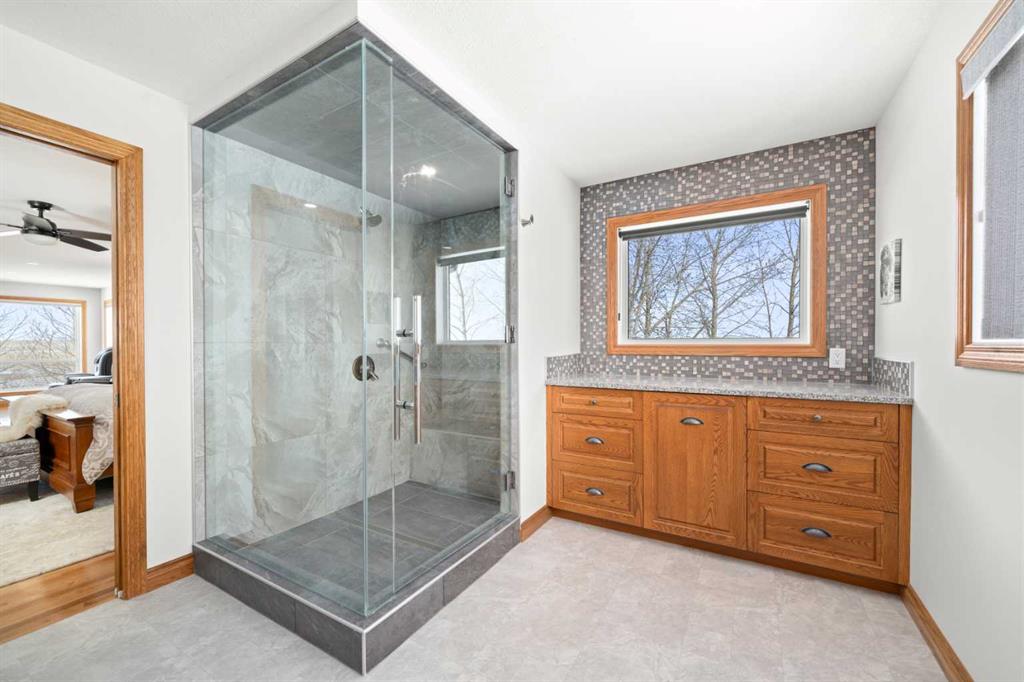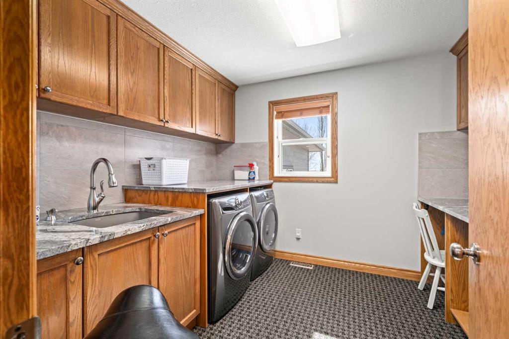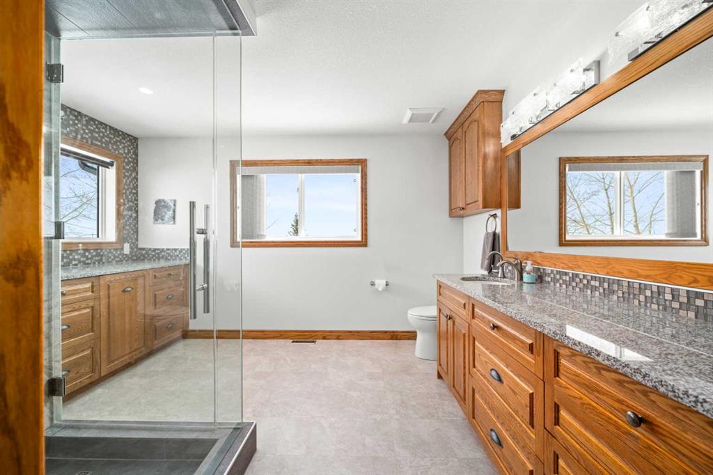 Excellent opportunity to own this well developed 150 acre rural property located in the heart of Central Alberta. The 19 acre yard site consists of a 5,520 sq ft residence, outbuildings and pasture and the remaining 131 acres is hay land. This property is full equipped for rural living and/or business use. A controlled gate provides access to the lane that leads to the residence. You will be impressed by the size of the home along with its two sets of triple car garages (one attached and one detached). This home offers space and comfort for everyone and beautiful views from almost every window. The functional main level offers a mudroom, ½ bath and laundry room off the upgraded kitchen that features premium appliances with a Wolf 36” gas stove with electric oven, a full wall pantry, granite countertops. Access to the sunroom, an open dining area, living room with fireplace, flex room, office and elevator to upper and lower levels complete the main floor. Upstairs, you will find the primary retreat that you will never want to leave. The ensuite has a steam shower and the bedroom includes a sitting area with fireplace and windows looking out over the countryside. There is another 4 bedrooms, a full bathroom and loft area on the upper level as well. The lower level is a fully developed walkout with a living room area with fireplace, multi-purpose room, 1-bedroom, full bathroom, a gym area, a cold room, storage, in-floor heating, 2 high-efficiency furnaces, and an RO water system. The entire home can be controlled by your phone. Thoughtful design has gone into the outside area around the home; large cement pad at the front of the house that leads to front verandah, two back decks with composite decking, paving stones around custom fire pit, wind screens, covered barbeque area, storage shed, large garden space. Outbuildings include a 42’ X 60’ pole shed, 40’ X 30’ shop, 2 van sheds, livestock waterers, septic tank and field just west of shop (never used). Reliable well water services the property. Many quality extras have gone into the home and outbuildings. Call for further information and details. Located 5 kms east of Crossfield, amenities and access to the QE2 highway are only 5 minutes away. The Calgary International Airport and Downtown Calgary are approximately 25 minutes. If you are looking for country living with extensive indoor and outdoor space, wanting to expand your existing farm operations or to own Alberta property with lots of potential, this is the one to see.