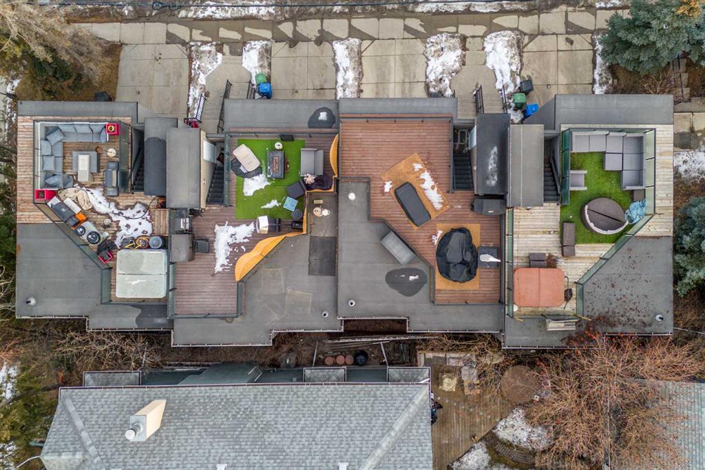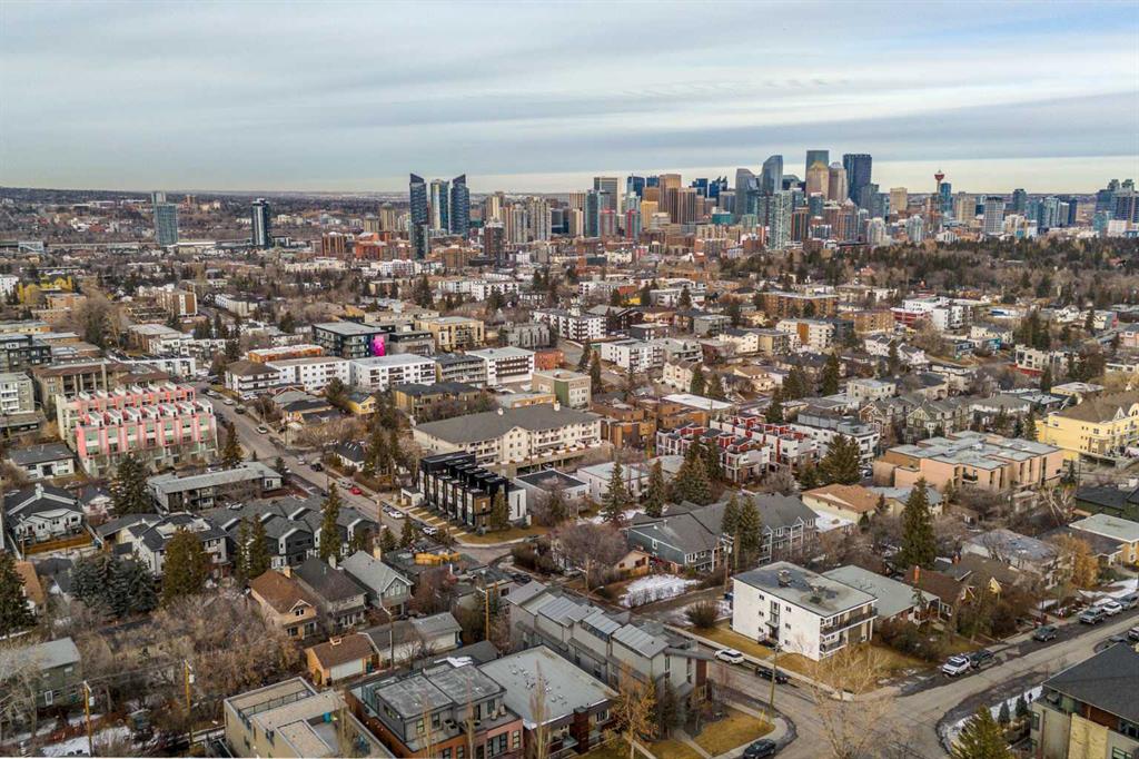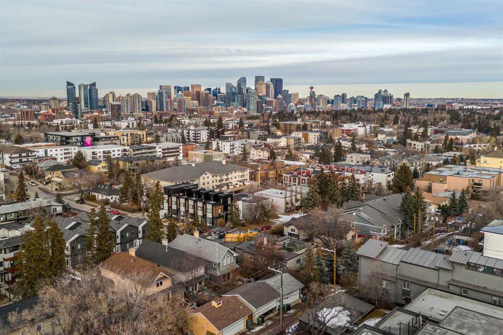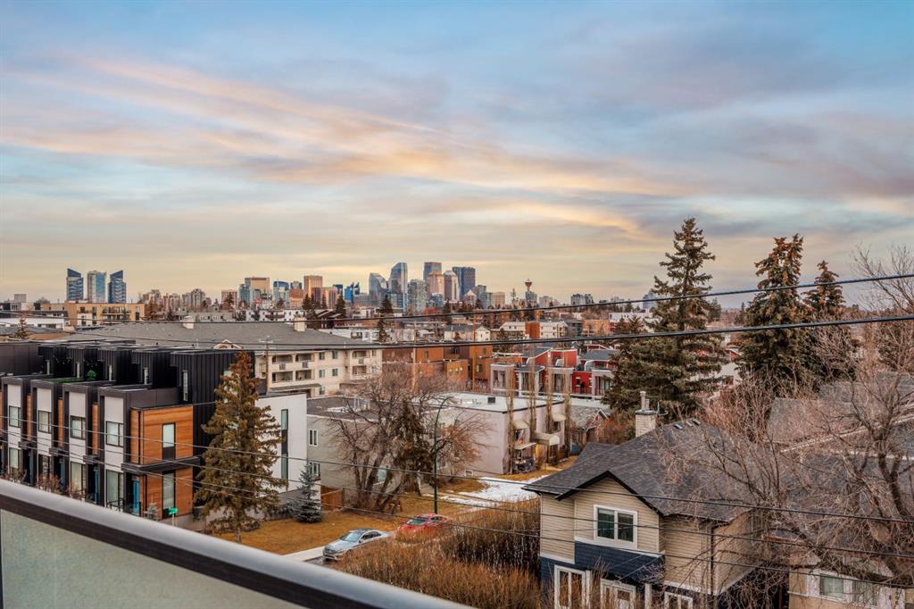 An iconic view from an unforgettable rooftop patio in the heart of Marda Loop. This 3 bedroom, 2.5 bathroom unit is walking distance to endless green spaces, local retail, and the weekly farmer's market hosted at C-Space Art Collective half a block away. With tons of versatile space across 3 levels, this east facing home includes gleaming hardwood flooring, 2 gas fireplaces, and expansive windows that illuminate the entire main floor living area with natural light. The fully stocked chef's kitchen features granite countertops, stainless steel appliances, a large island prep station, and dedicated food pantry, seamlessly integrating into the open concept living room that was specially crafted for entertaining. Wake up to the most beautiful sunrises with a full panoramic view from the primary bedroom upstairs, a spacious walk-in closet with built-in organizers, and a breathtaking ensuite that includes a jetted tub and rain shower with bench. The second level also boasts an additional large bedroom with its own independent ensuite for extra comfort and privacy. Indulge in plenty of storage space throughout the home, along with a third bedroom below that can be easily converted into a flex space to fit your unique lifestyle needs. The convenient double attached insulated garage is perfect for avoiding cold Calgary winters, while the ice cold A/C is ideal for beating the summer heat. Notable recent upgrades include paint throughout, newer flooring and torch-on membrane updating to the rooftop (which is fully fit for a hot tub). Situated in a highly coveted pedestrian-oriented community, walking distance to the South Calgary Outdoor Pool, shops along 33rd Avenue, and with quick access to 17th Ave SW, 14th Street and Crowchild Trail. This is being sold as an investment property and the lovely tenant in place has a lease that expires February 2029. The current rent is $3,100 per month and tenant is responsible for own utilities.