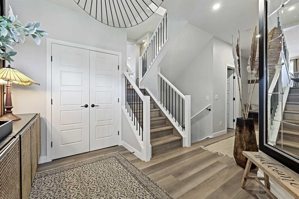 LEGACY RIDGE LOCATION | BOW RIVER VALLEY VIEWS | OVERSIZED PIE LOT | AWARD-WINNING ELLIOT 24 MODEL BY JAYMAN BUILT Thoughtfully designed and beautifully finished, this 2348+ sq. ft. executive home offers high-end specifications, premium upgrades, and a floor plan perfect for family living and entertaining. Located in the sought-after Legacy Ridge with future access to the Bow River Valley and pathways, this home is just minutes from schools, shopping, healthcare services, Blue Devil Golf Course, daycare, dog parks, transit, and more. The open-concept main floor showcases a gourmet kitchen with an oversized quartz island, pendant lighting, sleek Bosch stainless steel appliances, a walk-in pantry, and an adjacent dining area that flows seamlessly into the extended great room with a custom gas fireplace and full-tile wall detail. A private main floor den is ideal for a home office or study space. Elegant engineered hardwood floors, upgraded lighting, and tall patio doors with side windows enhance the sense of space and light. Upstairs, you’ll find a central bonus room, convenient laundry, and three bedrooms including a grand primary retreat with double-door entry, soaring ceilings, a walk-in closet, and a spa-inspired ensuite with dual vanities, a deep soaker tub, and a tiled glass shower. Other highlights include: 9’ & 11’ ceilings for an airy feel Gas line on the BBQ deck for outdoor living Luxury finishes in all bathrooms and laundry Oversized pie-shaped lot with future Bow River views Premium Jayman BUILT Quantum Performance Features: • 6 Solar Panels for energy savings • BuiltGreen Canada Certified with EnerGuide Rating • Navien tankless hot water heater • High-efficiency furnace with HRV & MERV 13 filter system • Triple-pane windows • Smart home technology (incl. Kasa light switches) • Quartz countertops throughout This home delivers a rare blend of luxury, efficiency, and location—all in one of Calgary’s most desirable new communities. Don’t miss this opportunity—call your friendly REALTOR® today to book your private viewing!