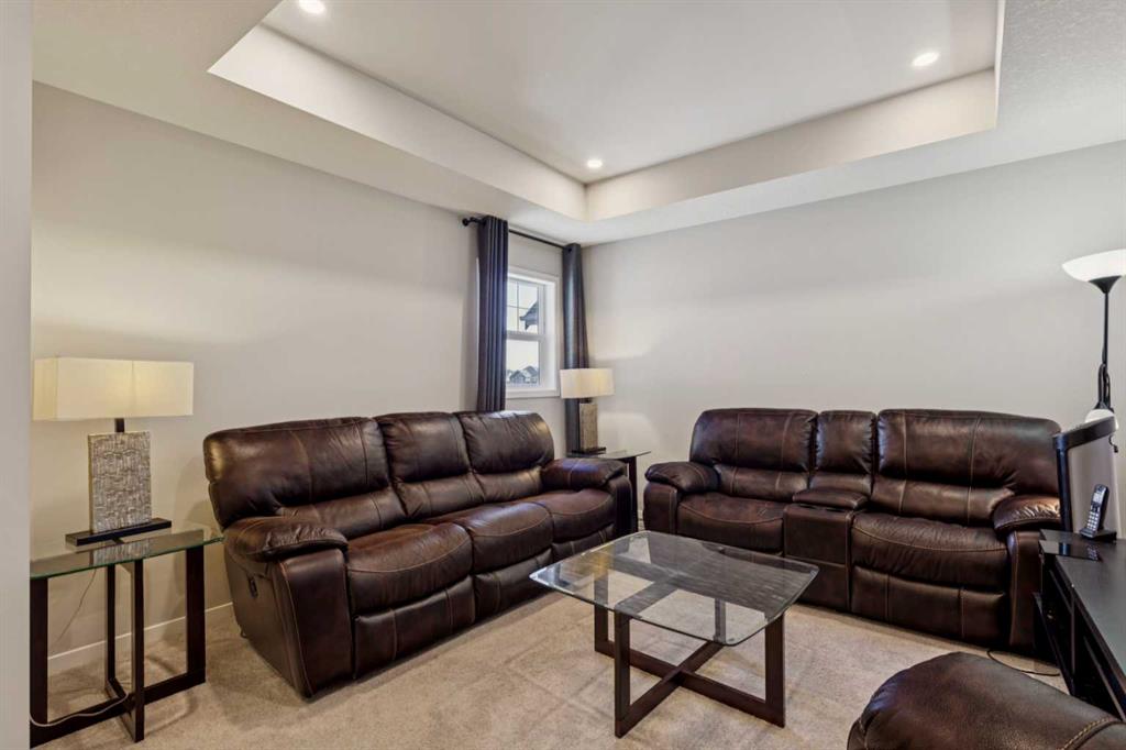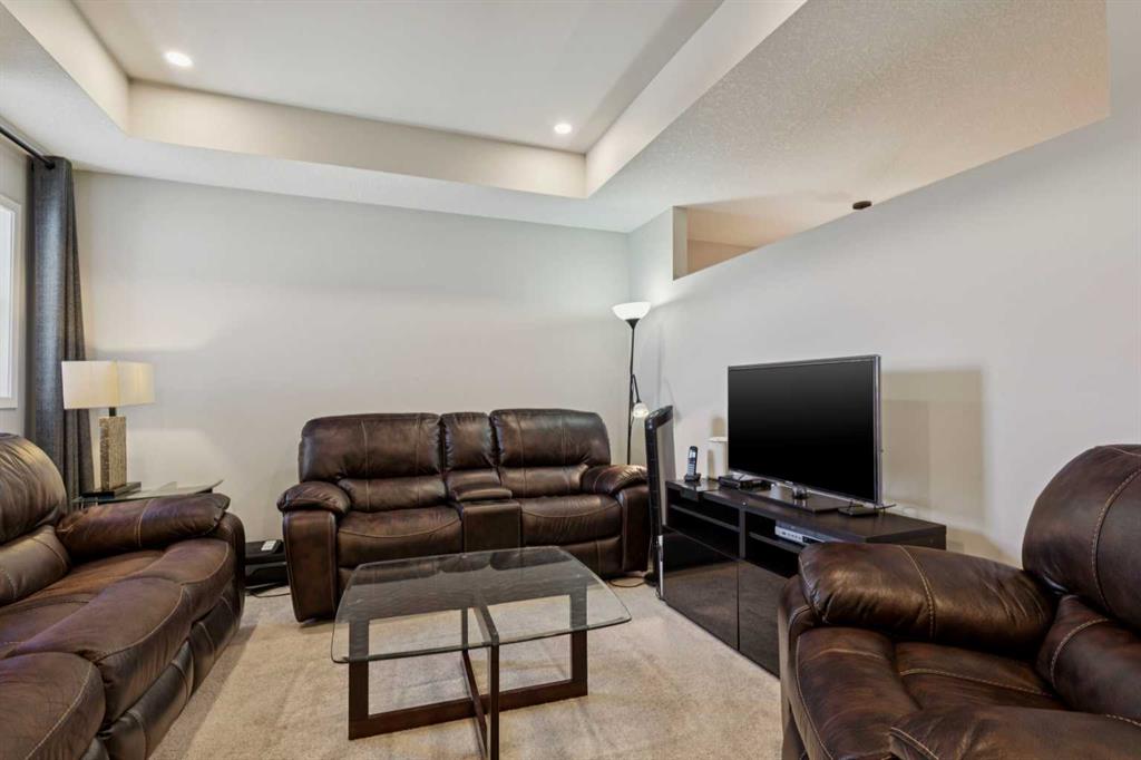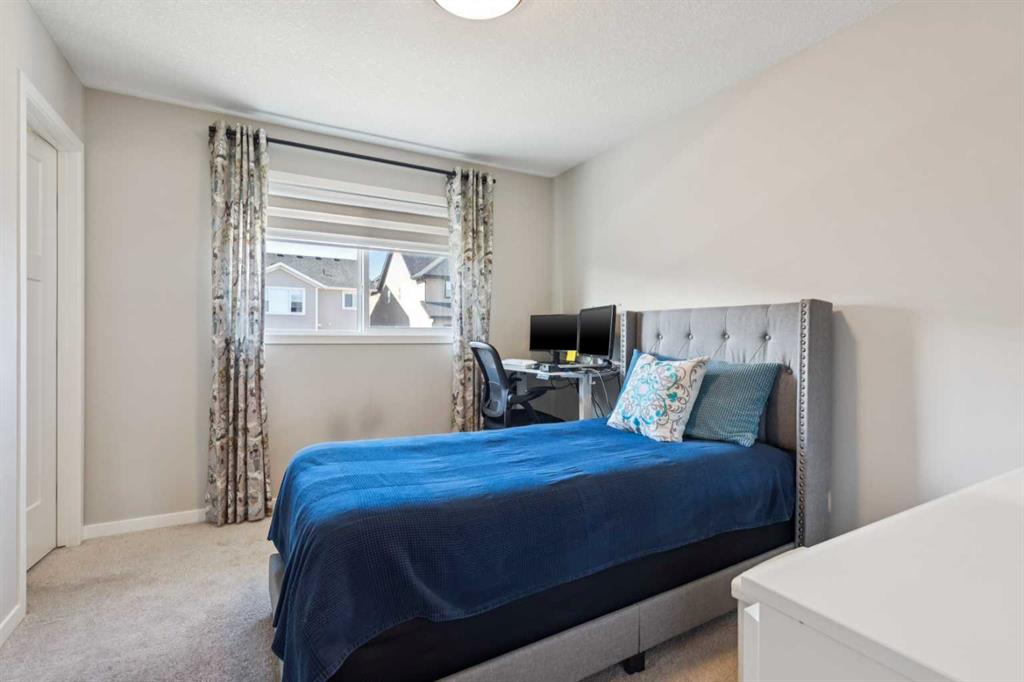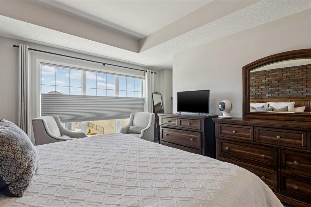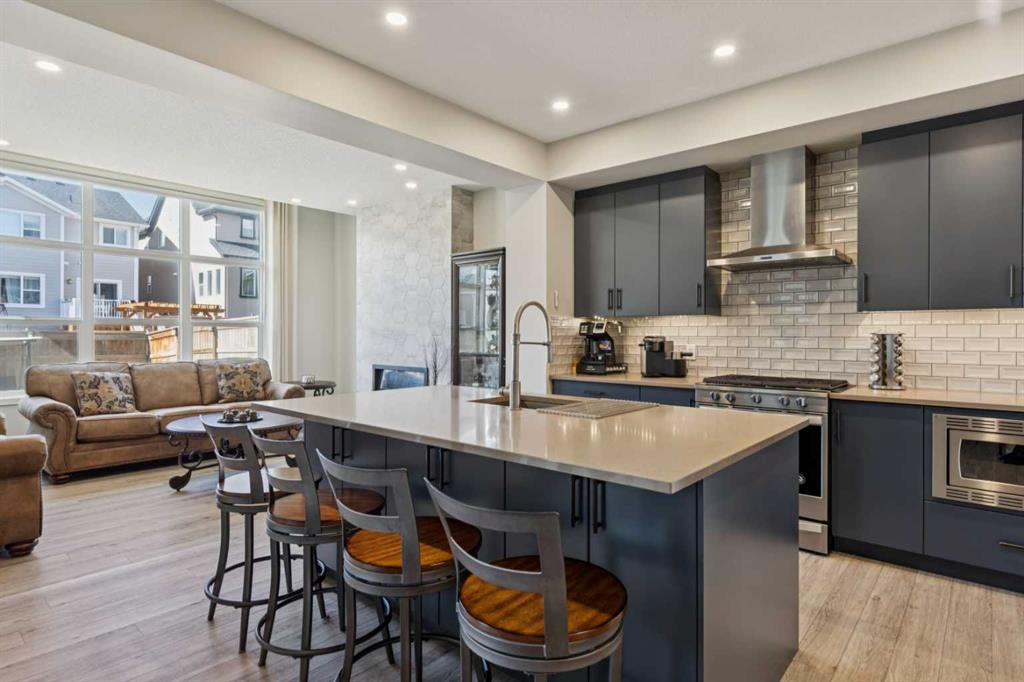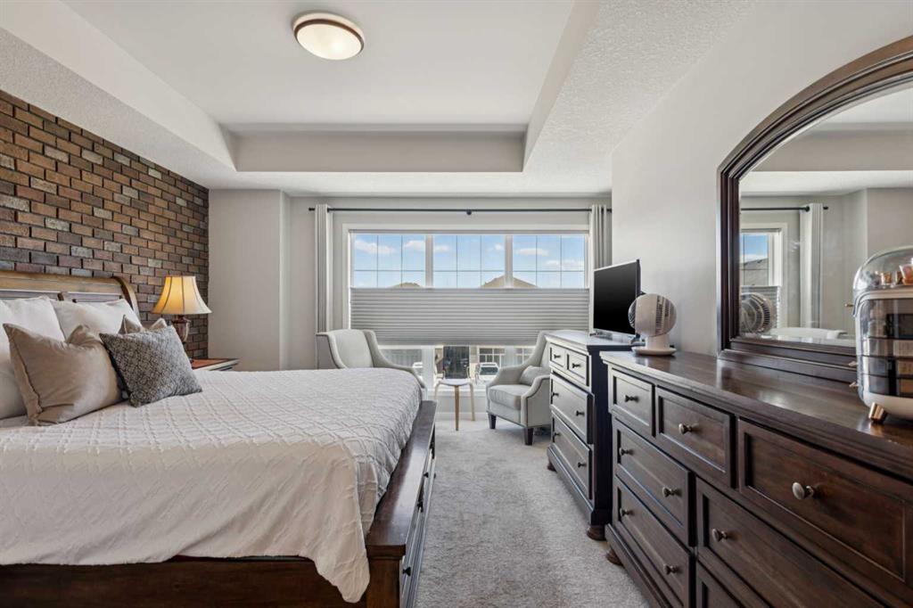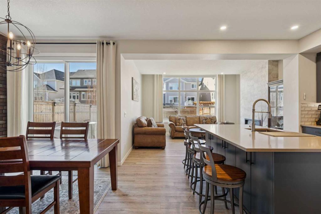 Lake living in Mahogany ~ Welcome to this beautifully maintained FORMER SHOW HOME offering over 2,160 sq ft above grade, thoughtful upgrades throughout, and an exceptional location just a short walk to Mahogany’s main beach, parks, pathways, and amenities. Designed with both comfort and functionality in mind, this move-in ready home delivers the ideal blend of style, space, and everyday convenience. Open-concept main floor with designer finishes features a spacious living area anchored by a cozy gas fireplace, oversized windows, and seamless flow into the dining space and central kitchen. The kitchen is well-appointed with quartz countertops, stainless steel appliances, gas range, pantry, upgraded cabinetry, and plenty of prep and storage space. A fully upgraded mudroom, powder room, and front attached double garage complete the main level. Upper bonus room + 3 bedroom layout offers ideal separation for families, with a generous second-floor bonus room perfect for movie nights, play space, or even to be converted into an additional bedroom. At the top of the stairs is a perfect spot for a desk area, useful for an office, or craft space; whatever you like! The spacious primary retreat includes a walk-in closet and spa-inspired 5-piece ensuite, while both secondary bedrooms are well-sized and feature walk-in closets. Convenient upper-floor laundry adds everyday practicality. Premium comfort upgrades include central A/C, dual-zone climate control, water softener, built-in humidifier, motorized blinds, smart security system with cameras, leak detection system, and LAN wiring throughout the home for fast, reliable connectivity. Fully finished backyard with privacy and function is ready for summer enjoyment with a deck featuring gas hookup, fencing, shed, rear lane access, and added privacy. Morning sunlight at the front with a warm west-facing afternoon backyard creates a bright and inviting outdoor experience throughout the day. Walking distance to beach, schools, parks, and everyday amenities makes this an outstanding opportunity to own a turnkey home in one of Calgary’s most sought-after lake communities.