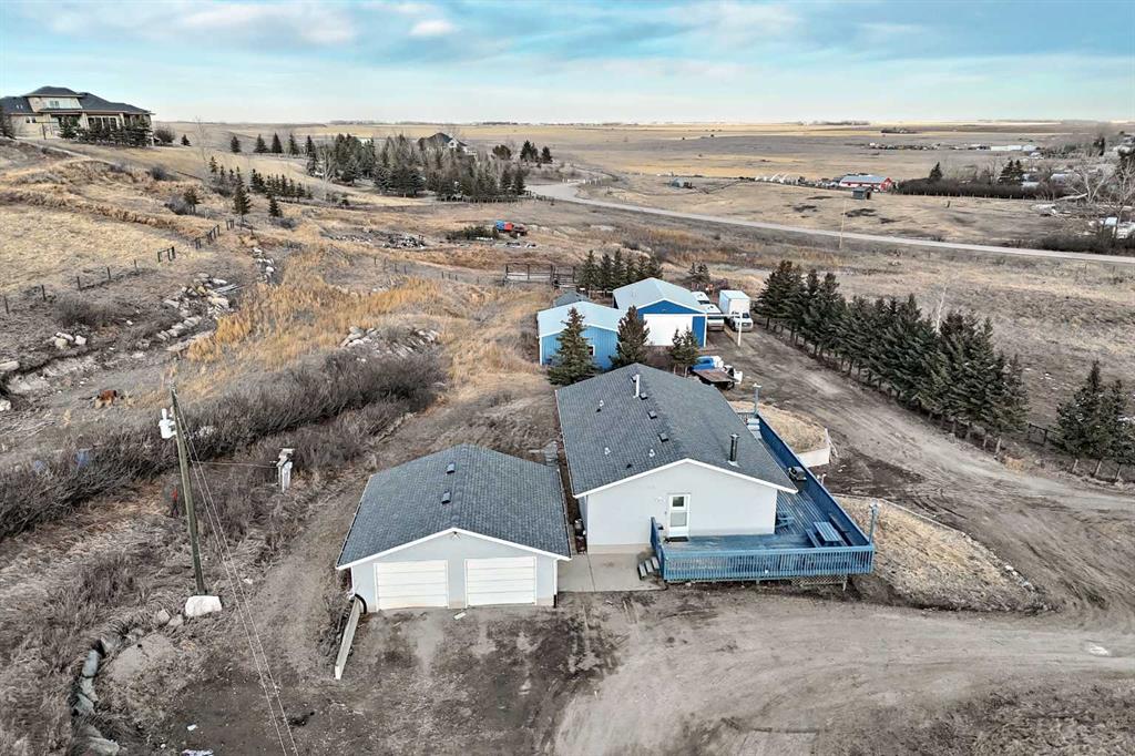 This recently renovated property, featuring over $100K in upgrades, sits on a 9.75 acre corner lot, a rare find in this highly sought after area. Perfect for investors, developers, or buyers seeking privacy and space, this acreage offers endless possibilities. Large parcels like this rarely come to market. The property includes a main dwelling, a detached 2-car garage adjacent to the home, and workshops at the rear, providing ample space for vehicles, equipment, or hobbies. Inside, you’ll find newly finished kitchens, fully renovated bathrooms, new vinyl flooring, fresh paint, and modern pot lighting throughout. The basement features a 1-bedroom illegal suite, complete with a fully equipped kitchen and renovations consistent with the main home, ideal for rental income or extended family. With R-RUR zoning, this property offers flexibility for a variety of uses. There is the potential to subdivide the property into four parcels, subject to approval from Rocky View County, making it an attractive opportunity for developers. The expansive land also provides endless opportunities for parking, storage, or outdoor projects. Location highlights: Quick access to QE2 and Deerfoot Trail for easy commuting to Calgary and Airdrie. 7 minutes to Costco, 6 minutes to CrossIron Mills, and 16 minutes to YYC Airport. Don’t miss this rare chance to own a fully updated, versatile property with space, privacy, and long term potential in one package.