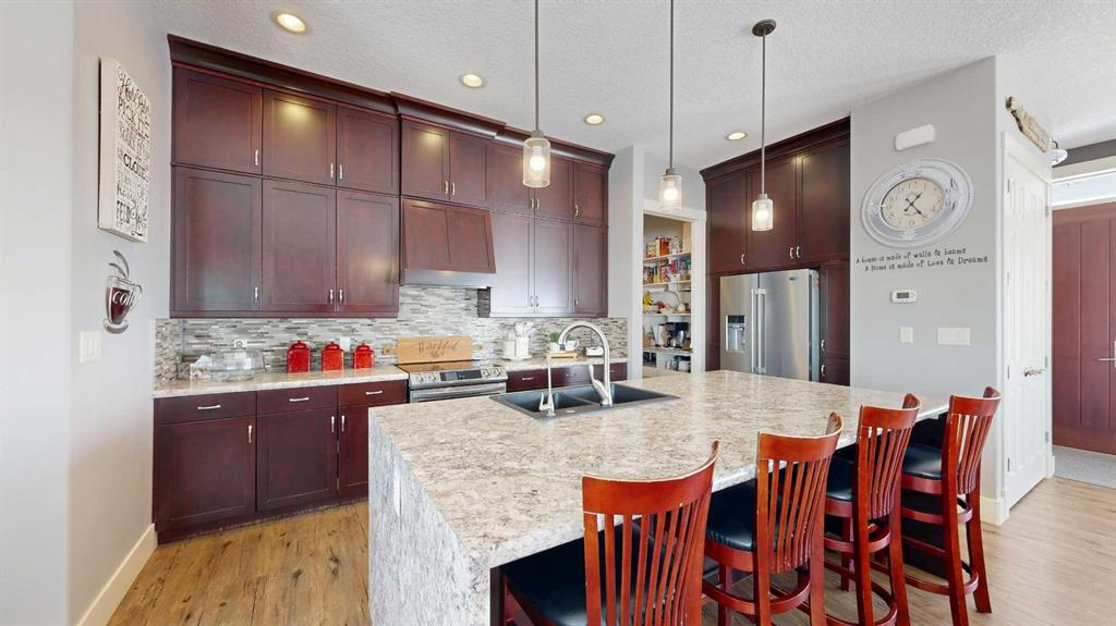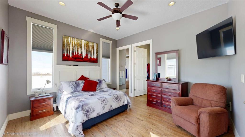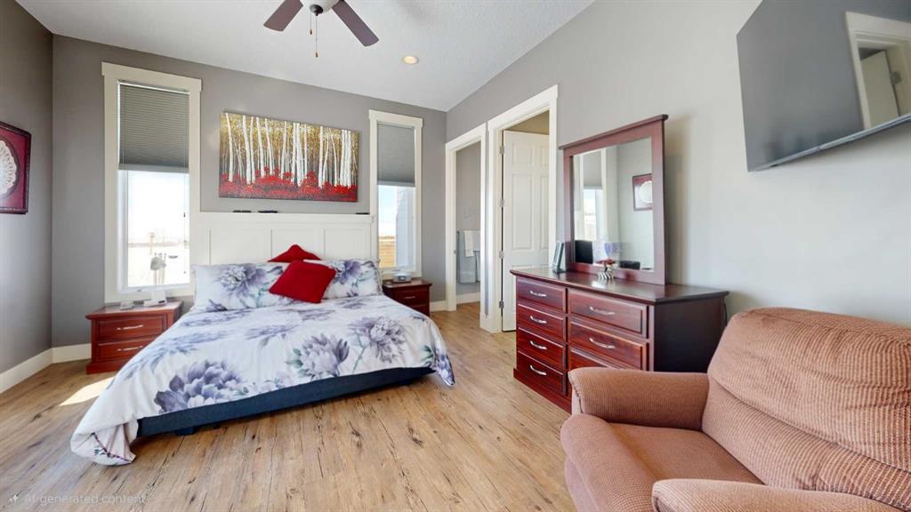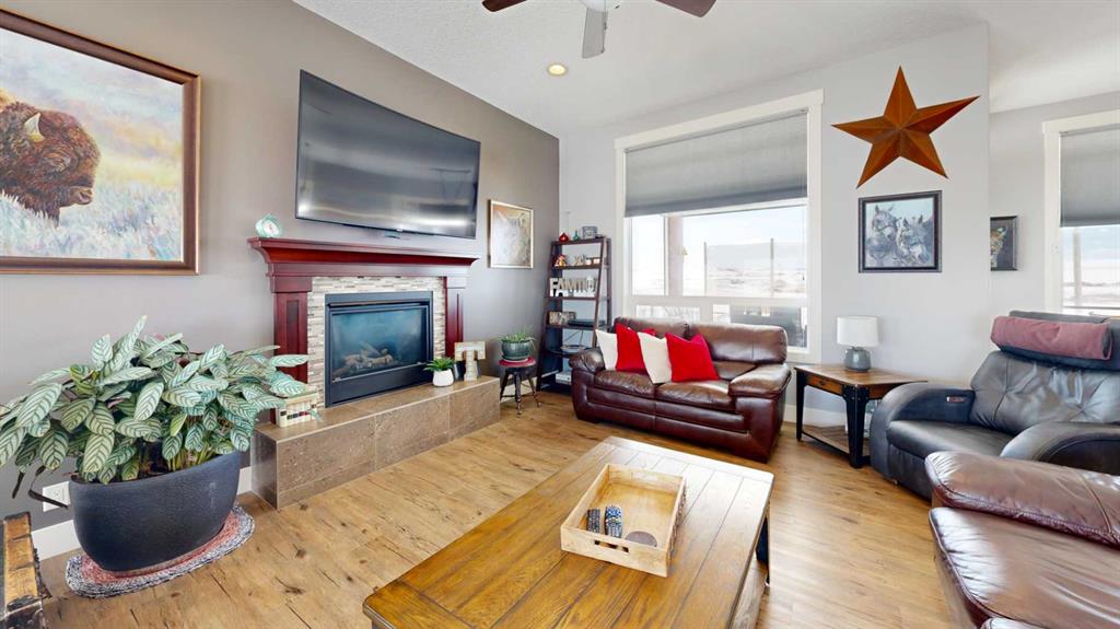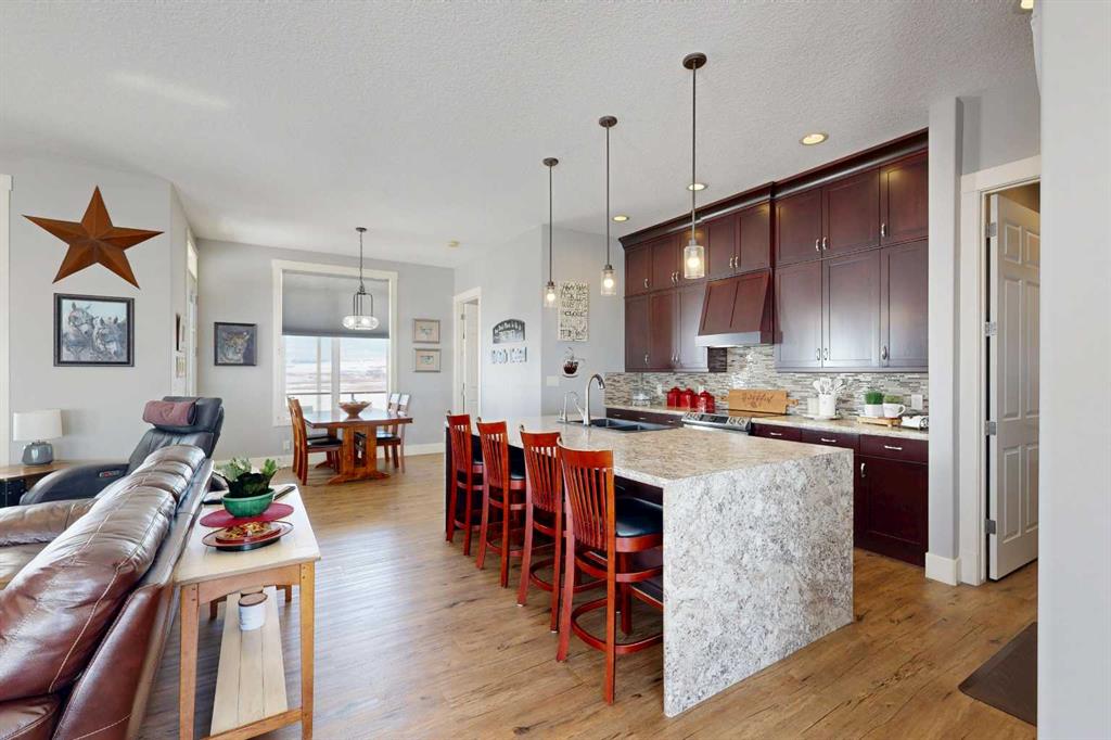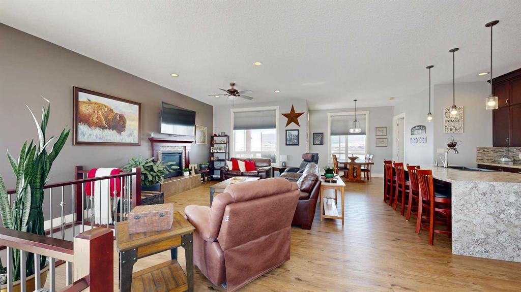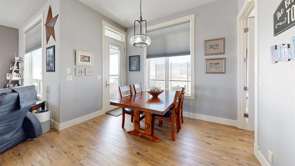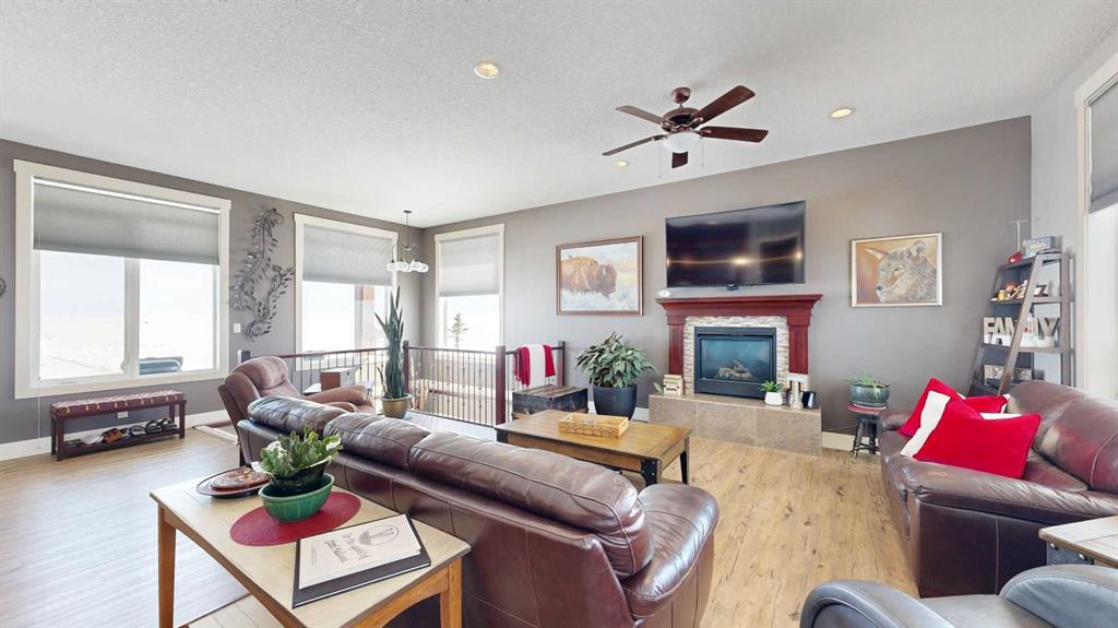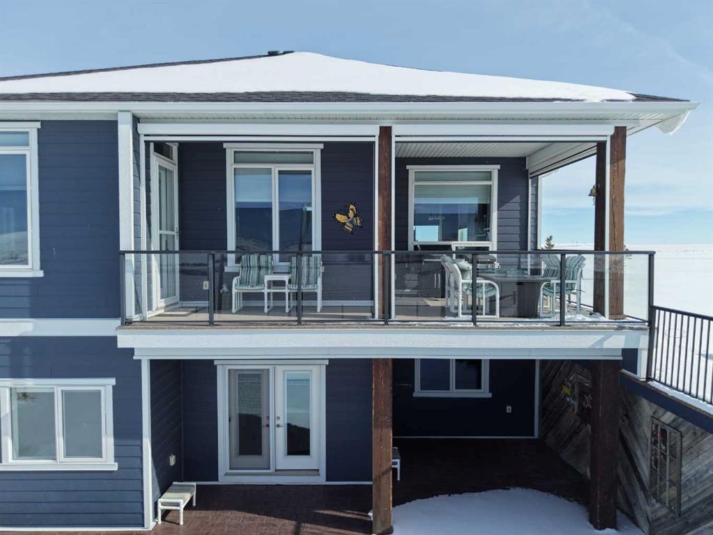 Set on 9.79 acres just northwest of Nanton, this exceptional property features a quality custom-built home designed with craftsmanship and durability in mind. This 1,557 sq. ft. residence showcases thoughtful upgrades throughout, including an ICF walkout basement, SIP (Structural Insulated Panel) exterior walls, Hardie board siding, and 30-year fiberglass laminate shingles. Inside, the home is equally impressive with 10' ceilings on the main floor, 9' ceilings in the basement, and striking 8' doors throughout, creating a bright and spacious feel. The kitchen, walk-through pantry, and bathrooms feature beautiful custom cabinetry with solid wood shelving and soft-close drawers, while details such as a custom stair railing, wide stairwell, custom blinds, and a handcrafted mantle add character and style. Comfort and practicality are built in with in-floor heating and a manual transfer switch for generator backup power. Outdoor living is just as inviting, with a front deck featuring maintenance-free Fiberon decking and impressive 12" fir timber posts, and a rear deck finished with Duradek, tempered glass railings, and remote-controlled Phantom screens—perfect for taking in the surrounding views. Recent upgrades further enhance the property and include a lower-level patio, partial asphalt driveway and garage apron, sidewalks, updated kitchen countertops, two additional deck areas, and a Phantom screen at the front door. A truly standout rural property that combines quality construction, modern efficiency, and country living.