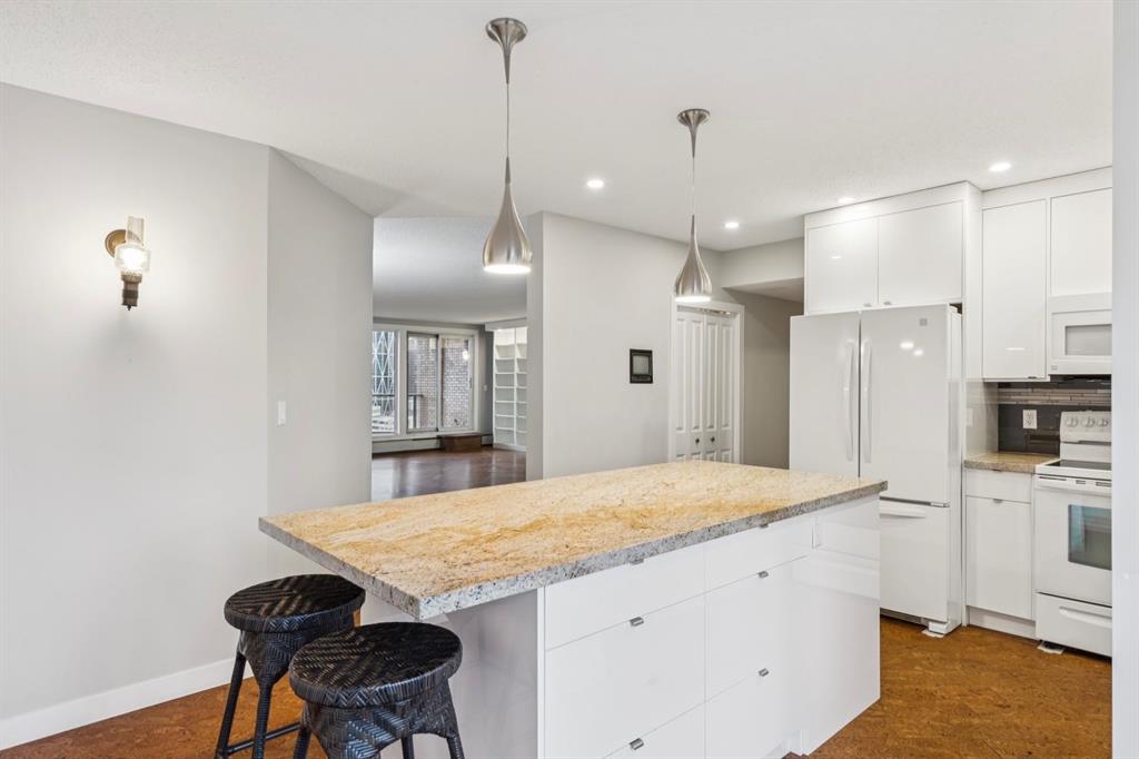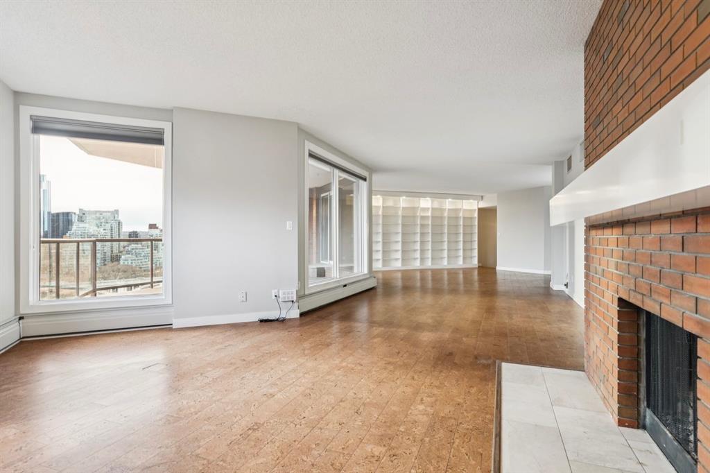 Welcome to Discovery Hill, an exclusive luxury condominium residence perfectly perched in the prestigious community of Crescent Heights. Overlooking the river valley with unobstructed, panoramic views of the downtown skyline, this remarkable home presents a rare opportunity to experience elevated urban living at its finest. Spanning an impressive 2,294 sq ft of single-level living space, this residence blends refined style with exceptional scale. Flooded with natural light from oversized floor-to-ceiling windows, the open-concept design frames the cityscape from nearly every room, creating a breathtaking backdrop day and night. At the heart of the home is its stunning living and dining area—an expansive, elegant setting ideal for both grand entertaining and intimate gatherings. A wood-burning fireplace infuses warmth and sophistication, while the seamless flow highlights the dramatic skyline beyond. The updated chef’s kitchen is beautifully appointed with a large central stone island, ceiling-height cabinetry, newer appliances, and a full walk-in pantry. Designed for both effortless cooking and everyday connection, it offers exceptional functionality and style. Retreat to the impressive primary suite, a serene sanctuary featuring a luxury 5-piece spa-inspired ensuite, generous walk-in closet, and soothing wood-burning fireplace. Step onto your private balcony to enjoy tranquil mornings or unwind with sweeping skyline views—a truly indulgent escape. Two additional spacious bedrooms complete the home, including one enhanced with a versatile Murphy wall bed. A dedicated laundry room with sink and additional in-unit storage add everyday convenience. Cork flooring throughout the home provides comfort, warmth, and durability. Two underground parking stalls and premium amenities elevate the Discovery Hill lifestyle even further, featuring: A fully equipped fitness centre, a relaxing sauna, a stylish and spacious party room, perfect for hosting gatherings and also bike storage for added convenience and security. Set just moments from river pathways, Prince’s Island Park, vibrant Bridgeland cafés and restaurants, shopping, transit, and downtown, Discovery Hill offers unparalleled access with the serenity of living above it all. A home of rare scale, timeless sophistication, and captivating views—your elevated retreat in Crescent Heights awaits.