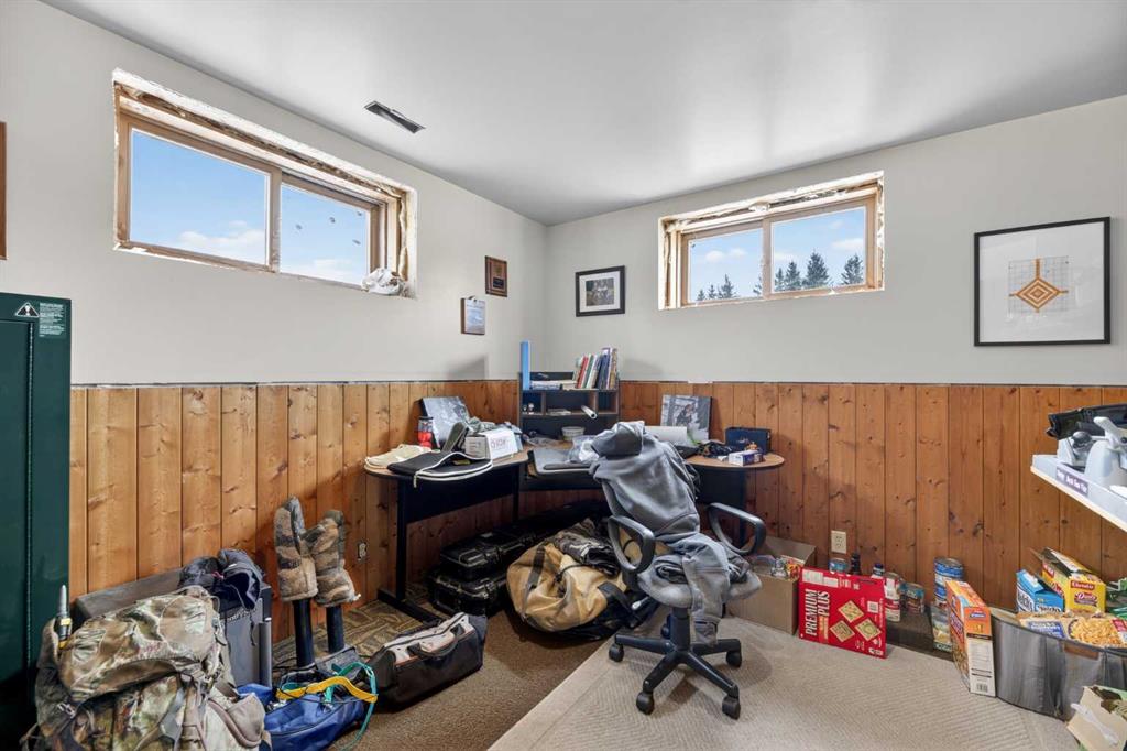 Saddle up & step into a life where wide-open skies meet the warm embrace of handcrafted logs—this 1½-story beauty is where cowboys & cowgirls truly live the dream. Beautiful & rustic ride side by side in this 1,549 sq ft above-grade log home, offering 5 bedrooms total & room for every member of your posse. The spacious primary suite rests on the main floor, with plenty of room for your full bedroom set, a generous walk-in closet, & easy access to the main floor laundry closet. After a long day on the range, retreat to the dreamy 4-piece bath featuring a classic clawfoot tub—perfect for soaking under candlelight while the prairie wind whispers outside. The open-concept main floor is built for gathering. Large windows on all sides pour in natural light, illuminating the beautifully maintained log beams overhead. The well-laid-out kitchen boasts abundant cupboard space & a grand island with seating—a place for cowpokes to pull up a chair, share a hearty meal, & swap stories of the day’s adventures. Upstairs, two more spacious bedrooms stand ready for family or guests, separated by a charming 3-piece bath complete with a deep soaker tub to wash away the dust of the trail. Down below, the fully developed basement is made for memory-making. A large family room offers space for a games area & movie nights alike. Two additional bedrooms—one currently serving as a fine home office—provide flexibility for growing families or visiting ranch hands. A full 3-piece bathroom on this level ensures comfort & convenience without having to head upstairs. When summer evenings roll in, the enormous covered front deck becomes your front-row seat to prairie sunsets blazing in the western sky. Watch your stock roam & play, or stroll over to the sheltered firepit area just steps from the home—perfect for roaring fires, laughter, & s’mores under the stars. And for your rigs and equipment? An oversized, finished, triple detached garage awaits—heated with radiant heat. Two bays are fully finished, while the single bay offers cold storage for all your gear. And to finish it all off. A well set up Tack shed for all your gear. Set up, move-in ready, & just minutes to town for all amenities, this must-see property is the kind folks write songs about. You won’t believe your eyes. “Home Is Where Your Story Begins!”
