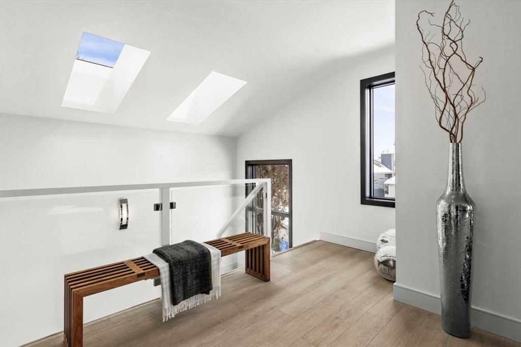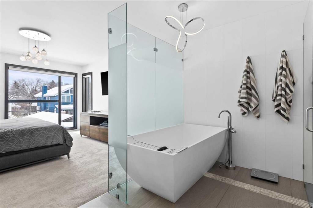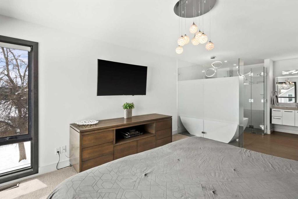 A rare opportunity awaits!!! Nestled in the prestigious neighbourhood of Hillhurst, just minutes from the vibrant heart of Downtown Calgary, this air conditioned 3-storey, 3-bedroom, 3.5-bathroom executive home is a testament to modern luxury and sophisticated living. With meticulously crafted details, this residence is designed to captivate and inspire with professionally designed living space filled with elegance and comfort. As you step inside, the open floor plan unfolds before you, and is framed by 10-foot ceilings that amplify the sense of openness and sophistication. A wall of ceiling-height windows bathes the interior in natural light, illuminating the exquisite 24 x 48 porcelain heated tile flooring that gracefully leads you through the thoughtfully planned living spaces. The heart of this home is undoubtedly its kitchen, marrying functionality with luxury in a space where mornings are greeted with the rich aroma of coffee form the Miele built-in coffee machine, and evenings are gracefully concluded with a selection from the full height wine cooler. The culinary enthusiast in your family will appreciate the food preparation space on the large waterfall quartz covered centre island and composite under mount sink. The stainless-steel appliance package is completed with a premium Viking gas range and the French Door refrigerator with cooler drawer and bottom freezer. Hosting dinner parties is a breeze with the spacious dining nook that is adjacent to the living room, anchored by a 52" gas fireplace, is ideal for entertaining and seamlessly integrates with the beautiful outdoor living area. This extension of the main level invites tranquility and relaxation, offering a perfect setting for alfresco dining and gatherings under the sky. Ascend to the second level, where a large landing introduces the expansive primary bedroom. Wake up to breathtaking downtown Calgary views and indulge in the 6-piece ensuite, featuring a free-standing stone soaker tub, a large shower with dual shower heads and Kohler body sprayers, and a customized his-and-her walk-through closet with built-in drawers and shelving. The convenient laundry room on this level, ensures ease and comfort for your daily living routines! The journey continues up to the third level, where the second bedroom and a large bonus room flex area await. Complete with a private balcony, this space offers stunning downtown views of downtown Calgary, providing a serene retreat to watch the newest release or your platform for an inspiring workspace. The sun filled lower level houses the third bedroom, and features a built-in study, media room, and games room, offering versatility and ample storage for an organized and clutter-free lifestyle. Outside, the designer influenced landscape compliments the beautiful exterior décor of this home with your own single car garage, ensuring convenience and security for your vehicle or additional storage needs. Close proximity to top-tier schools, and scenic walking paths!