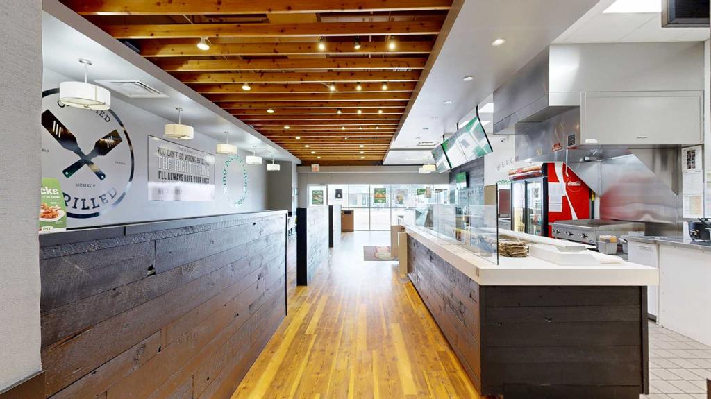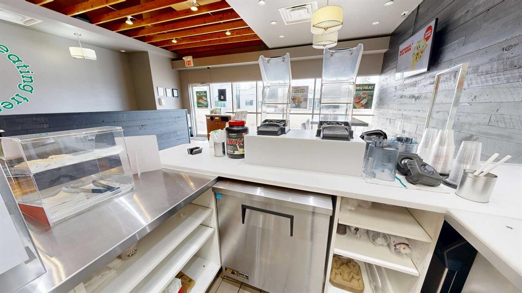 An exceptional opportunity to own a well-established Pita Pit franchise in the heart of Stettler, Alberta. Ideally situated on Main Street near a busy traffic intersection, this high-visibility location benefits from consistent local and commuter exposure, making it a strong performer for a dine-in and take out business. The interior is modern, clean, and inviting, featuring warm wood accents, ample seating, and an efficient layout designed for smooth customer flow. The bright and welcoming dining area includes comfortable booth seating and contemporary finishes, creating an enjoyable atmosphere for guests. Behind the counter, the fully equipped commercial kitchen is designed for efficiency, with prep stations, refrigeration, and cooking equipment all in place—offering a seamless transition for new ownership. This is a true turnkey operation located in a leased space, making it an ideal opportunity for an owner-operator or investor looking to step into an established brand with strong recognition. With its prime location, proven concept, and well-maintained interior, this business is positioned for continued success. A great chance to own a thriving franchise in a growing community.