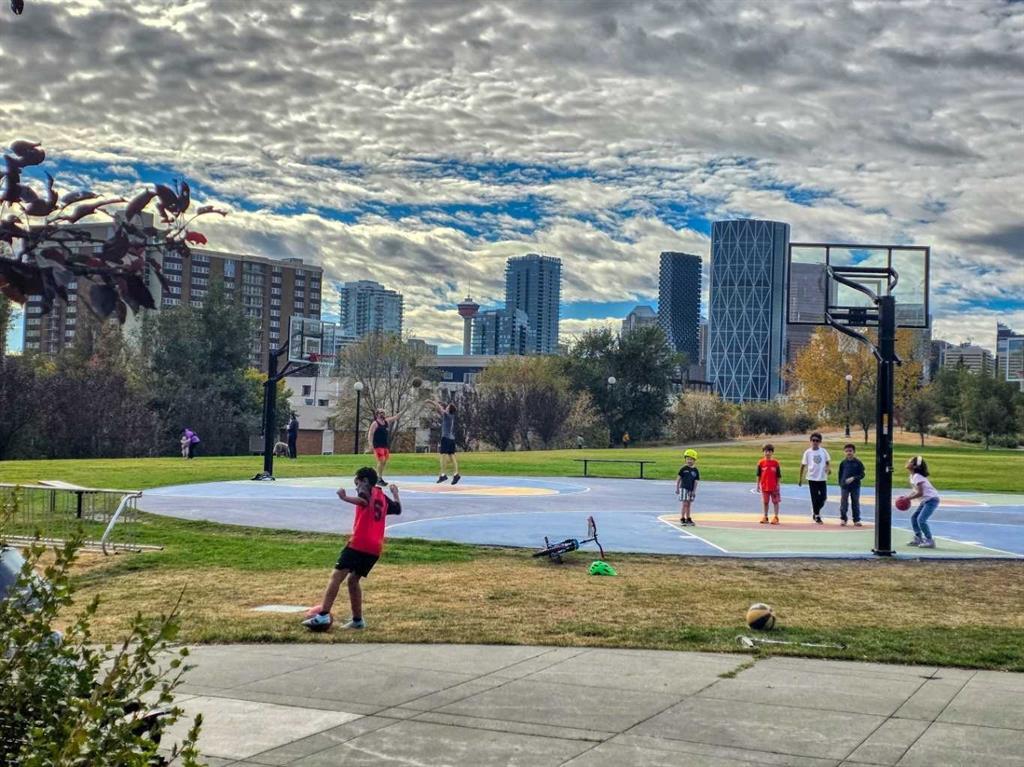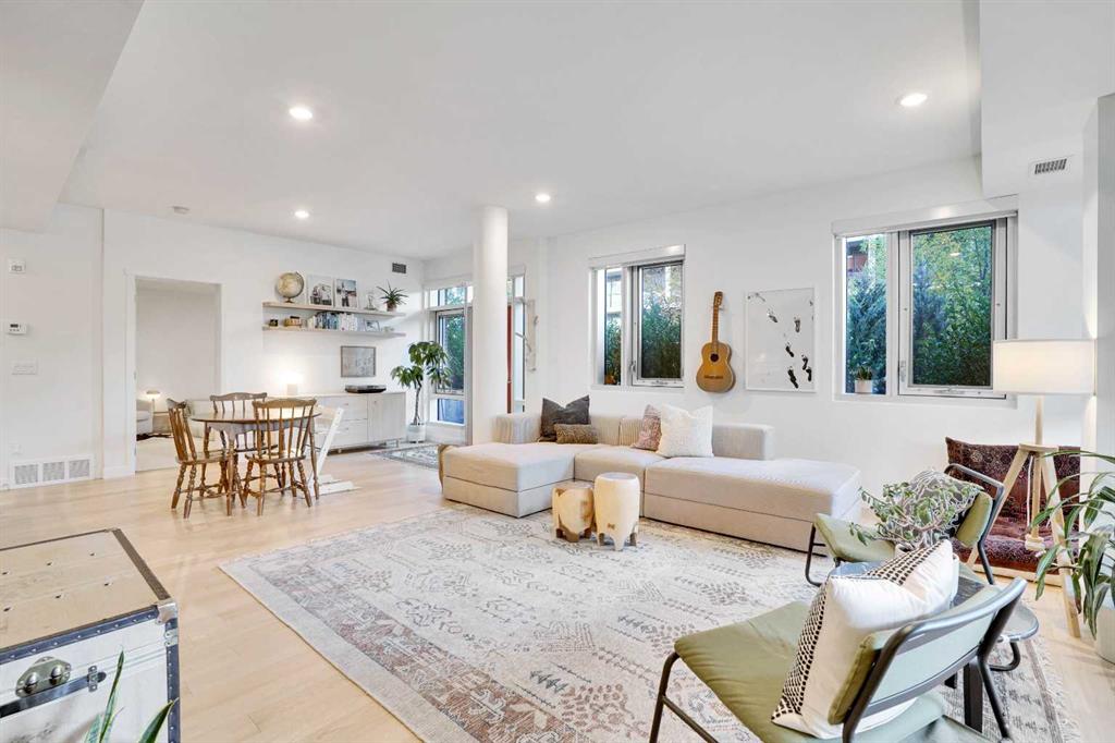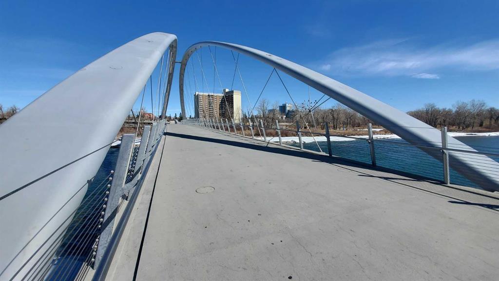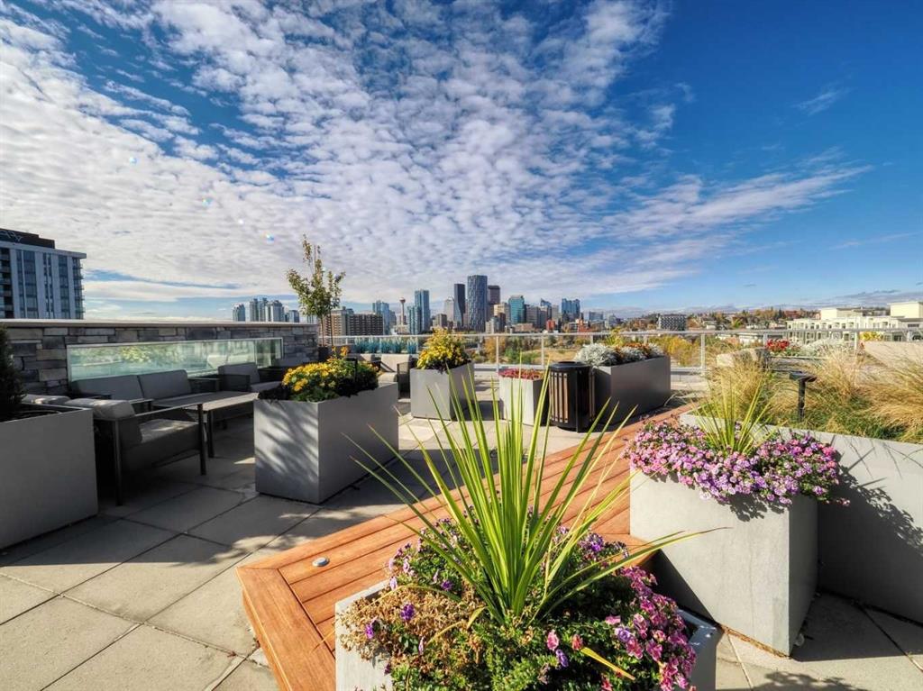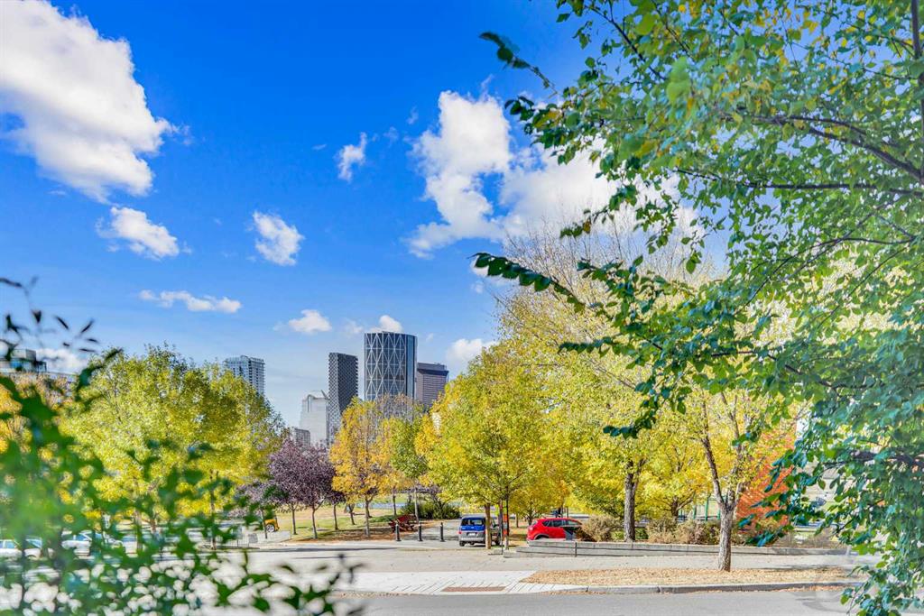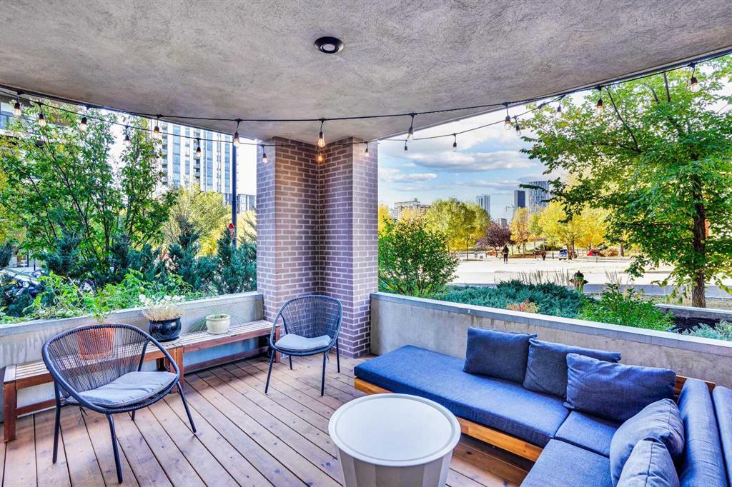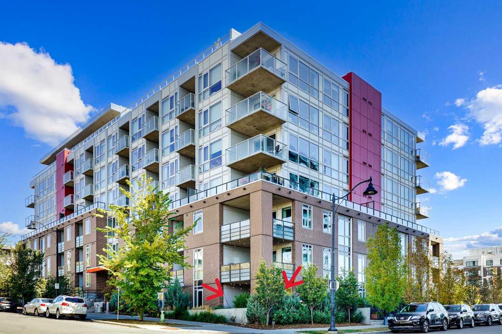 Exceptional opportunity in an ultimate inner-city location. Nestled park side in the heart of Bridgeland, across from Murdoch Park. Like new, corner unit with direct access features a great contemporary vibe. Open concept, spacious rooms and a great covered patio with lovely views of the Park and Downtown. Living is easy in this fresh and bright 2 bedroom plus den with 2 full baths. Enjoy hardwood floors, big beautiful windows, a sunny living room, large dining room and an airy kitchen with plenty of natural light. Upscale kitchen featuring quartz countertops, upgraded appliances, gas stove, pantry and a breakfast bar that comfortably seats four. Enjoy one of the largest patios in the building for your outdoor living space. A soothing color palette throughout creates a sense of balance and harmony. Radius is a concrete building with LEED platinum status offering superb soundproofing and sustainable operating costs. Amenities included in your condo fee are a concierge, a main gym, weight room, package delivery room, yoga studio, spin room, bike and ski workshop, dog wash, car wash bay, incredible roof top terrace with a BBQ area, an outdoor fireplace plus private garden plots. Other notable conveniences include underground parking with two parking stalls and an extra-large storage locker. You will love the vibrant, walkable location, with easy access to plenty of pathways, trails, 10 minute walk to downtown, the Bow River and St Patrick’s Island. Inner city at its best; quiet location, bubbling local restaurant/cafe scene, Farmer’s Market, and shopping. With such a high walking, wheeling, bicycling and transit score it would be a shame to live anywhere else. Bridgeland is proud to be home to some of the best local restaurants and walkable amenities in the city including Shiki Menya, Lil Empire, OEB Breakfast, UNA, Blue Star, Made by Marcus, Village ice cream, Phil & Sebastian, Starbucks, Bridgeland Market, Luke's Drug Mart and Mari bakery. This is inner-city living at its best—modern comfort, unbeatable location, and a true sense of community.