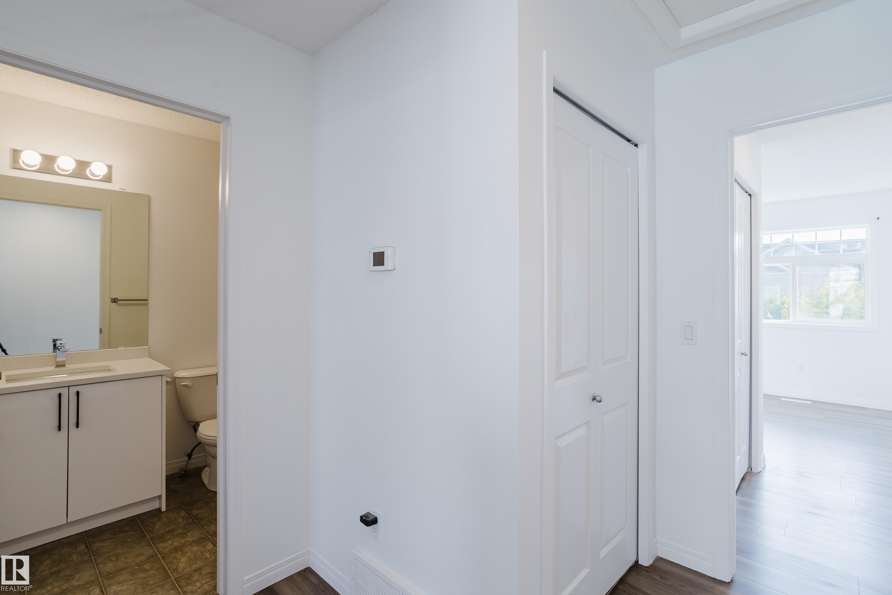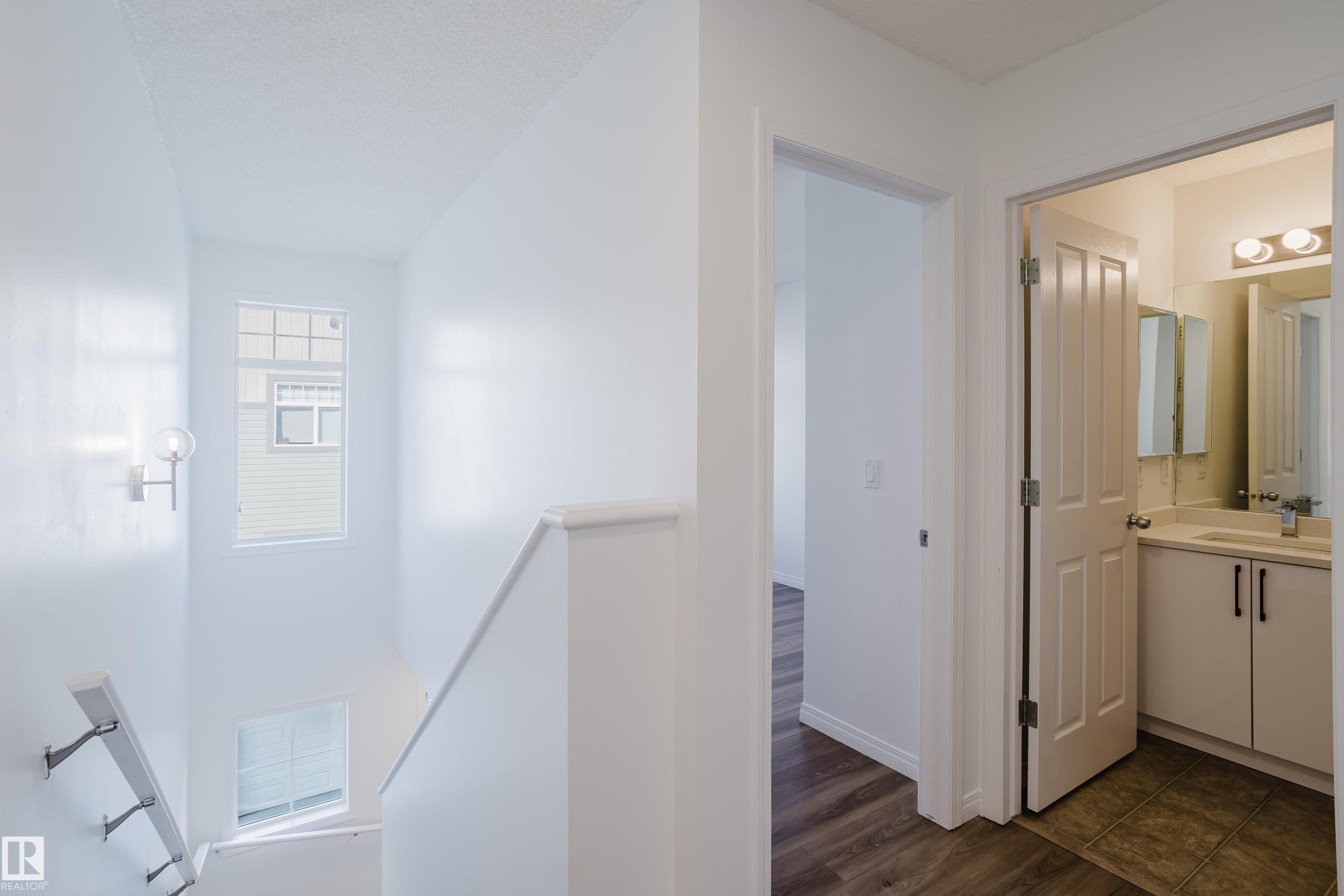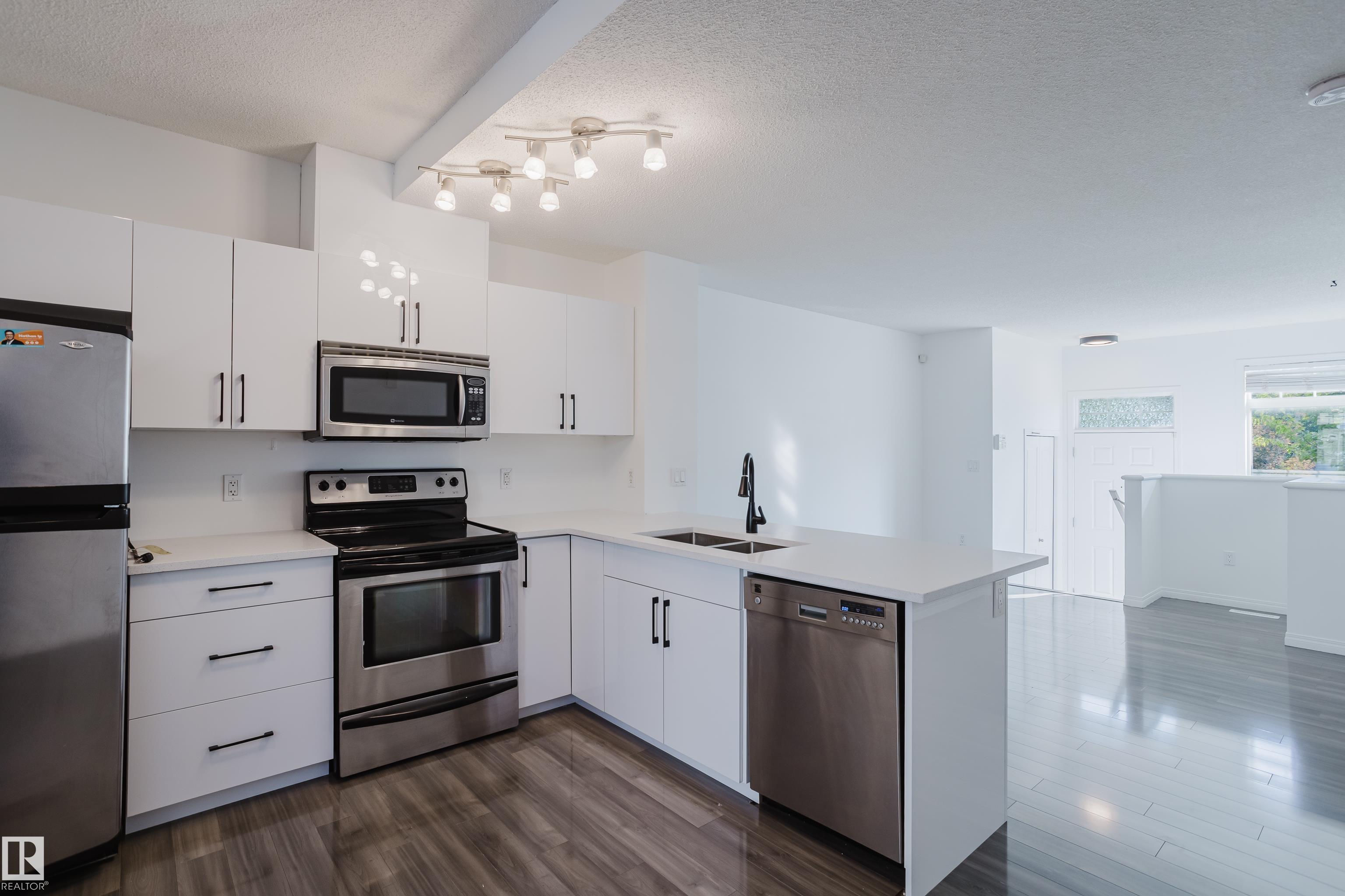 Welcome to this Beautifully renovated 2-BED, 2.5-BATH townhouse in the desirable complex of Mosaic Meadows! The main level welcomes you with an airy, open-concept design featuring a spacious living area with bright laminate flooring, a stylish kitchen with all-new cabinetry, updated quartz countertops, modern sinks, and SS appliances. Just a few steps up, a convenient half bath with a large window adds charm and functionality. Upstairs offers 2 generous bedrooms and 2 full bathrooms with brand new Vinyl Plank and Carpet Flooring. The Primary suite features ample closet space, and a stunning ensuite with a large shower. Laundry is ideally located on the same floor for maximum convenience. A roomy double garage with tandem parking ensures plenty of storage and vehicle space, while oversized windows throughout the home fill every room with natural light. Mosaic Meadows is a well-cared-for complex located close to schools, parks, shopping, public transit, and easy access to the Henday.