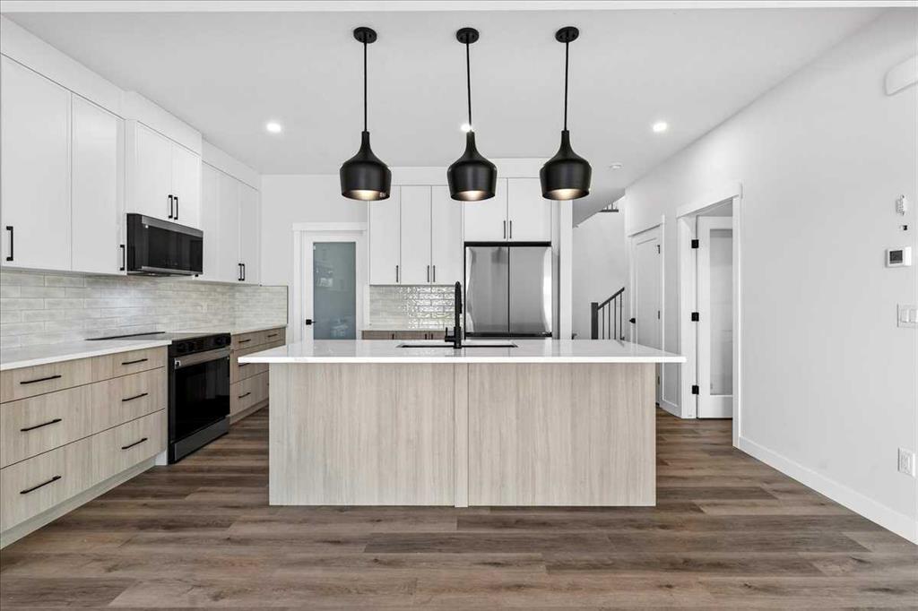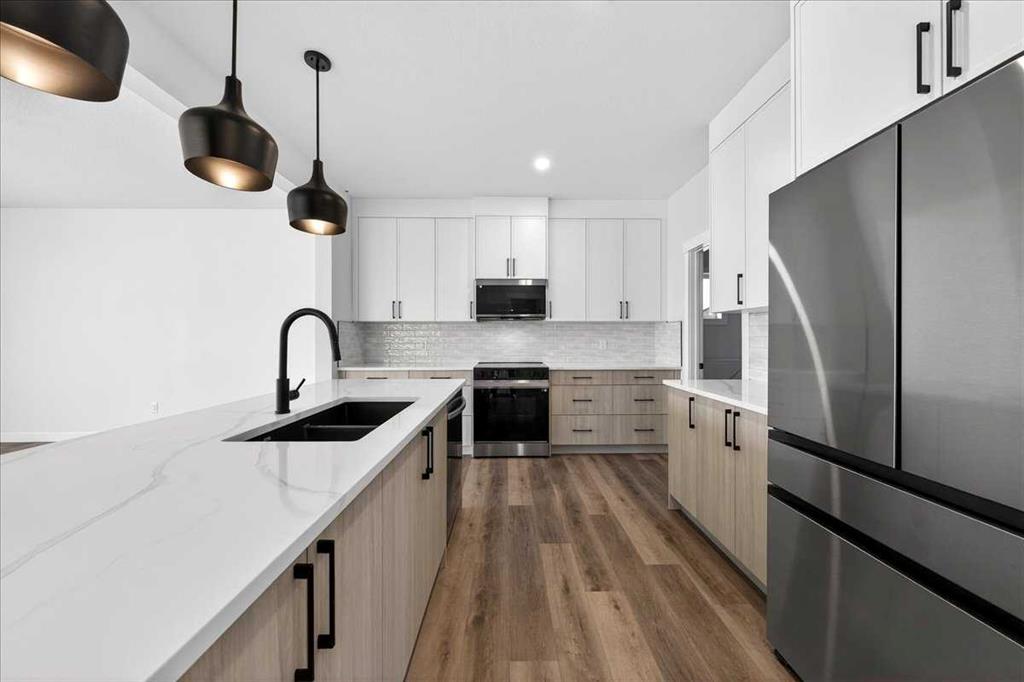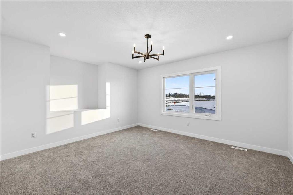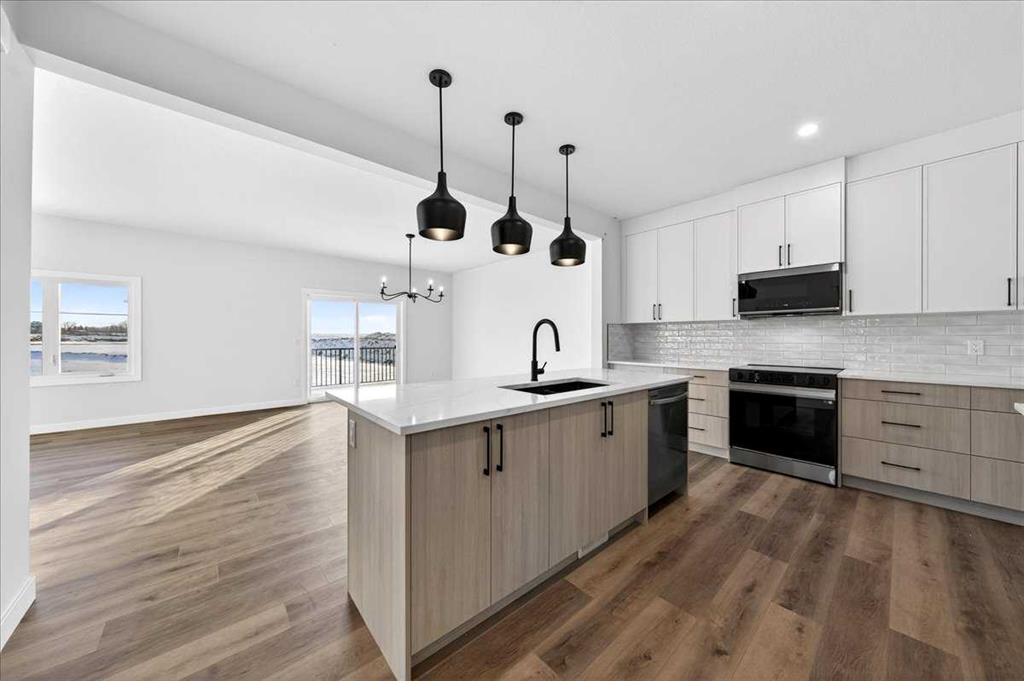 Welcome to a stunning, beautiful two-storey home offering over 2,300 sq ft of above-grade living space, perfectly situated on a huge corner lot. This impressive home features a bright and open floor plan with soaring high ceilings and an “open to below” design that fills the space with natural light and creates a grand first impression. The spacious living room is anchored by a modern electric fireplace, making it the perfect gathering space for family and friends. The chef-inspired kitchen offers ample cabinetry, a large pantry, and seamless flow into the dining area — ideal for entertaining. Step outside to enjoy peaceful views from your balcony overlooking the tranquil water feature. A rare and highly desirable main floor bedroom provides flexibility for guests, extended family, or a home office. The main level is completed with a convenient 2-piece bath and mudroom access to the oversized double garage. Upstairs, you will find a generous bonus/family room, upper-floor laundry, and three spacious bedrooms including a luxurious primary retreat featuring a walk-in closet and a 5-piece ensuite. The open-to-below design continues upstairs, enhancing the home’s bright and airy feel. Exterior highlights include durable stucco siding, excellent curb appeal, and the added privacy and space that only a corner lot can provide. This exceptional walkout home combines space, functionality, and scenic views - a rare opportunity in a fantastic location. Don’t miss your chance to own this beautiful property! Book your private tour today!