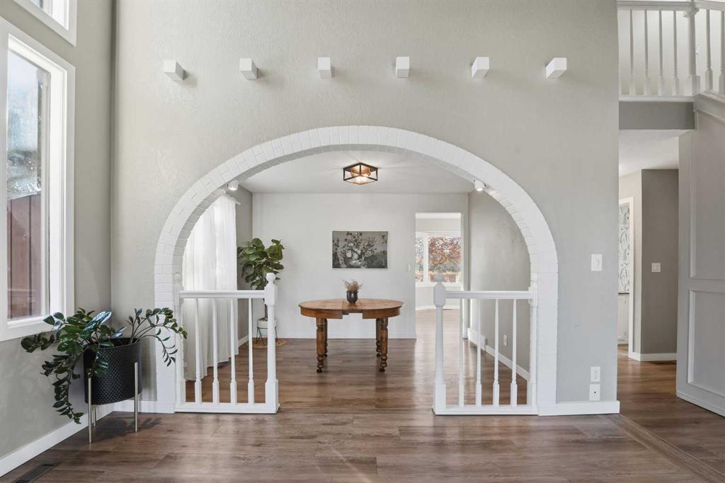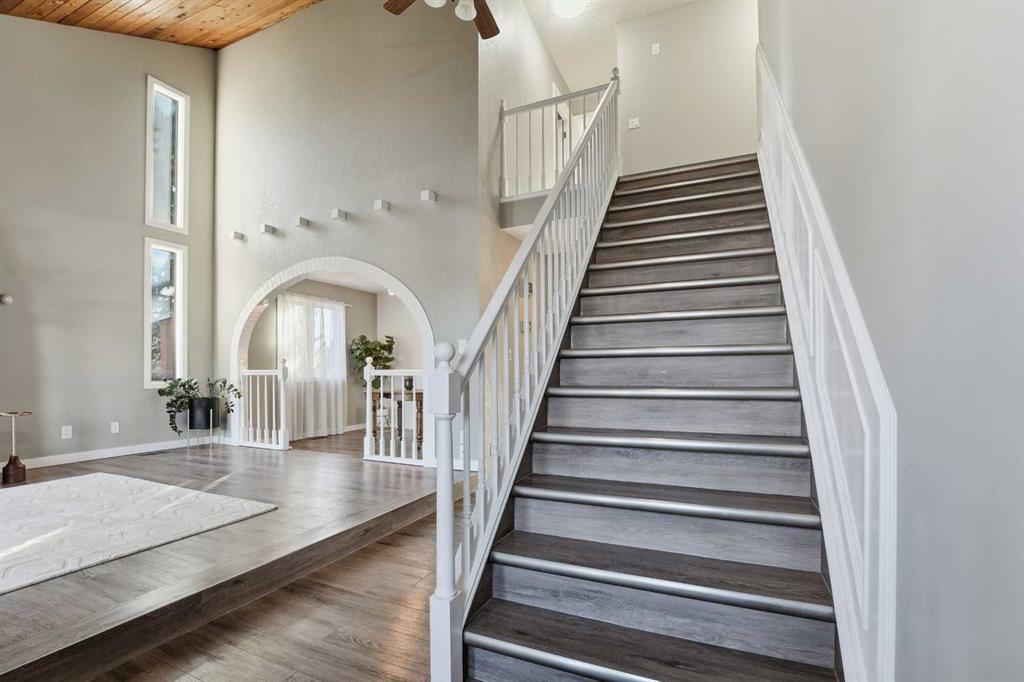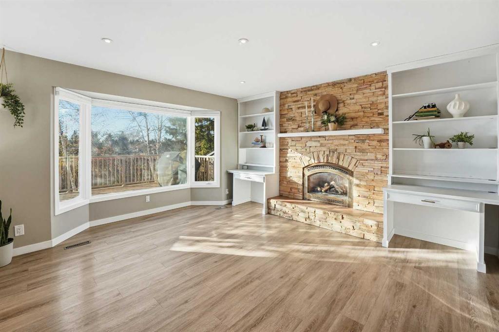 Immaculate Fully Developed 2 Storey with Attached Double Garage on a Quiet Close in desirable Clearview Meadows! Step inside and you’re greeted by the vaulted wood accented ceiling, a floor-to-ceiling stone masonry mantle that surrounds a natural gas-fireplace in the front living room, plus a beautifully updated staircase with white railing & wood paneling accenting the stairs. From the bright east facing living room is access to the formal dining room and kitchen. The kitchen is complete with stainless appliances, tile backsplash, and a breakfast nook. Off of the kitchen you will find the main floor laundry, access to the backyard, and an additional family room with built-in shelves and gas fireplace. The main floor is complete access to front attached double garage and a 2-pc washroom. Upstairs you will find the oversized primary bedroom, complete with double closets, built-in vanity, and 3-pc ensuite. There are 2 additional bedrooms and a 4-pc bathroom that complete the 2nd floor. The basement boasts a large rec room complete with a built-in Murphy Bed, Projector & Screen. There is a 4th bedroom and plenty of storage space in the utility room, plumbing roughed in for a bathroom, and under the stairs. The west facing backyard oasis is fully fenced and landscaped. This pie-shaped lot backs onto a greenspace / park. Enjoy the mature, private backyard from your maintenance free Trex deck with additional stone patio. The yard is complete with are raised garden boxes, fruit trees, shed, playhouse & swing set. Recent Updates: Fridge (2025), Dishwasher (2024), Vinyl Plank Flooring, Paint, Baseboards, & NEW Shingles (November 2025)