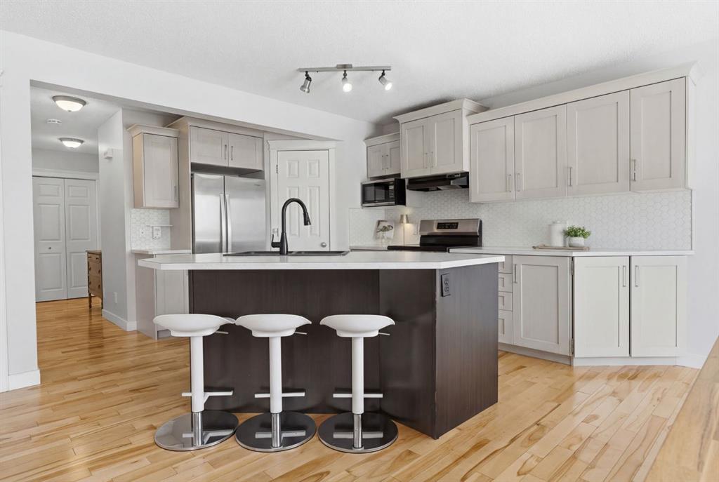 OPEN HOUSE SATURDAY APRIL 11, 1PM - 3PM. This tremendous family home is located in one of the most sought-after communities in Okotoks. Crystalridge is an established neighbourhood offering large lots, green spaces, ponds, bike trails, wide streets, and mature trees. Enjoy year-round lake access, featuring a sandy beach, paddle boats, volleyball courts, and fishing in the summer, as well as ice hockey and skating in the winter. The floor plan and overall design of this home are exceptional, with pride of ownership evident throughout. Just inside the entryway, the inviting front flex room is the perfect space for a piano or library. The open-concept kitchen features bright workspaces, updated appliances, a large corner pantry, central island, and a stunning hexagon backsplash. If you love cooking with gas, you’ll appreciate that a gas line is already in place. There’s also plenty of room to host, with space for an extra-large dining table. The living room is filled with natural light from large windows and features a cozy corner gas fireplace with a mantle—perfect for decorating and celebrating throughout the seasons. Hardwood flooring on the main level adds warmth and easy maintenance, while fresh paint in a warm, contemporary palette ties everything together beautifully. Upstairs, retreat to the spacious primary bedroom with room for all your furniture, including a king-sized bed. The ensuite is beautiful, featuring white subway tile, a crisp white vanity, a soaker tub, and a walk-in shower. It’s a bright, calming space where plants thrive—and you will too. A sliding barn door adds a touch of character. Down the hall, you’ll find a very generous bonus room with ample built-in storage—ideal for games, hobbies, sewing, or linens. The current owners have professionally relocated the laundry to this level, making it especially convenient with the bedrooms nearby. Two additional bright bedrooms complete the upper floor, offering comfortable space for everyone. The fully finished basement includes two very large bedrooms (one window does not meet egress), along with a family room that’s perfect for movie nights or a home fitness setup. The recently renovated bathroom features a stunning walk-in shower with floor-to-ceiling tile. Outside, the spacious backyard offers an exposed aggregate deck, raised garden boxes ready for your vegetables, and full fencing for privacy. Additional highlights include central vacuum, appliances updated within the past five years, and a recently serviced furnace. The home was freshly painted in March (main level and basement). Ideally located in a desirable northwest area, this home offers quick access to Calgary. ~Click on the movie reel for a video of the property or the 3D link to tour each room~