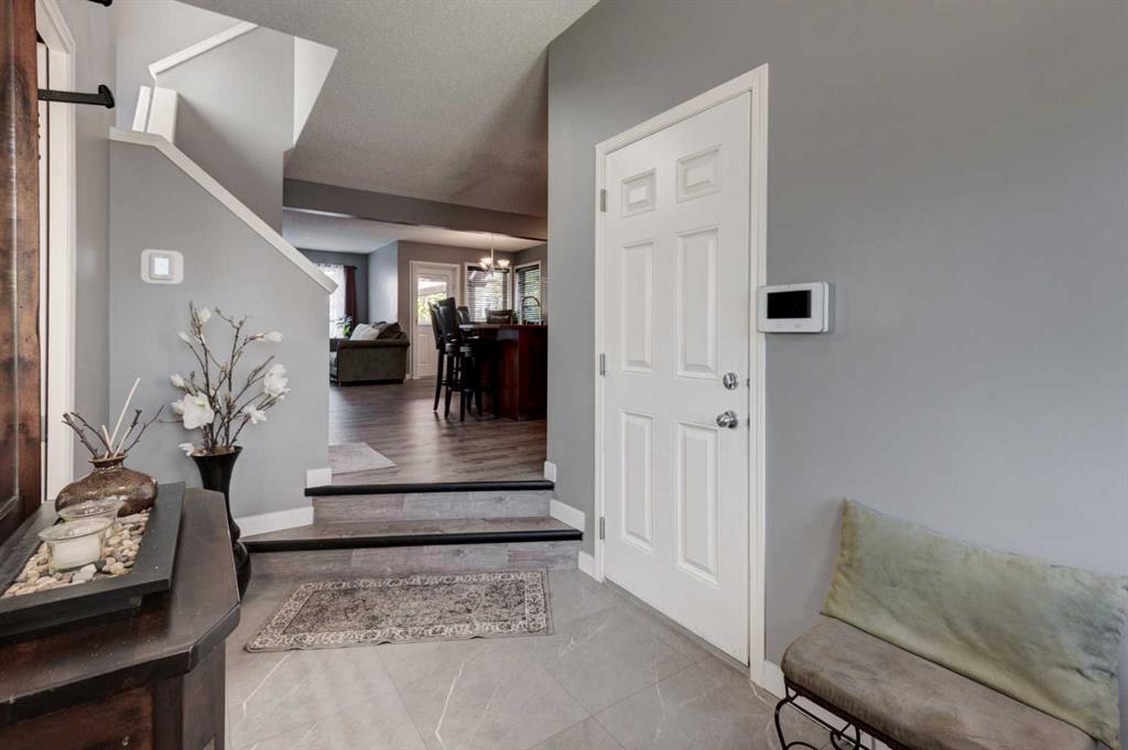 This home has been incredibly well maintained and everything has been upgraded and updated. Situated on a quiet, family-friendly street and backing onto a beautiful pathway and green space that leads directly to Fish Creek Park—perfect for an afternoon jog or stroll! Offering over 1460 square feet delivered in an open floor plan that’s ideal for families and entertaining. You’ll love the convenience of the single front attached garage with extra parking on the double-wide driveway. Both the main floor and second storey feature brand new luxury vinyl plank flooring (2024), and the staircase and hallway received new carpeting at the same time! The entire home was freshly painted in 2024. The kitchen is open to the cozy family room with a gas fireplace and large windows overlooking your maturely landscaped backyard. The kitchen itself features timeless cabinetry, a large corner pantry, a central island, and stainless steel appliances, including a new microwave (2023) and dishwasher (2025). Upstairs you’ll find three generous bedrooms, with the primary suite spacious enough for a king-size set and boasting a four-piece ensuite. The laundry room and additional four-piece family bath are also conveniently located on this level. The fully developed basement offers a large recreation room, gym or hobby area, and plenty of storage space. The backyard is beautifully landscaped with mature trees, shrubs, and a brand new lawn installed in 2025—plus apple, cherry, and raspberry bushes. Enjoy outdoor living on the large deck with pergola, perfect for summer BBQs. This home backs onto an amazing pathway system and is just a two-minute walk to Marshall Springs School (K-9). More recent upgrades include a new roof (2022), new furnace (2024), new washer and dryer (2020), and of course, the new flooring, carpet, and paint throughout in 2024. This is truly a move-in-ready home with nothing to do but unpack and enjoy!