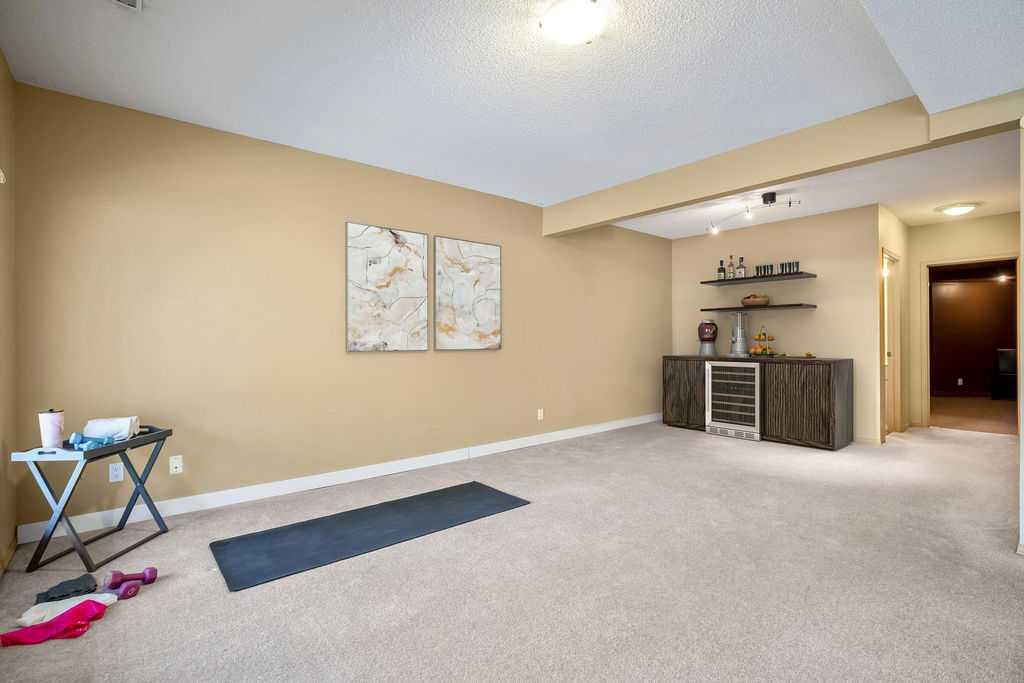 Tucked away on a quiet cul-de-sac in the desirable Patterson community, this walkout bungalow villa offers over 2,500 sq. ft. of thoughtfully designed living space backing onto a peaceful green strip. The main level features a bright, open-concept layout with updated vinyl plank flooring and a stunning renovated gas fireplace in the living room with custom built-ins, remotely controlled for flame, fan, and lighting—perfect for cozy evenings at home. The kitchen has a good sized island pantry for extra storage, and features painted cabinets, updated pot light, garburator and a newer refrigerator (2024). It leads into the dining space and out onto the large balcony with gas line for BBQ. The primary bedroom is very spacious with a 4 piece ensuite bath and walk in closet attached. There is another bedroom on the main level, as well as a good-sized den. A laundry room with newer washer and dryer (2024) and an updated half bath (newer vanity, light & toilet) complete the main level. The fully developed walkout basement is warm and inviting with in-floor heating throughout, a spacious third bedroom, and a full 3-piece bathroom complete with a steam shower and heated floors. Additional highlights include air conditioning (2024), a double attached garage, central vacuum system, and a low-maintenance villa lifestyle in one of Calgary’s most sought-after west-end neighbourhoods. Set in a prime location surrounded by parks, pathways, schools, and shopping, this home offers an exceptional balance of comfort and convenience. Quick drive to C-train LRT Station and Westside Recreation Centre. Winsport and the Calgary Farmers’ Market West are also just minutes away, with quick access to downtown and the mountains for work or weekend escapes.