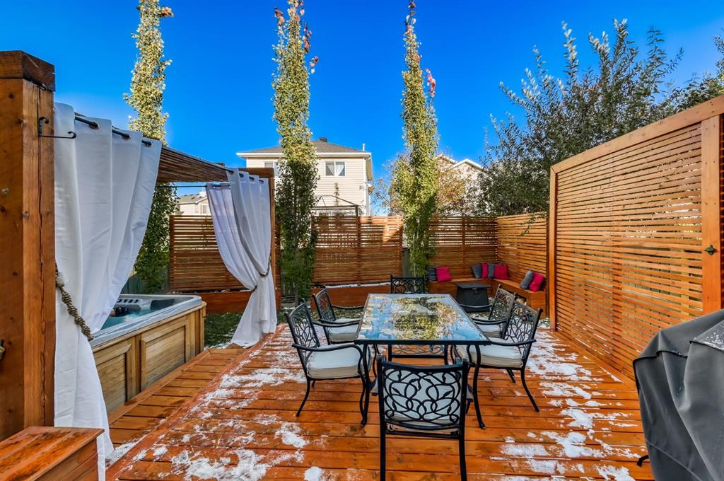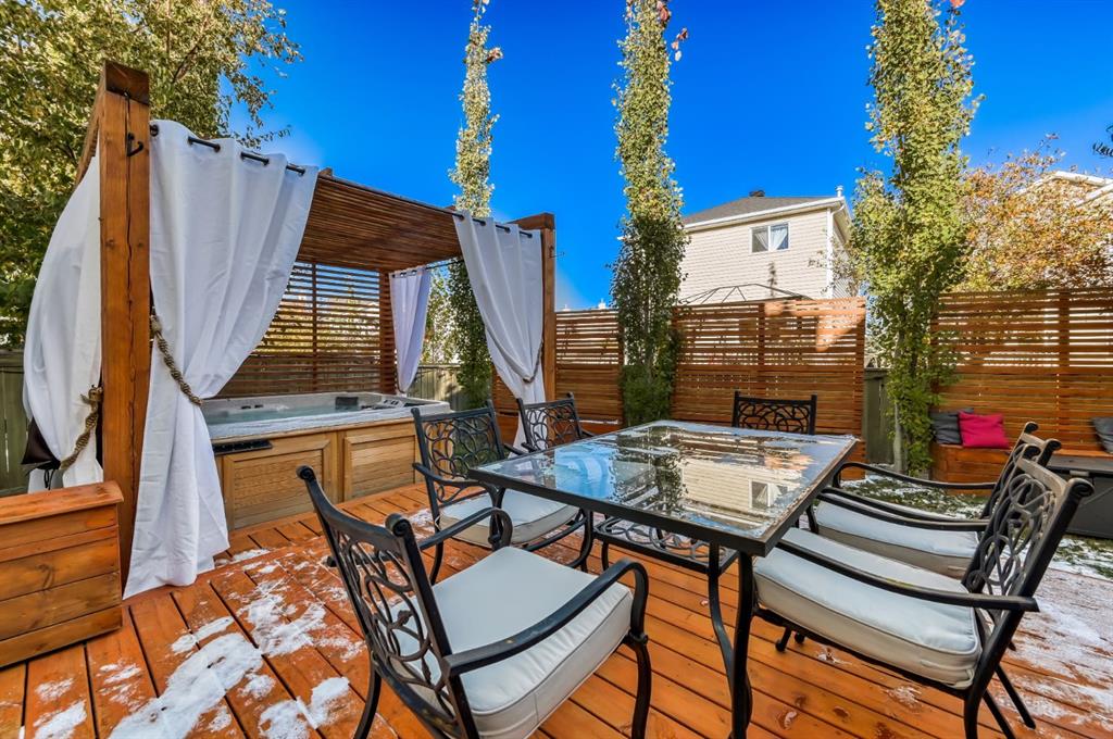 **OPEN HOUSE Sunday October 19th 11am-1pkm.** Welcome to this exceptional 2-storey home located on a quiet, family-friendly street in the desirable community of Royal Oak. This beautifully upgraded property blends smart home features, designer finishes, and outdoor luxury offering a unique lifestyle just steps from nature and top amenities. Inside, you’re greeted by a dramatic 18-ft entryway with wood beam accents and rich hardwood flooring. The open concept kitchen, dining, and living area is an entertainer’s dream featuring waterfall granite countertops, full-height cabinetry, upgraded hardware, and built-in wine and coffee stations with live edge wood shelving. A smart Samsung gas range, Bluetooth appliances, and LG ThinQ smart washer/dryer (with voice control compatibility) add true convenience. Upstairs, you will find 3 spacious bedrooms and an upgraded 4-piece bath that has access from both the primary bedroom and the hallway. The fully finished basement impresses with a spa like bathroom complete with in floor heating (app-controlled), Bluetooth light/speaker fan, heated/illuminated mirror, and double rain shower heads. The lower level is finished with luxury vinyl plank flooring, elegant arches, and limewash style painted walls for a designer touch. The basement living area can also be used as a 4th bedroom if needed as it is equipped with a sliding barn door, window, and large closet area. Step outside to a private backyard oasis: privacy walls double as garden beds and built-in seating around a fire area. A custom pergola, and a stunning Arctic Spa saltwater hot tub (ultra-efficient, Bluetooth speakers, waterfall, and Aquatremor therapy system) elevate your outdoor living. With easy access to the mountains, the Tuscany c-train station, Bearspaw Country Club, and all major roads, this location can't be beat. Book your showing today!